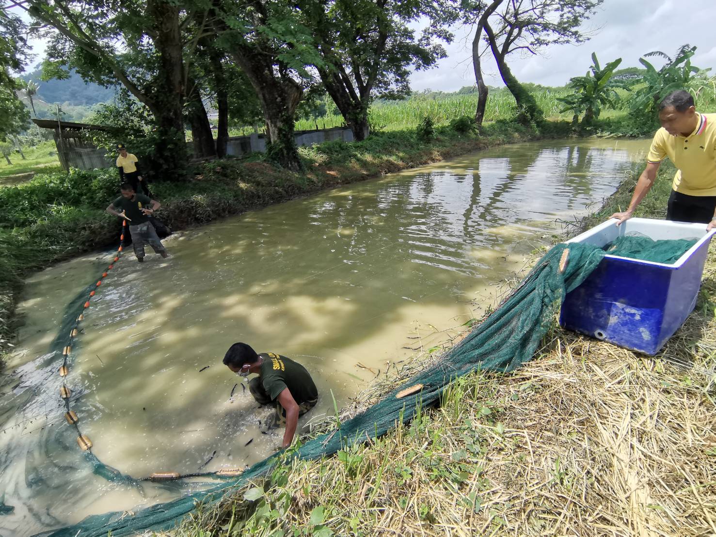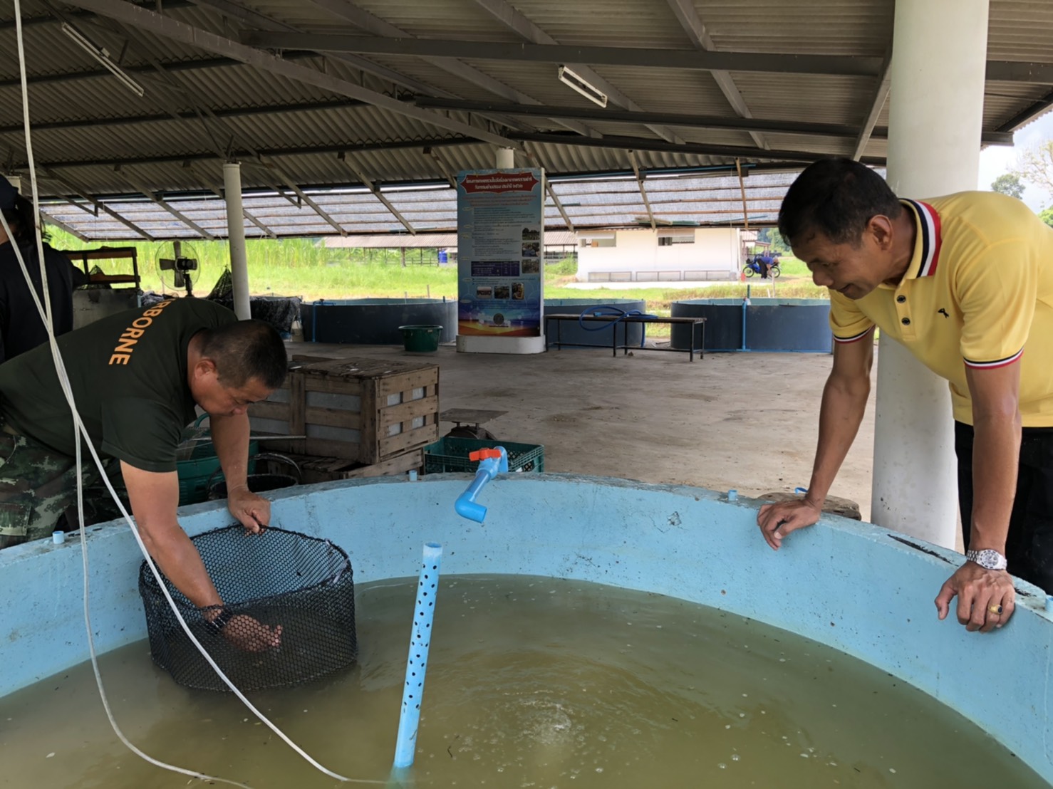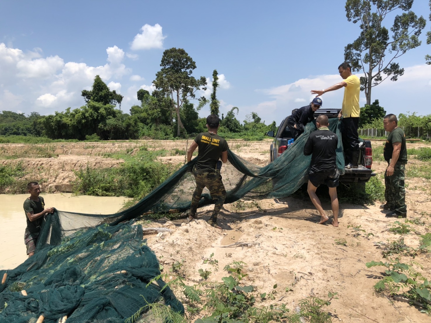 นายธนนชัย สืบพรหม หัวหน้ากลุ่มบริหารจัดการด้านการประมง พร้อมด้วย ประมงอำเภอเมือง และนางสาวศิธรา โชติพิทักษ์ เจ้าพนักงานประมงปฏิบัติงาน ร่วมกับ เจ้าหน้าที่โรงเรียนทหารการสัตว์ กรมการทหารการสัตว์ ทำการตีอวนเพื่อรวบรวมพันธุ์ปลา ที่บ่อปลา โรงเรียนทหารการสัตว์ กรมการทหารการสัตว์