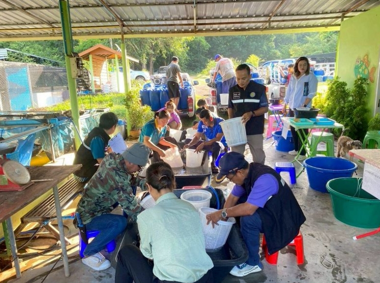 สำนักงานประมงจังหวัดสระแก้ว วันที่ 20 สิงหาคม 2568 นายวิชัย ทองประไพ ประมงจังหวัดสระแก้ว มอบหมายให้นายอุดม คูณดอน หัวหน้ากลุ่มบริหารจัดการด้านการประมง นายวชิราวุฒิ นาดี ประมงอำเภอวัฒนานคร และนายไชยวัฒน์ ปิจจะ เจ้าพนักงานประมงปฎิบัติงาน ร่วมกับเจ้าหน้าที่ศูนย์วิจัยและพัฒนาการเพาะเลี้ยงสัตว์น้ำจืดสระแก้ว ตรวจรับพันธุ์กุ้งก้ามกราม โครงการบริหารจัดการทรัพยากรประมง กิจกรรมบริหารจัดการทรัพยากรประมงน้ำจืด การเพิ่มผลผลิตสัตว์น้ำในแหล่งน้ำชุมชนเพื่อเพิ่มรายได้และลดค่าครองชีพของประชาชน และปล่อยพันธุ์กุ้งก้ามกรามลงแหล่งน้ำที่เข้าร่วมโครงการดังกล่าว จำนวน 3 แห่งๆละ 40,000 ตัว ดังนี้