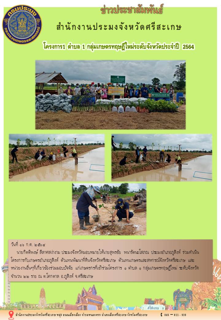 นายกิตติพงษ์ ลีลาศสง่างาม ประมงจังหวัดมอบหมายให้นายสุพรชัย พนารัตนะโสภณ ประมงอำเภอภูสิงห์ ร่วมดำเนินโครงการกับเกษตรอำเภอภูสิงห์ ตัวแทนพัฒนาที่ดินจังหวัดศรีสะเกษ ตัวแทนเกษตรและสหกรณ์จังหวัดศรีสะเกษ และหน่วยงานอื่นๆที่เกี่ยวข้องร่วมมอบปัจจัย แก่เกษตรกรที่เข้าร่วมโครงการ ๑ ตำบล ๑ กลุ่มเกษตรทฤษฎีใหม่ ระดับจังหวัด จำนวน ๒๒ ราย ณ ต.โคกตาล อ.ภูสิงห์ จ.ศรีสะเกษ