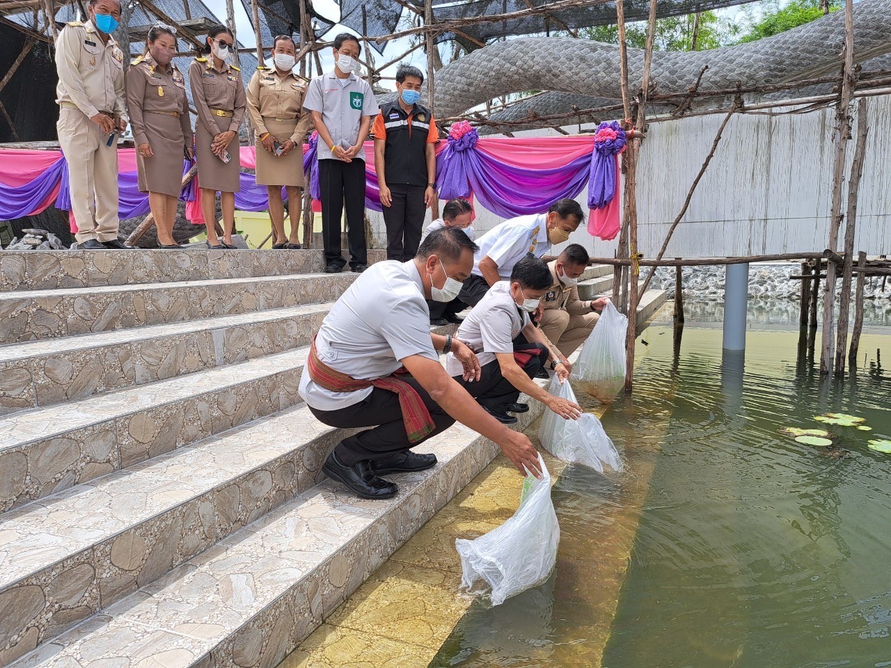 • ศรีจินดา นักวิชาการประมง นางสาววาสนา แสนสีดา นักวิชาการประมง และนายชาญ คำเรียงศรี ประมงอำเภอปรางค์กู่ ร่วมกับศูนย์วิจัยและพัฒนาการเพาะเลี้ยงสัตว์น้ำจืดศรีสะเกษ ออกหน่วยบริการด้านประมง การลดต้นทุนการเพาะเลี้ยงสัตว์น้ำโดยการใช้แหนแดง พร้อมทั้งสนับสนุนพันธุ์ปลากินพืช จำนวน 50 ถุง เนื่องในโครงการจังหวัดเคลื่อนที่ประจำปีงบประมาณ พ.ศ.2565 และ หน่วยแพทย์อาสา สมเด็จพระศรีนครินทราบรมราชชนนี (พอ.สว.) ณ วัดบ้านสนวน หมู่ที่ 11 ตำบลโพธิ์ศรี อำเภอปรางค์กู่ จังหวัดศรีสะเกษ โดยมี นายวัฒนา พุฒิชาติ ผู้ว่าราชการจังหวัดศรีสะเกษ เป็นประธาน พร้อมด้วย นายกเหล่ากาชาดจังหวัด นางมัลลิกา พุฒิชาติ รองผู้ว่าราชการจังหวัด และหัวหน้าส่วนราชการของจังหวัดศรีสะเกษ