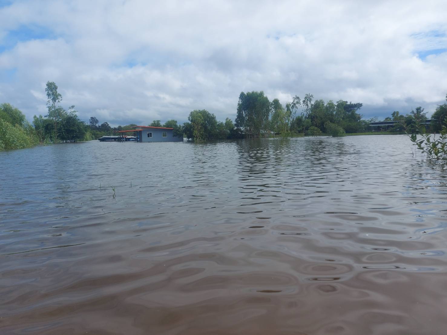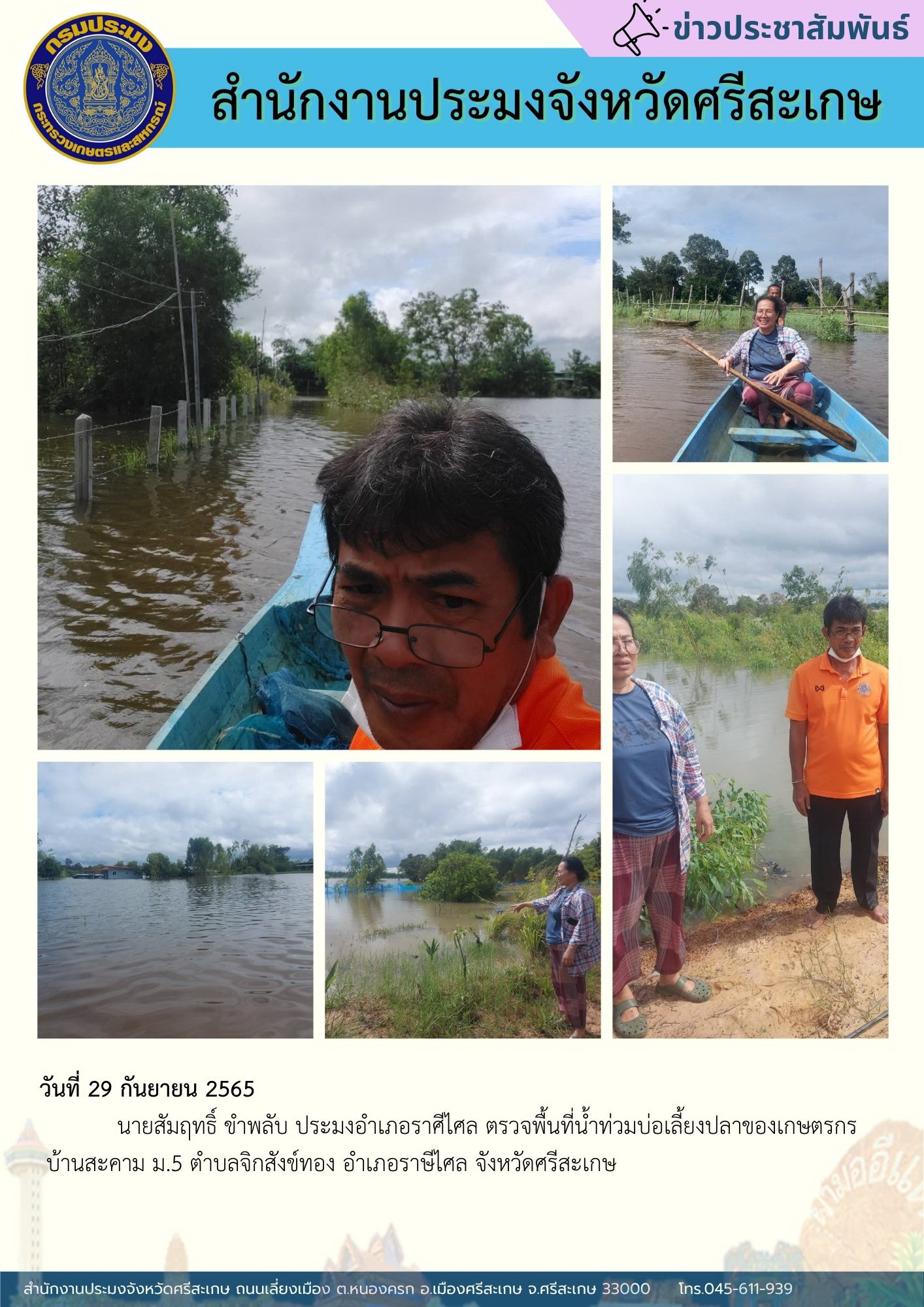 ประมงอำเภอราษีไศล ตรวจพื้นที่น้ำท่วมบ่อเลี้ยงปลา