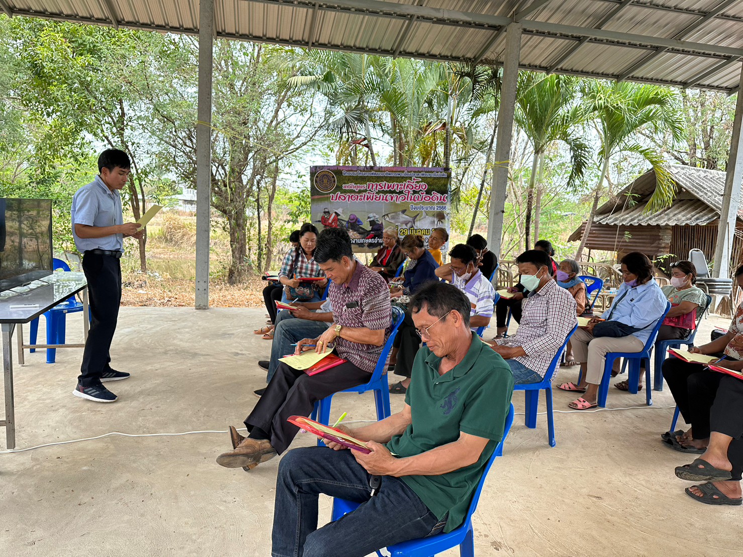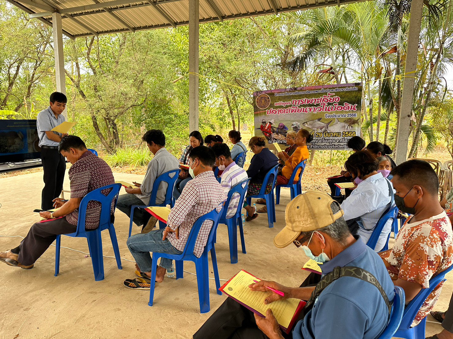 จัดฝึกอบรมโครงการพัฒนาอาชีพการเพาะเลี้ยงปลาตะเพียนขาวในบ่อดินโนนคูณ