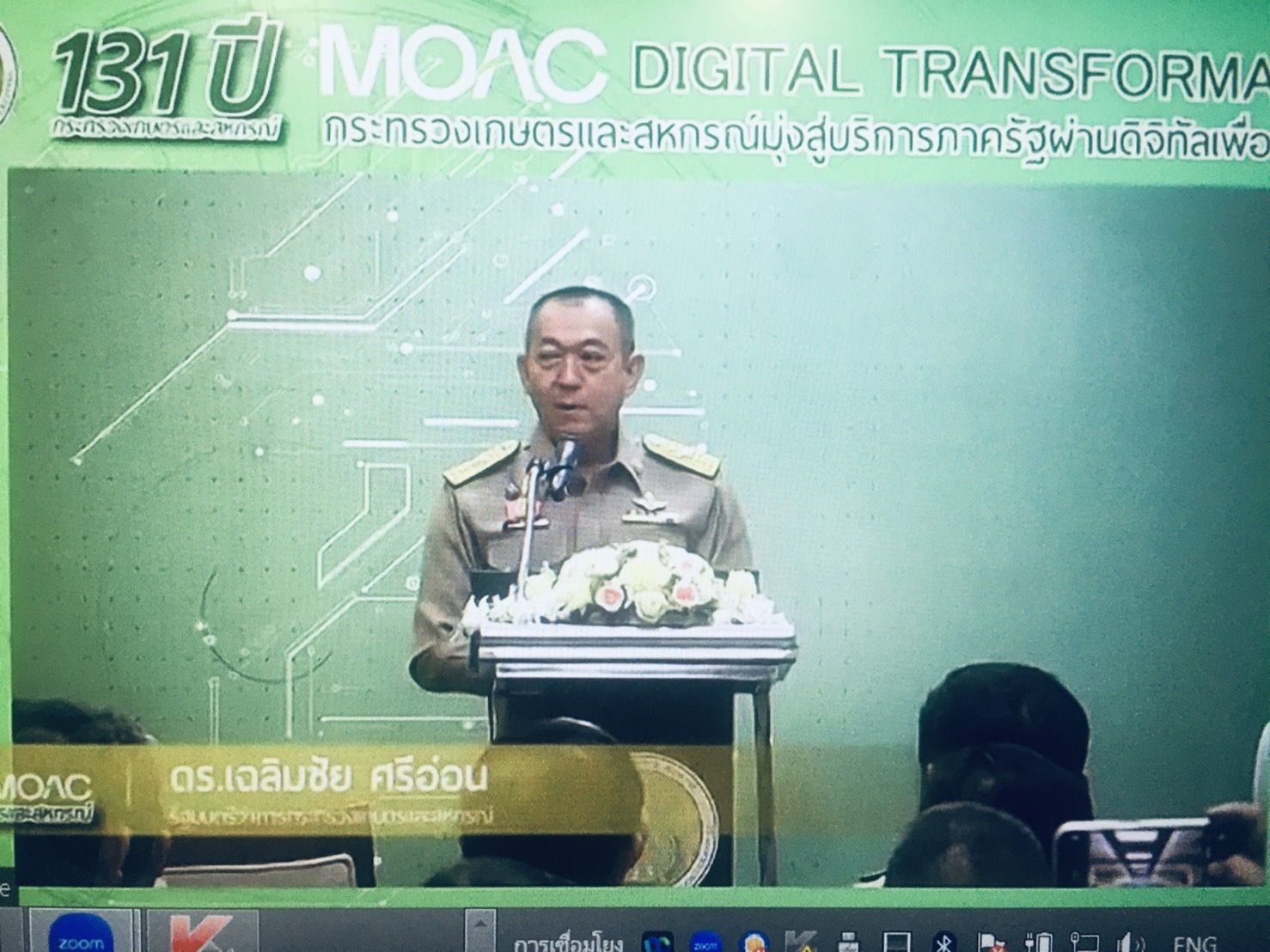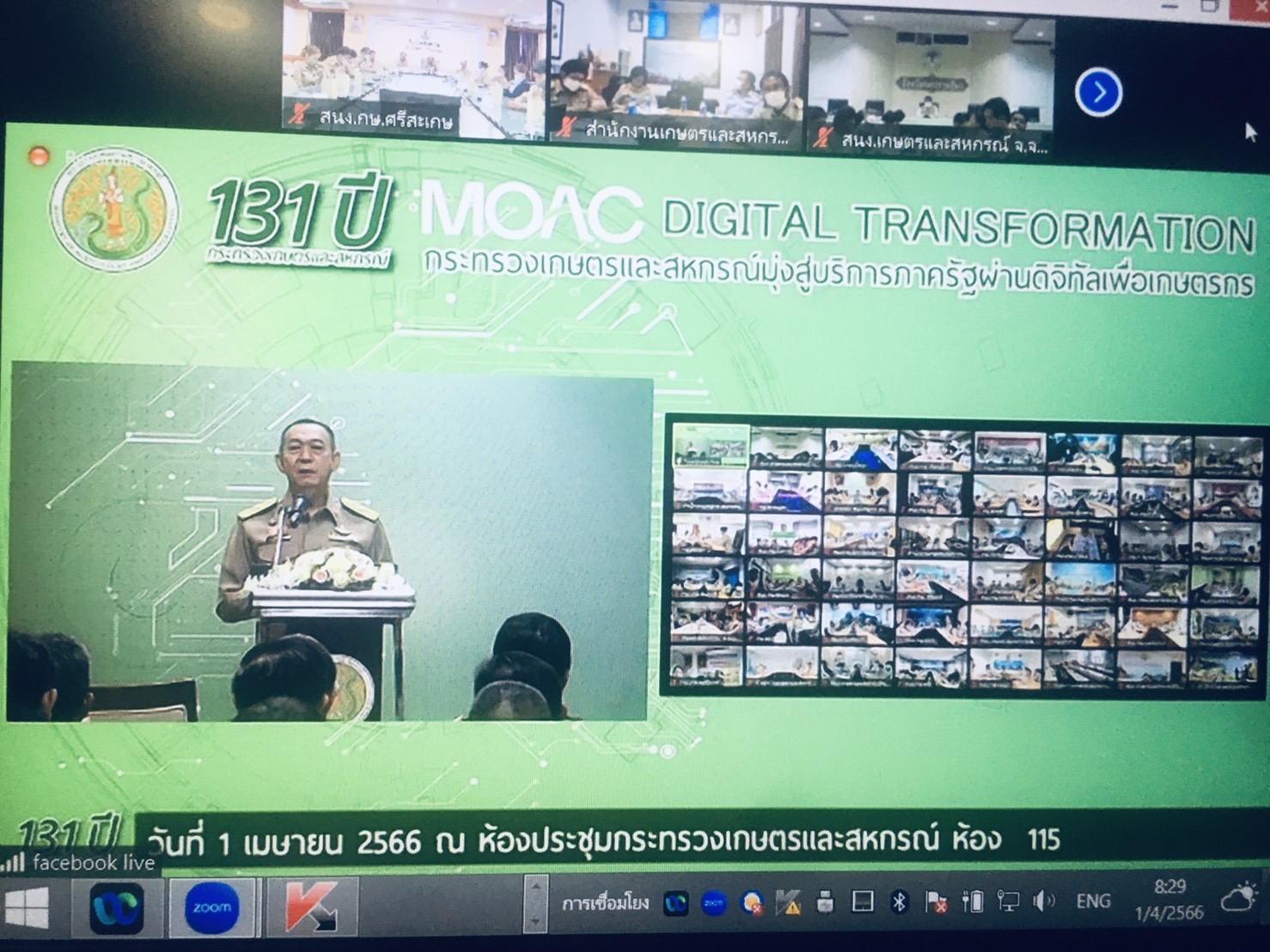 นายกิตติพงษ์ ลีลาศสง่างาม มอบหมายให้ นางสาวชุติพร ฟูปิง หัวหน้ากลุ่มบริหารและยุทธศาสตร์ เข้าร่วม    วันสถาปนากระทรวงเกษตรและสหกรณ์ เนื่องในโอกาสครบรอบ 131 ปี  โดยถ่ายทอดผ่านระบบ Zoom Meeting และ Facebook Live  ณ ห้องประชุมสระกำแพงใหญ่ ชั้น 4 ศาลากลางจังหวัดศรีสะเกษ  โดยมี นายนาวิน ป้องกัน  เกษตรและสหกรณ์จังหวัดศรีสะเกษ  เป็นประธานในกิจกรรมดังกล่าว