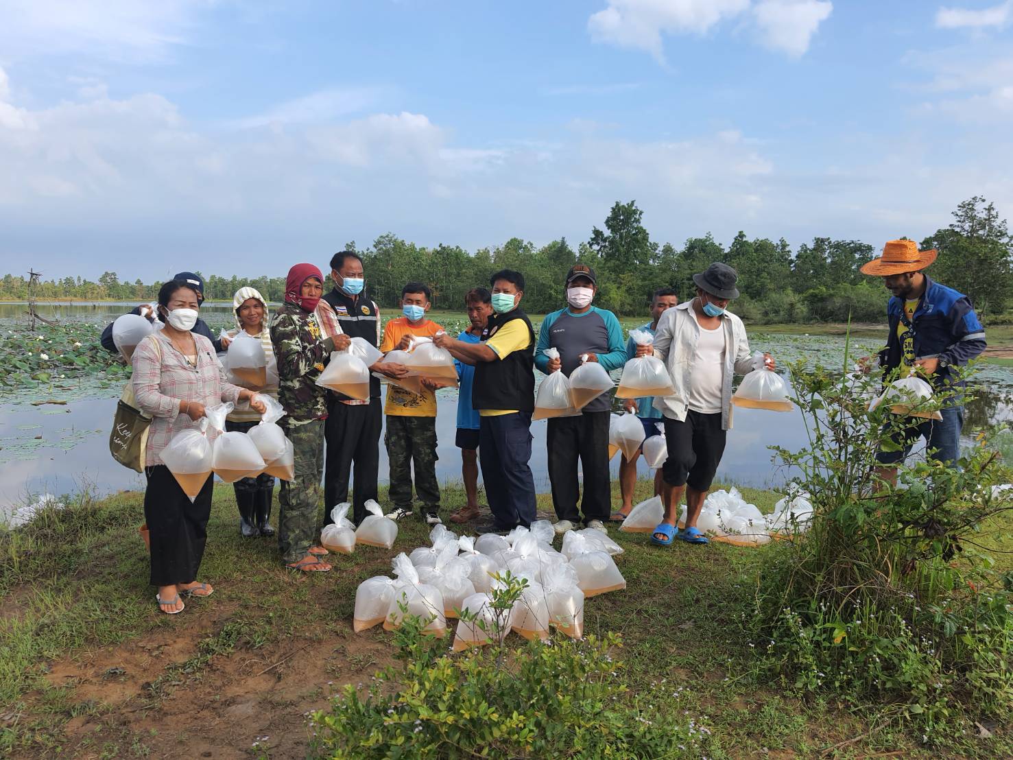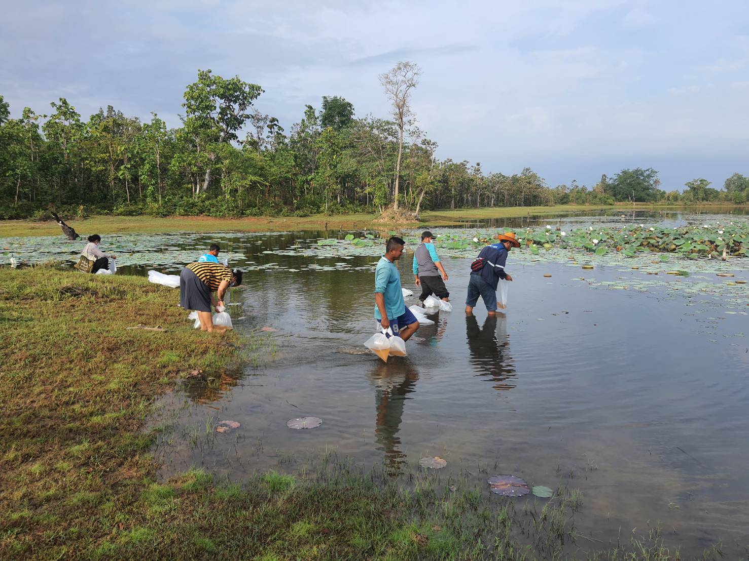 สำนักงานประมงอำเภอโขงเจียม ร่วมกับชุมชนหนองแสงใหญ่ร่วมปล่อยกุ้งก้ามกราม ณ หนองแสงใหญ่