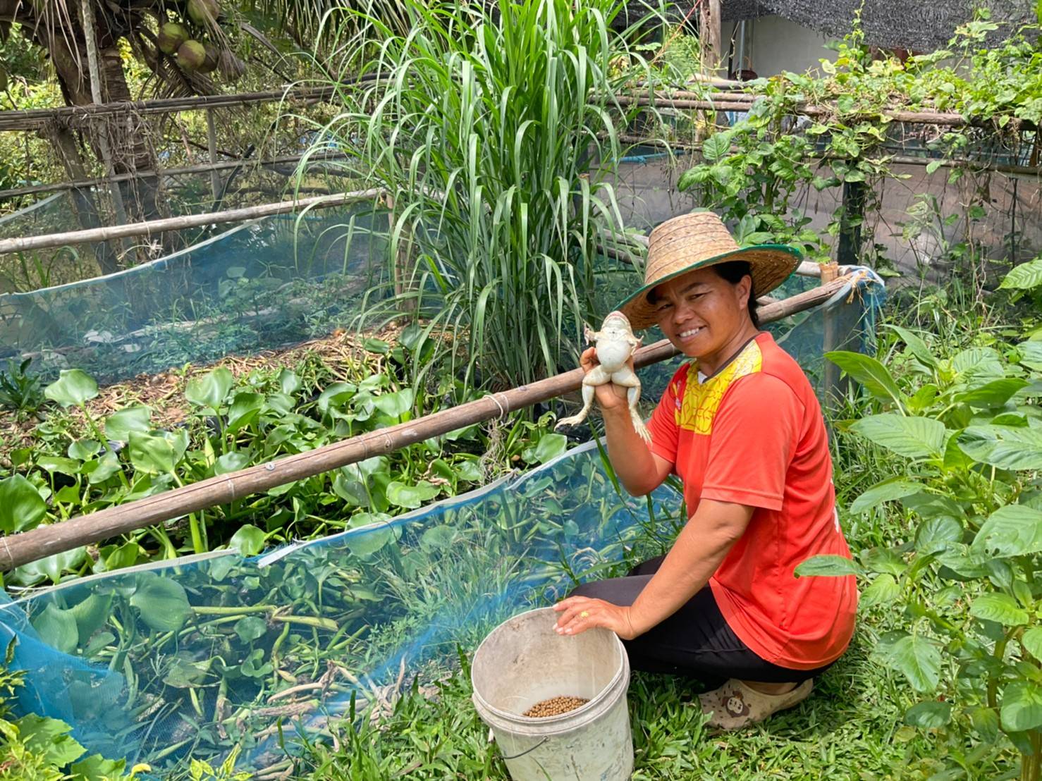 4) เลี้ยงกบในกระชังบก 2 กระชัง