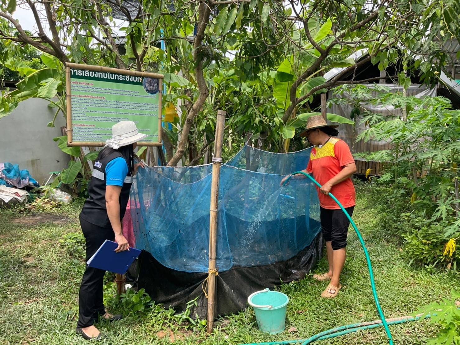 2) มีการเพาะเลี้ยงแหนแดง รอบแปลง