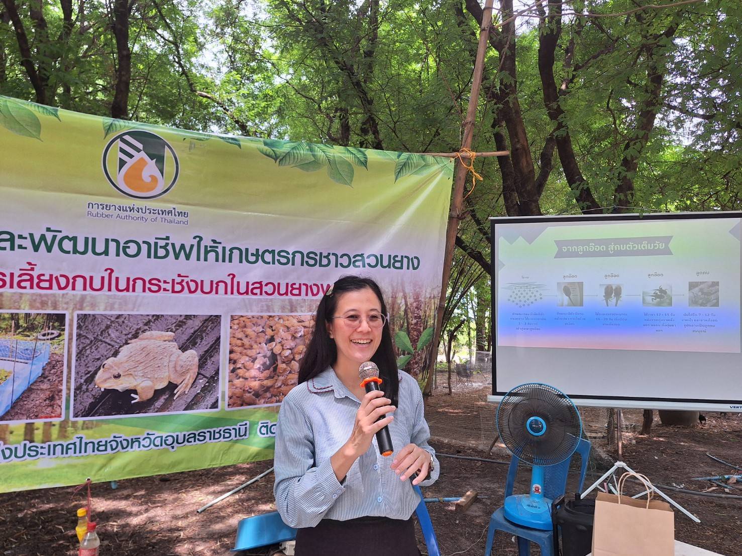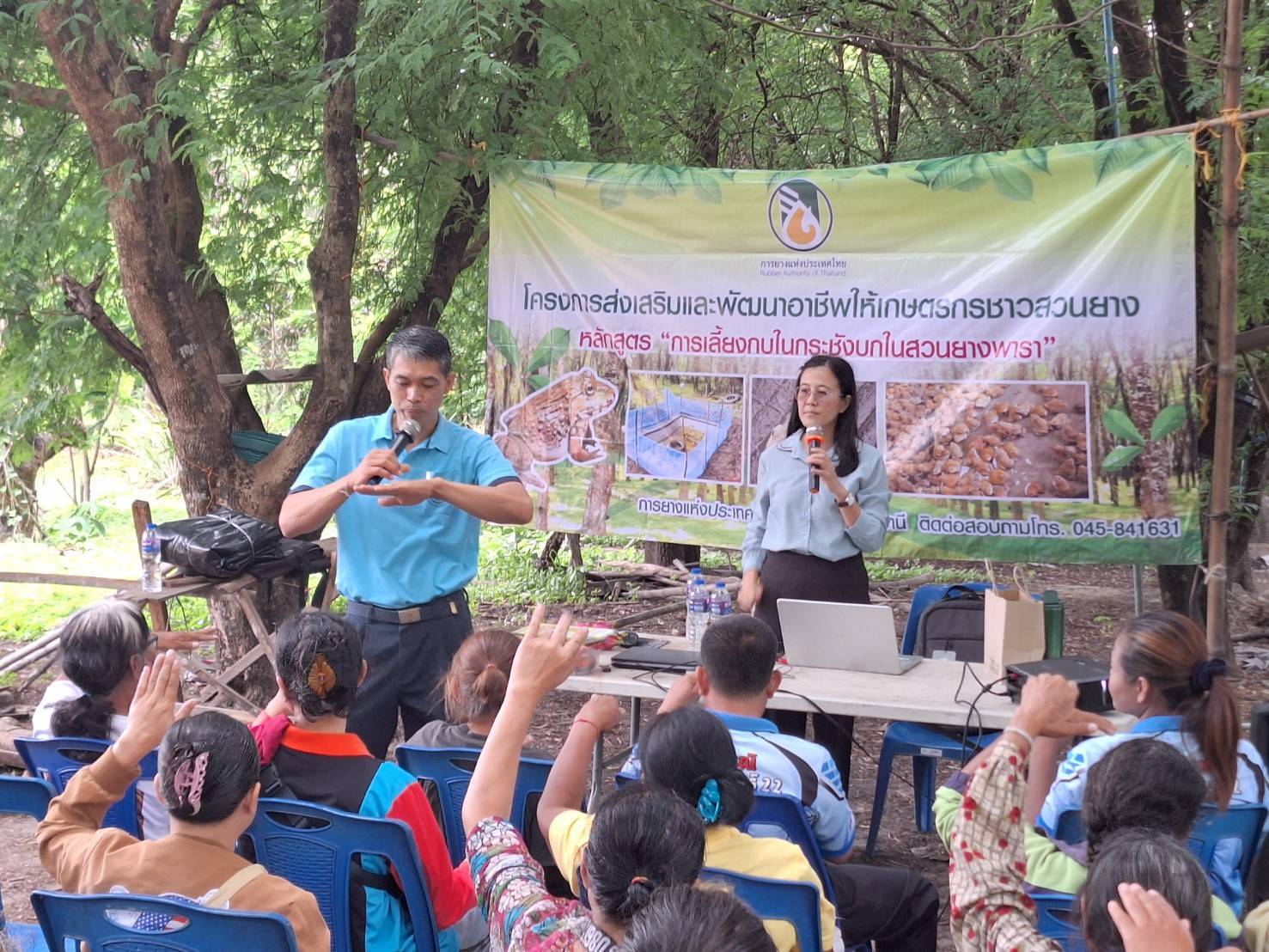 ประมงอุบลฯ บูรณาการร่วมกับการยางแห่งประเทศไทย จังหวัดอุบลราชธานี อบรมเกษตรกรภายใต้โครงการส่งเสริมและพัฒนาอาชีพให้แก่เกษตรกรชาวสวนยาง หลักสูตร “การเลี้ยงกบในกระชังบกในสวนยางพารา” รุ่นที่ 2