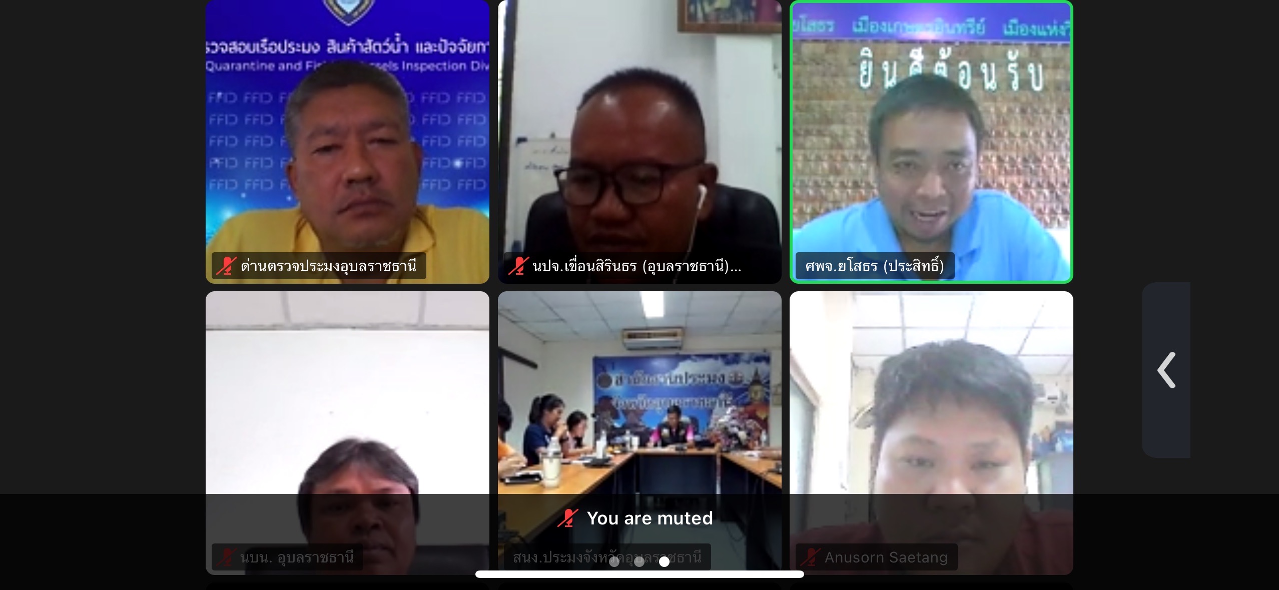 เวลา 09.30 น. นายสุริยันต์ วรรณวงษ์ ประมงจังหวัดอุบลราชธานี พร้อมด้วยนางเพชรรัตน์ สมเสนาะ หัวหน้ากลุ่มบริหารและยุทธศาสตร์ และเจ้าหน้าที่สำนักงานฯ ร่วมประชุมประชุมคณะกรรมการขับเคลื่อนนโยบาย ของกรมประมง (FIsheries Co-ordinator : FC) ครั้งที่ 6/2567 เพื่อรับฟังผลการปฏิบัติงาน อุปสรรคในการดำเนินงาน ตลอดจนหารือในการบูรณาการร่วมกันระหว่างหน่วยงานในสังกัดกรมประมง ผ่านระบบประชุมทางไกล Application ZOOM ณ ห้องประชุมสำนักงานประมงจังหวัดอุบลราชธานี โดยมีนายสุริยันต์ วรรณวงษ์ ประมงจังหวัดอุบลราชธานี ประธานคณะกรรมการขับเคลื่อนนโยบายของกรมประมง หน่วยงานในสังกัดกลุ่มเขต 14 เป็นประธาน