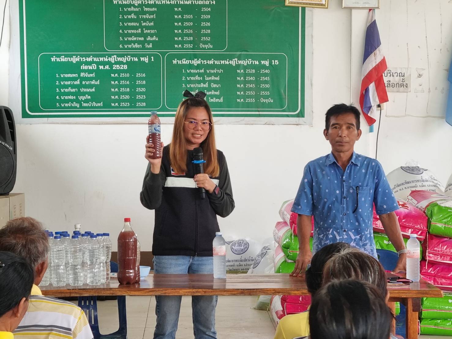 ในครั้งนี้มีการถ่ายทอดองค์ความรู้การนำวัสดุเหลือใช้จากการเกษตรเพื่อนำมาใช้เลี้ยงสัตว์น้ำอินทรีย์ ให้เป็นมิตรกับสิ่งแวดล้อม ได้แก่การทำหัวเชื้อจุลินทรีย์แล็คโตบาซิลลัส ด้วยน้ำมะพร้าว การทำอาหารปั้นก้อนจากวัสดุเหลือใช้จากการเกษตร โดยมีนายสะอาด วงศ์รักษ์ นายอำเภอเดชอุดม เป็นประธานในการมอบปัจจัยการผลิต แก่เกษตรกรที่ร่วมโครงการฯ ปัจจัยการผลิตได้แก่ลูกพันธ์ปลากินพืช จำนวน 1,600 ตัว/ราย รวมจำนวนทั้งสิ้น 40,000 ตัว และอาหารสำเร็จรูปเม็ดเล็กจำนวน 20 กิโลกรัม/ราย รวมจำนวนทั้งสิ้น 500 กิโลกรัม รวมทั้งสิ้นจำนวน 25 ราย