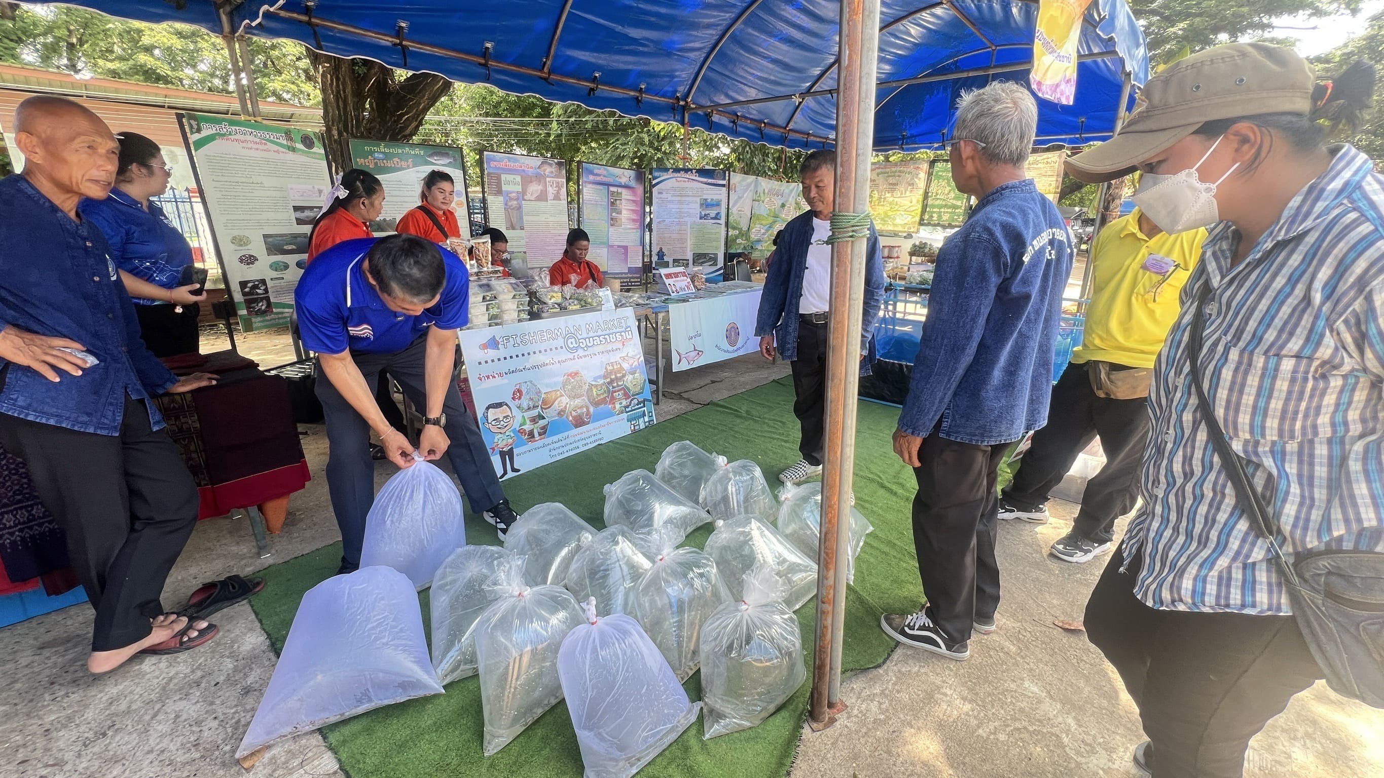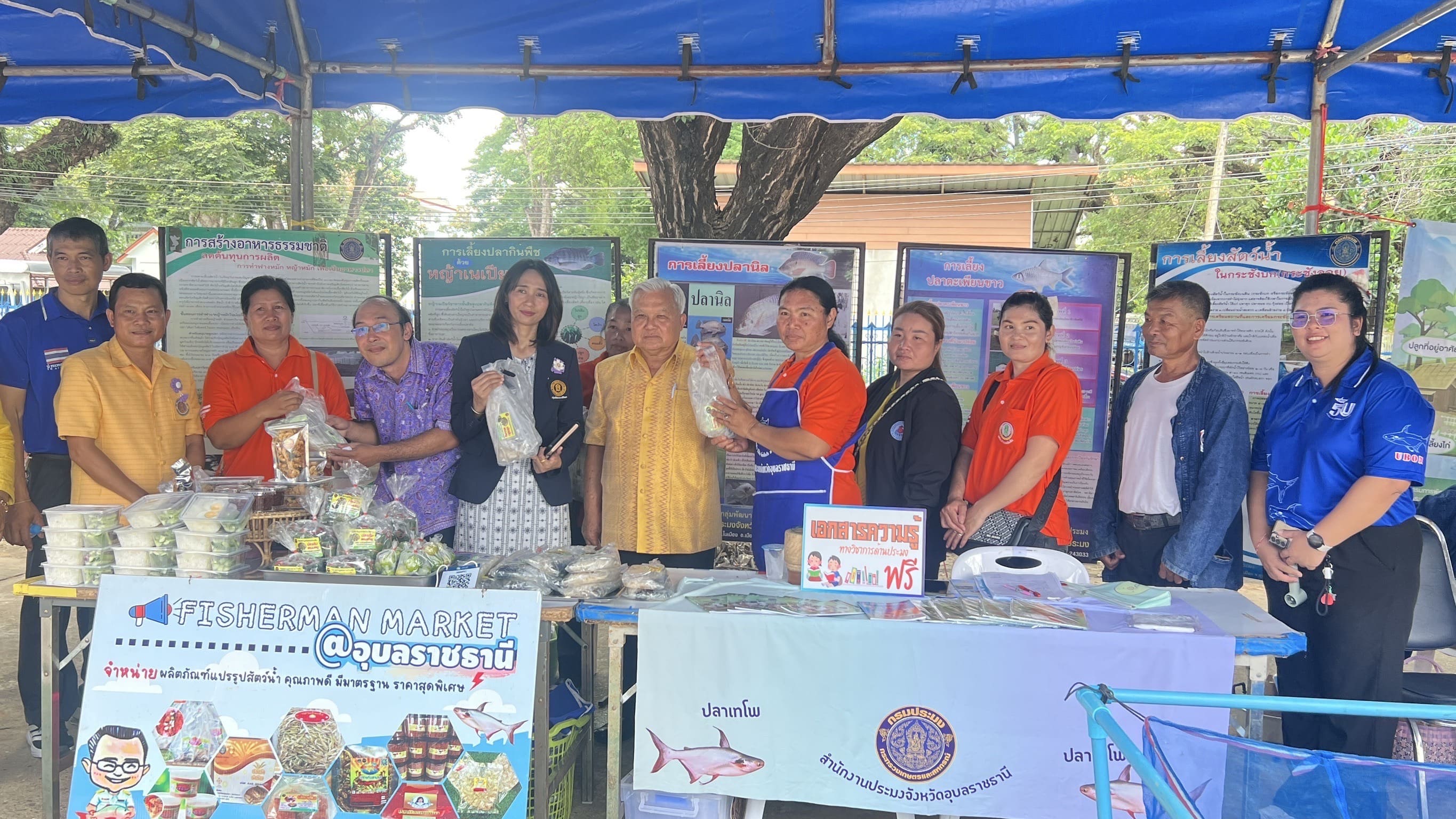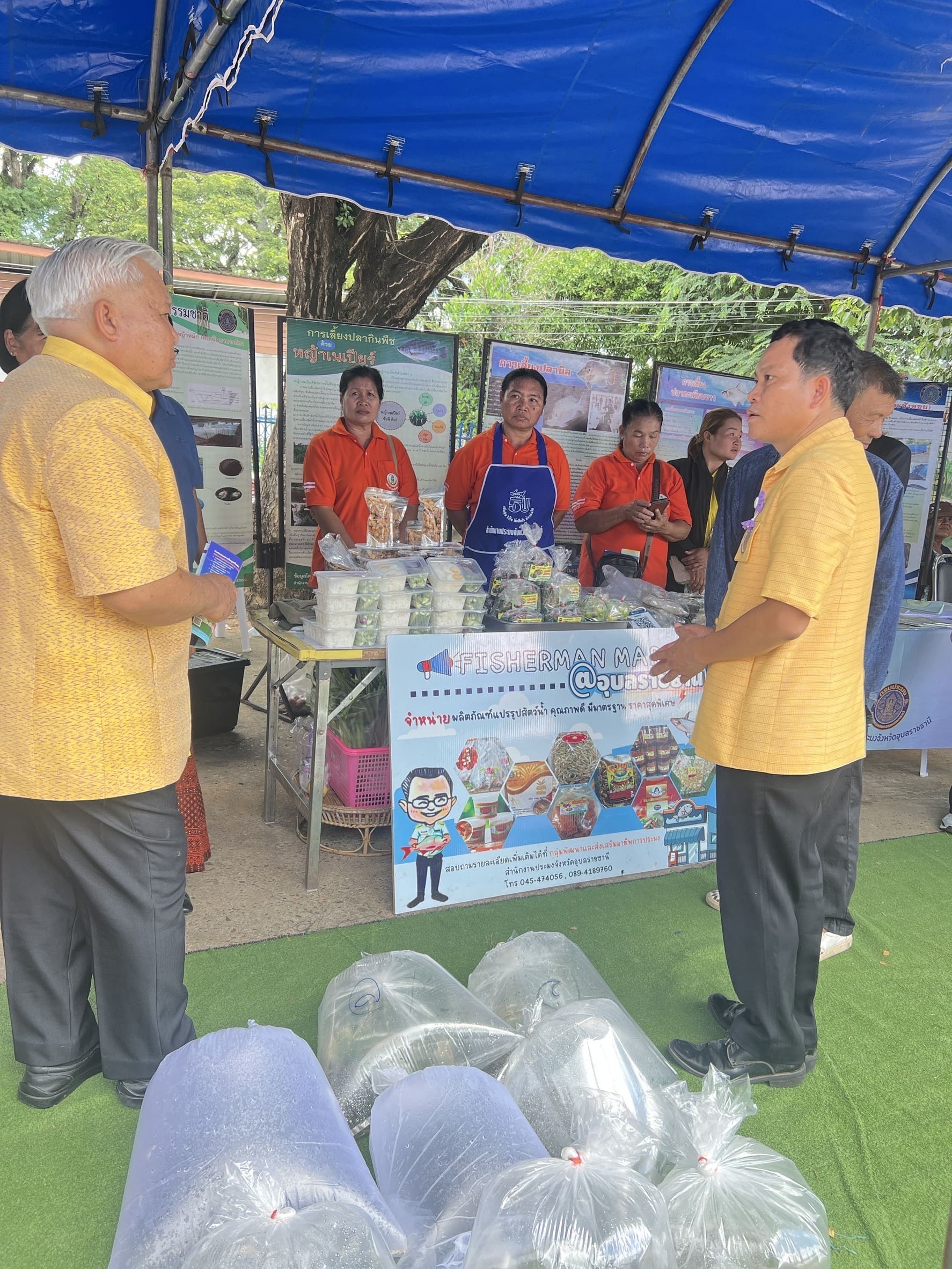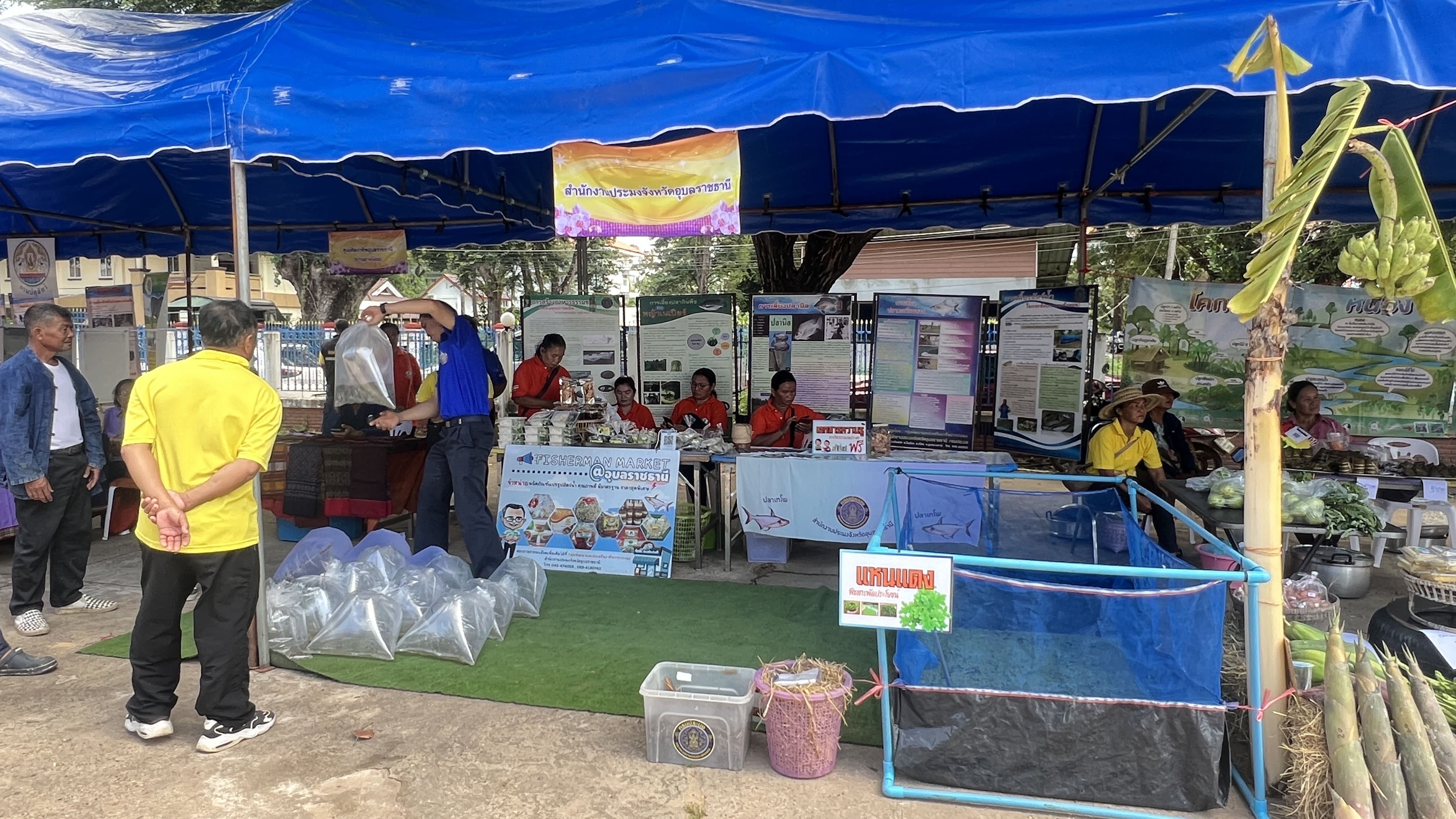 อีกทั้งนำเกษตรกรผู้แปรรูปสัตว์น้ำ “กลุ่มแปรรูปอาหารบ้านทัน” ตำบลธาตุน้อย หมู่ที่ 9 อำเภอเขื่องใน จังหวัดอุบลราชธานี เข้ามาจัดร้านค้าจำหน่ายผลิตภัณฑ์แปรรูปสัตว์น้ำภายในงาน อาทิ ปลาส้มปลาตะเพียน  น้ำพริกแจ่วบอง ปลาส้มแหนมหมู ข้าวน้ำพริกไข่ต้ม และอื่นๆ ภายใต้ธีม Fisherman Market  และนายสุดเขต ใจอารีย์ เกษตรกรจากโครงการฟาร์มตัวอย่างตามพระราชดำริฯ บ้านยางน้อย นำลูกพันธุ์สัตว์น้ำจืด อาทิ ปลาตะเพียน ปลานวลจันทร์ และปลายี่สก มาจำหน่ายภายในงานอีกด้วย