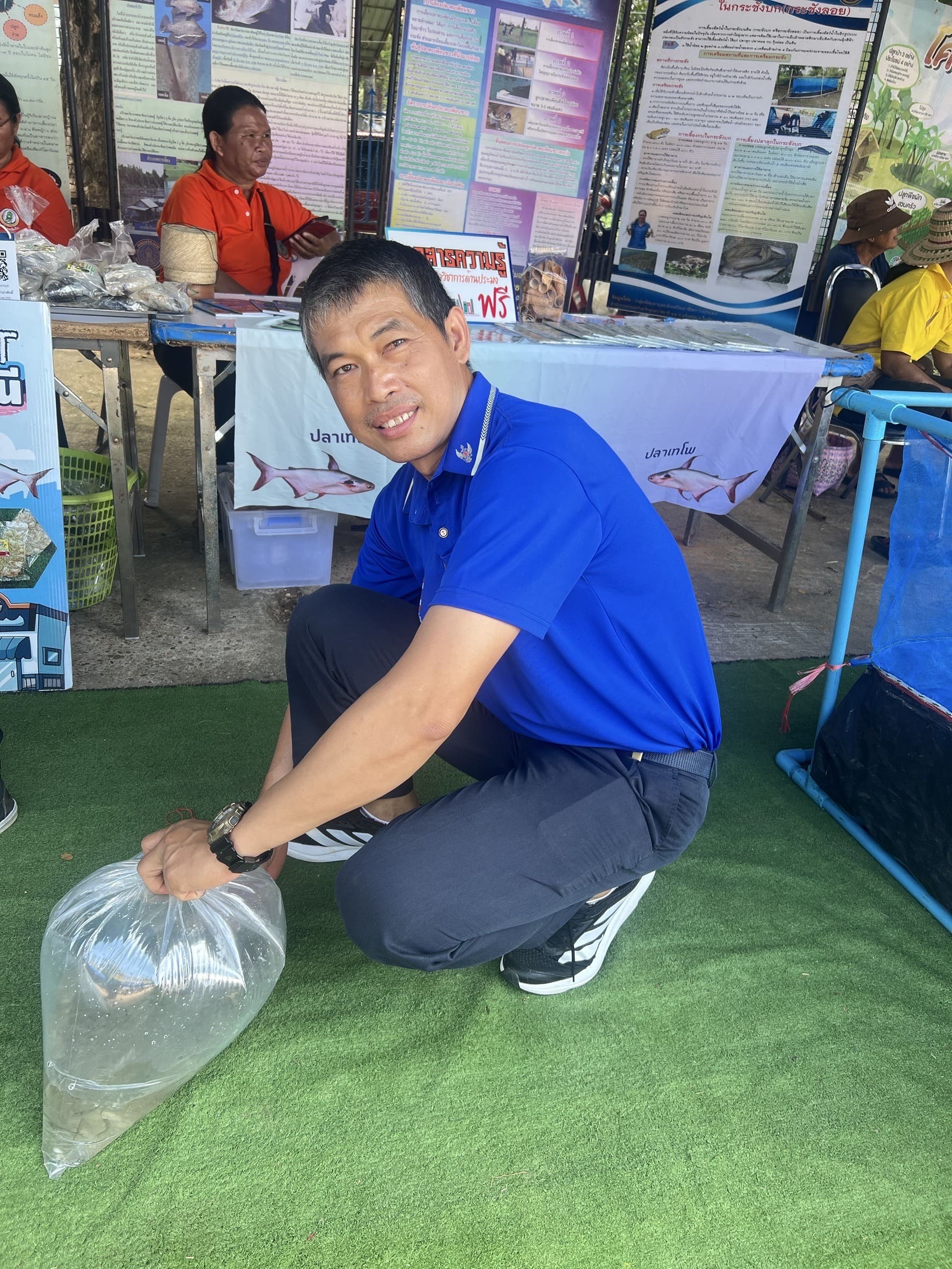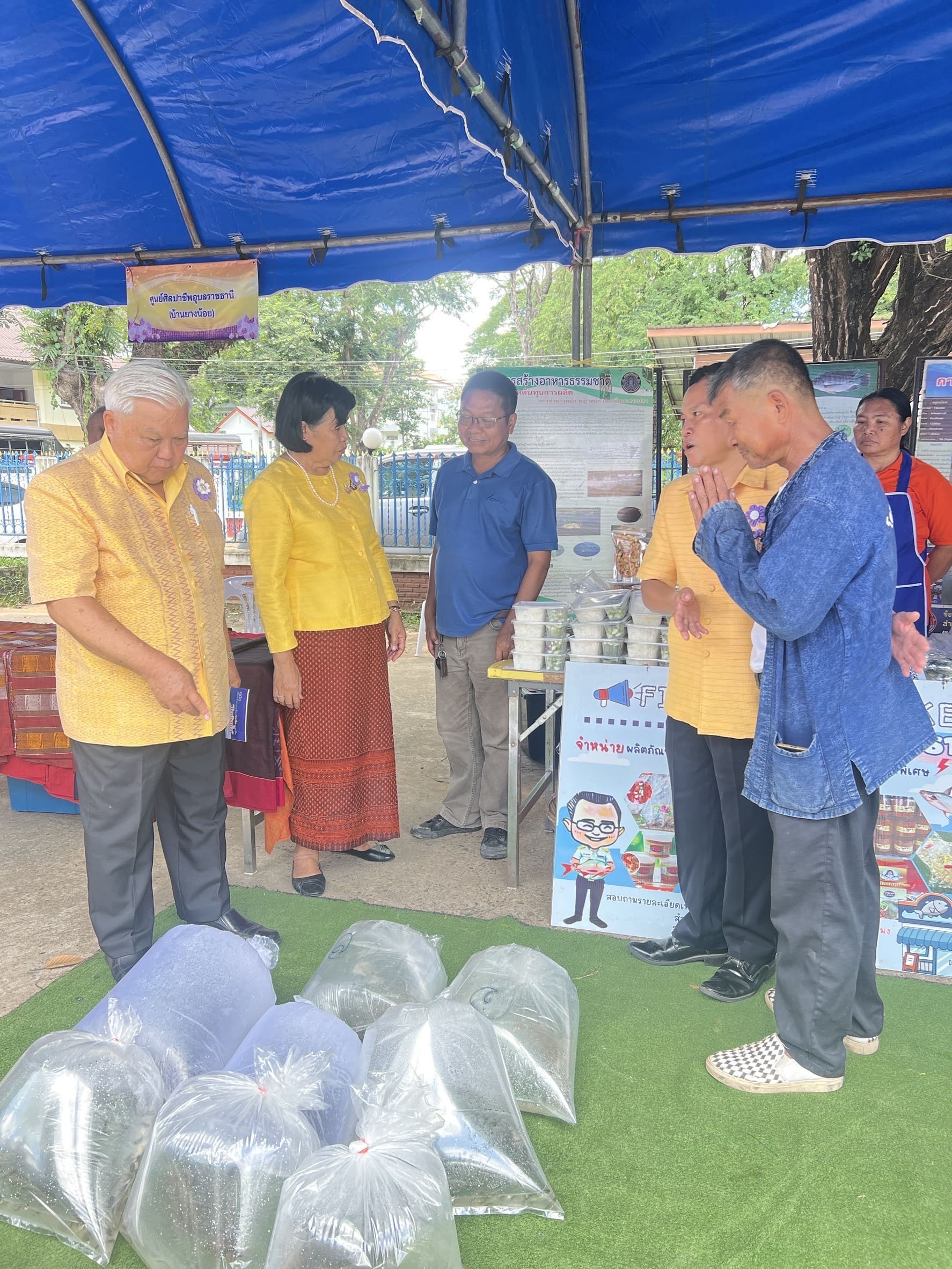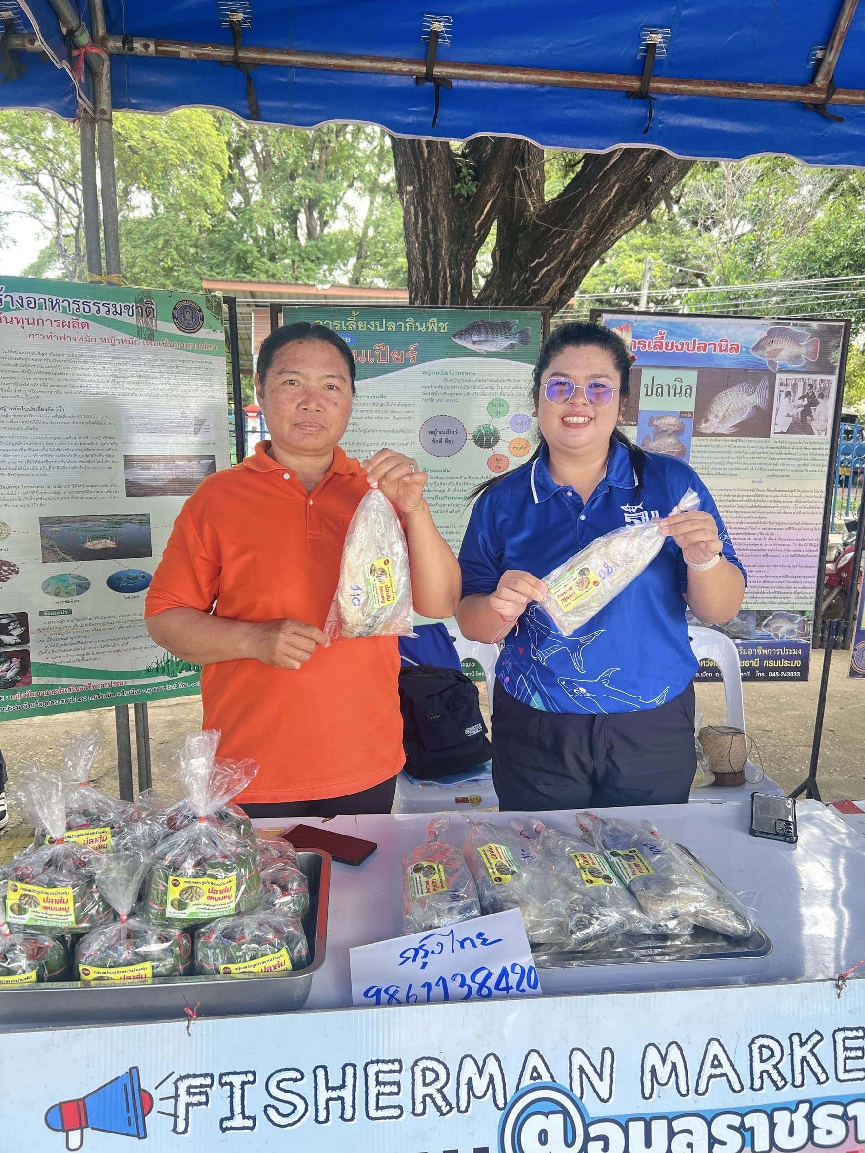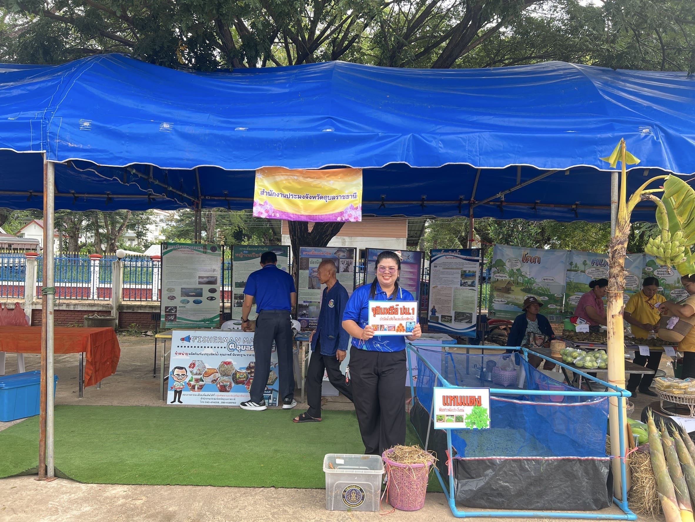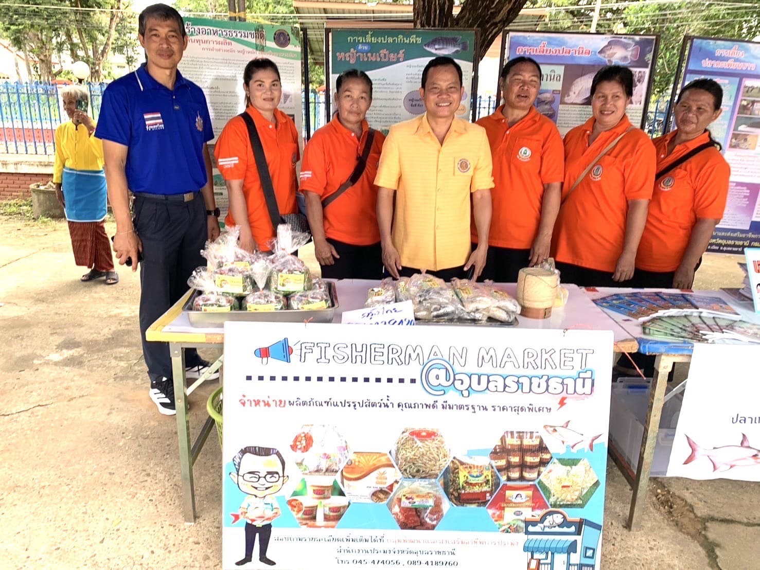 อีกทั้งนำเกษตรกรผู้แปรรูปสัตว์น้ำ “กลุ่มแปรรูปอาหารบ้านทัน” ตำบลธาตุน้อย หมู่ที่ 9 อำเภอเขื่องใน จังหวัดอุบลราชธานี เข้ามาจัดร้านค้าจำหน่ายผลิตภัณฑ์แปรรูปสัตว์น้ำภายในงาน อาทิ ปลาส้มปลาตะเพียน  น้ำพริกแจ่วบอง ปลาส้มแหนมหมู ข้าวน้ำพริกไข่ต้ม และอื่นๆ ภายใต้ธีม Fisherman Market  และนายสุดเขต ใจอารีย์ เกษตรกรจากโครงการฟาร์มตัวอย่างตามพระราชดำริฯ บ้านยางน้อย นำลูกพันธุ์สัตว์น้ำจืด อาทิ ปลาตะเพียน ปลานวลจันทร์ และปลายี่สก มาจำหน่ายภายในงานอีกด้วย