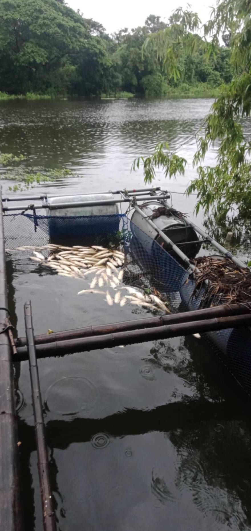 โดยจาการสอบถามข้อมูลของเกษตรกรผู้แจ้งความเสียหาย รายนางเพียงเพ็ญ นักบุญ ผู้เลี้ยงปลาสวายในกระชัง กระชังพื้นที่ 81 ตารางเมตร ปลาสวายมีอายุ 1.5 ปี จำนวน 5.000 ตัว ไม่ได้มีความเสียหาย แต่ปลาที่ตายและเสียหาย เป็นปลากระโห้ อายุ 1 ปี ปล่อยจำนวน 1,000 ตัวในกระชัง ได้รับความเสียหายและทยอยตายหมดภายใน 2 วัน จากการตรวจสอบสภาพพื้นที่ แหล่งน้ำและอัตราการปล่อยปลาที่หนาแน่น ปลาขาดอ๊อกซิเจน ซึ่งเกษตรกรไม่ได้มีการเตรียมป้องกันในส่วนนี้และประกอบกับพื้นที่กุดปลาขาวใกล้กับชุมชนและตลาดทำให้มีน้ำเสียจากชุมชนไหลลงสุ๋กุดปลาขาว ทำให้สัตว์น้ำในกระชังได้รับความเสียหาย  ซึ่งประมงอำเภอได้ชี้แจงให้เกษตรกรทราบถึงหลักเกณฑ์การให้ความช่วยเหลืออุทกภัยด้านประมง เกษตรกรรับทราบและเข้าใจในเกณฑ์การให้ความช่วยเหลือ