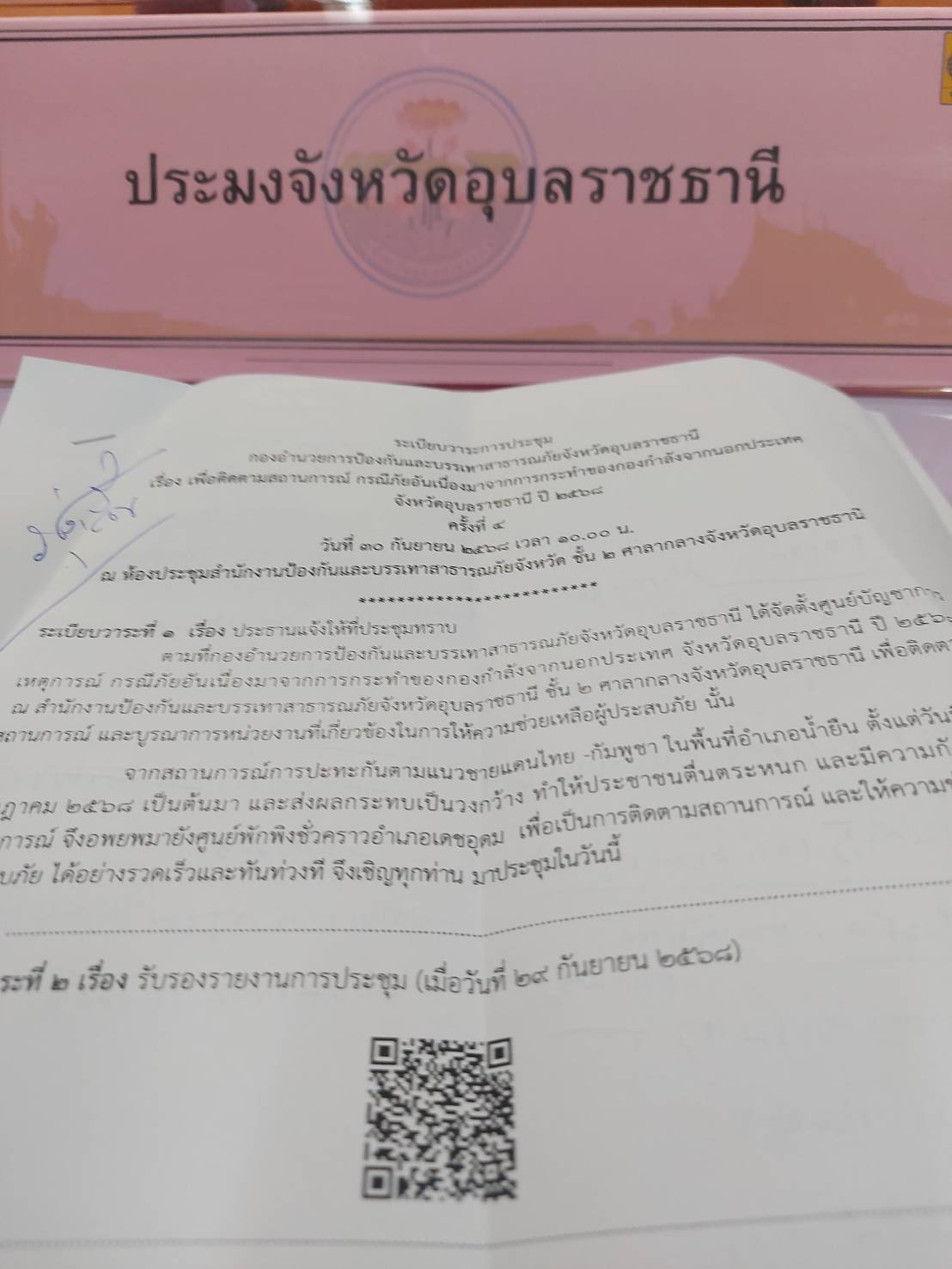 วันอังคารที่ 30 กันยายน 2568 เวลา 10.00 น. ประมงจังหวัดอุบลราชธานี มอบหมายให้นายสุนทร รุ่งเรือง หัวหน้ากลุ่มบริหารจัดการด้านการประมง ประชุมกองอำนวยการป้องกันและบรรเทาสาธารณภัยจังหวัดอุบลราชธานี เพื่อติดตามสถานการณ์ กรณีภัยอันเนื่องมาจากการกระทำของกองกำลังจากนอกประเทศ ณ ห้องประชุมสำนักงานป้องกันและบรร้ทาสาธารณภัยจังหวัด ชั้น 2 ศาลากลางจังหวัดอับลราชธานี โดยมีร้อยตรีสรมงคล มงคละสิริ รองผู้ว่าราชการจังหวัดอุบลราชธานี เป็นประธาน
