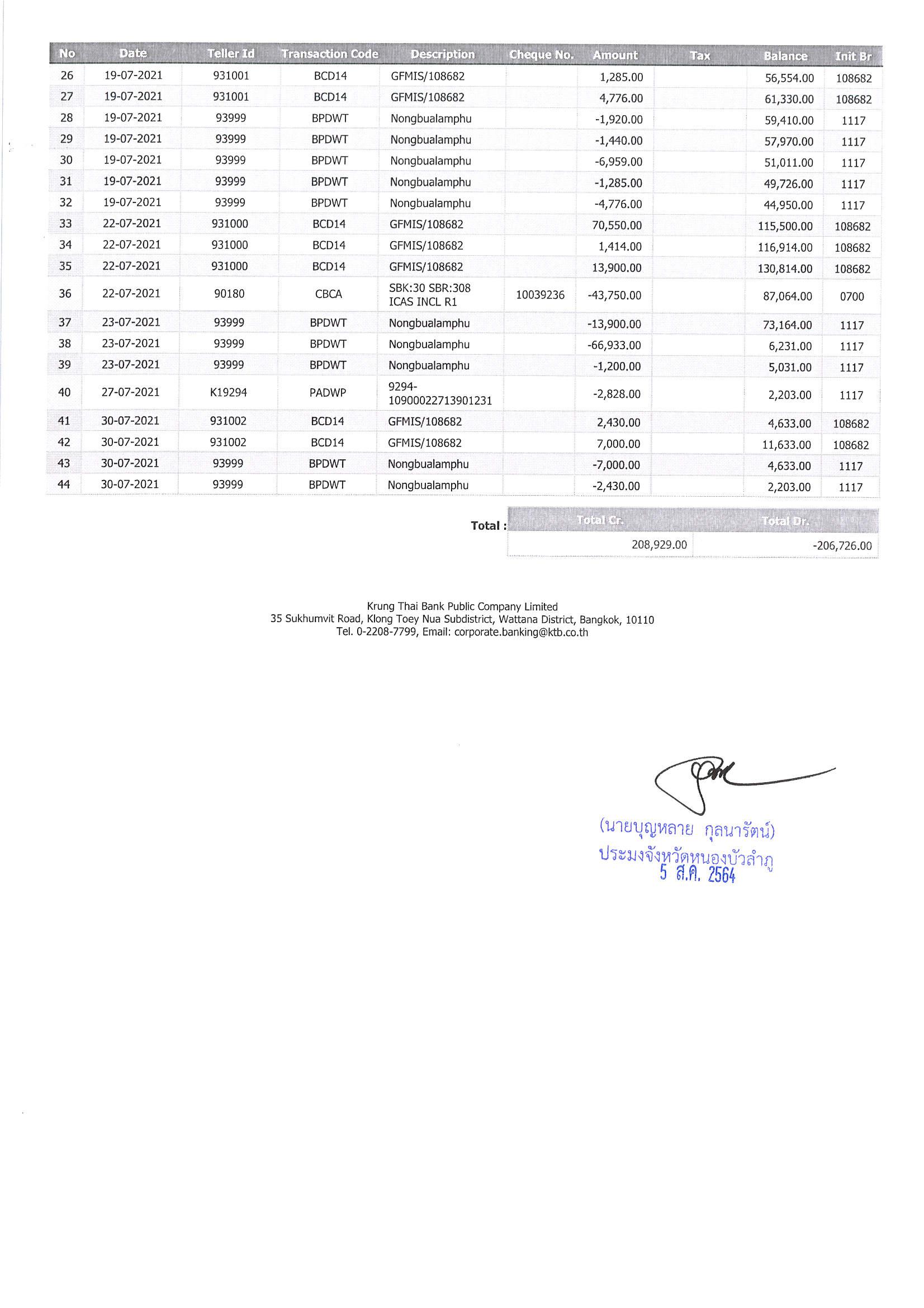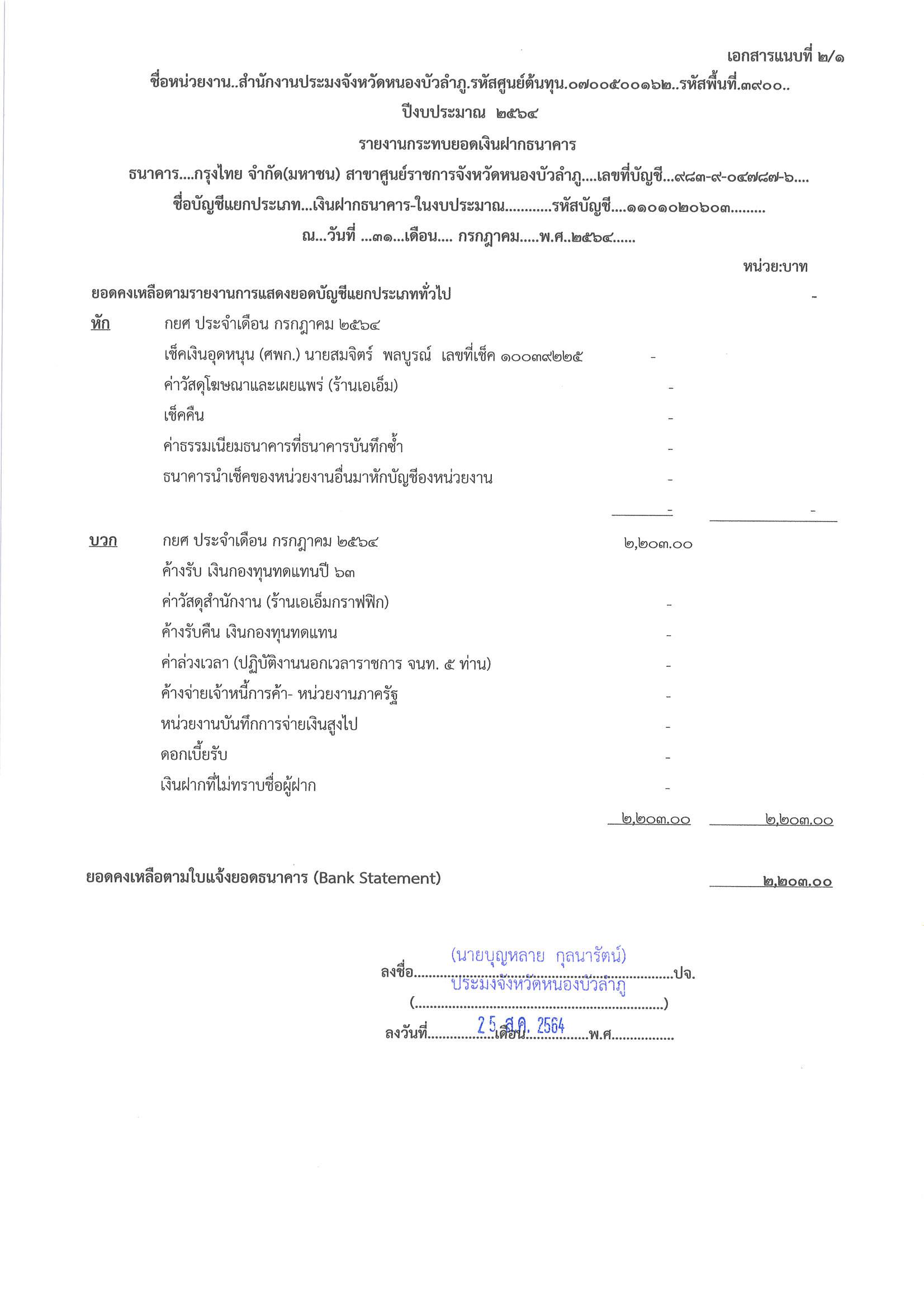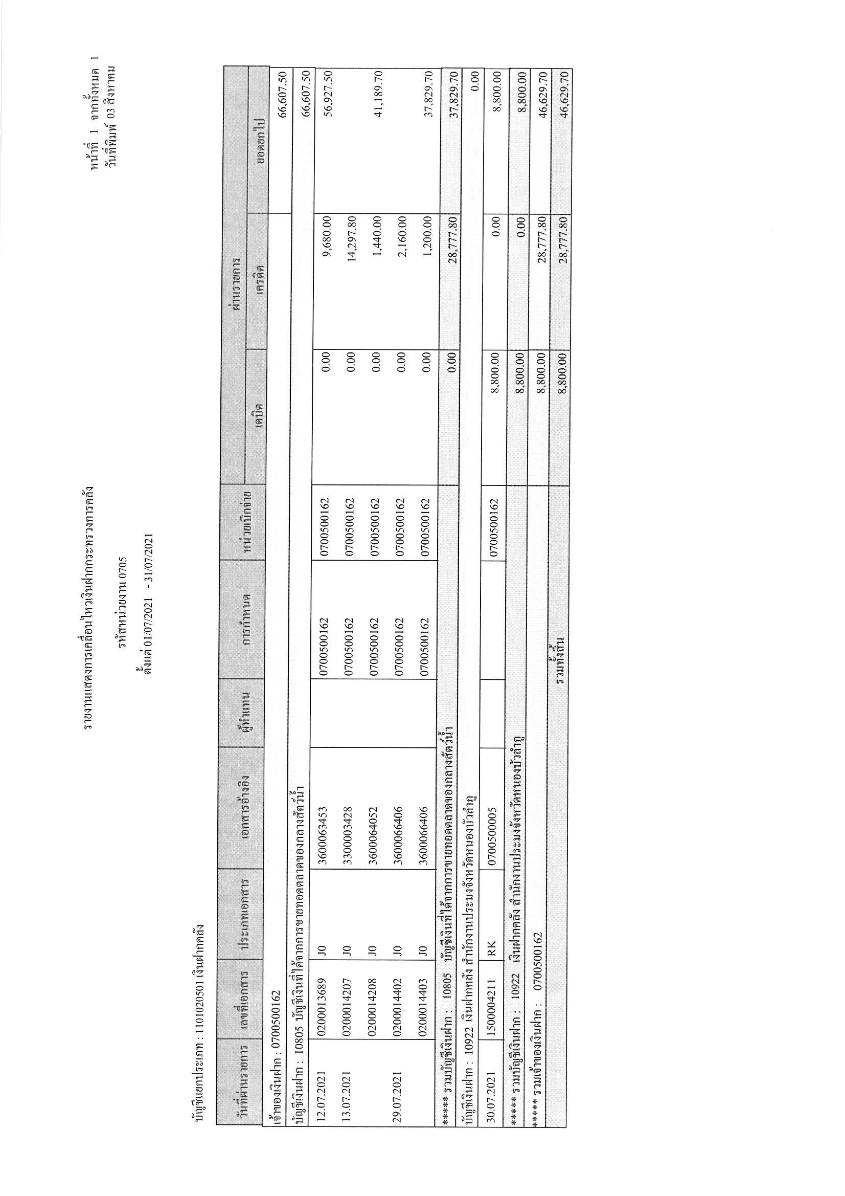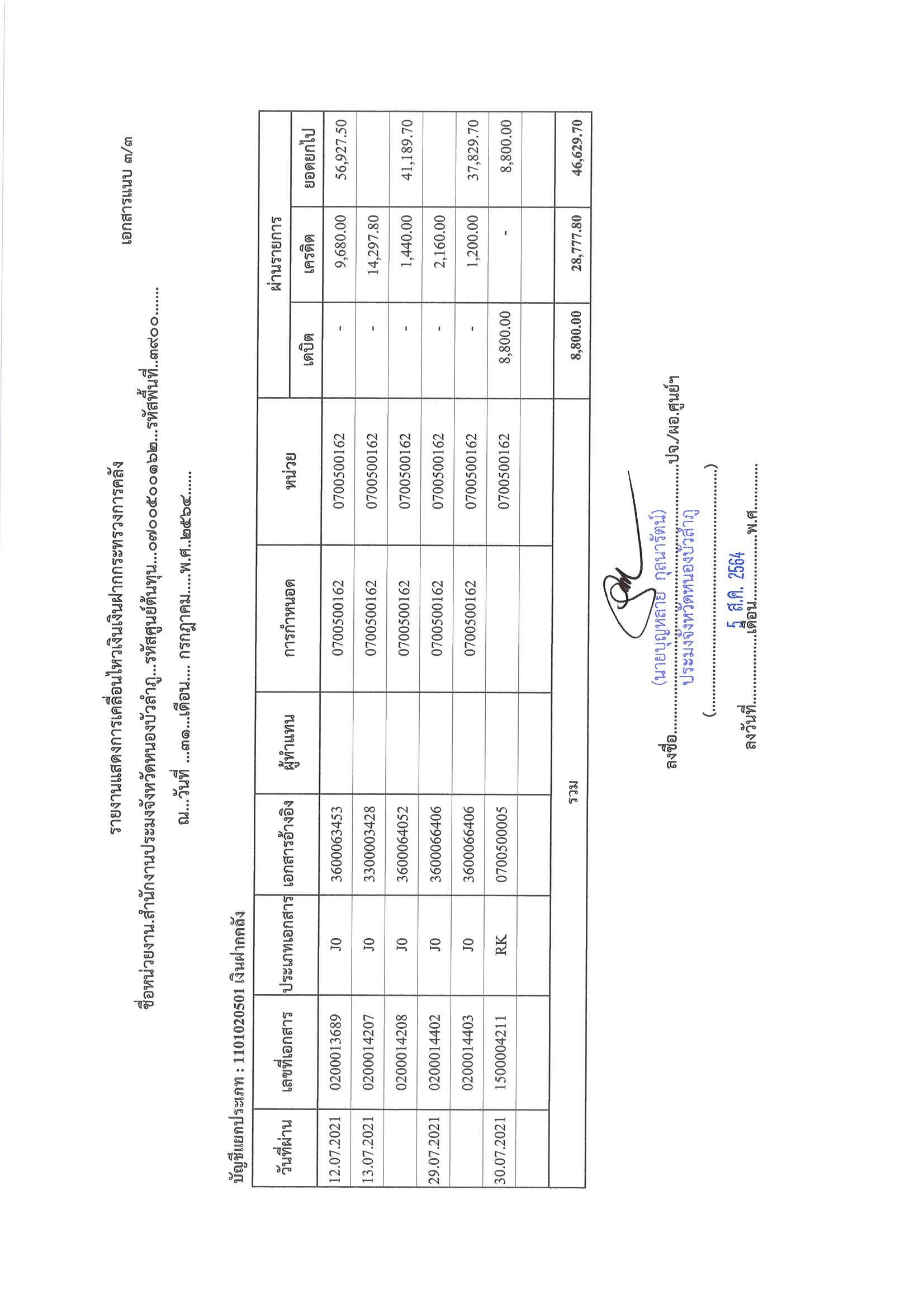 การเปิดเผยแสดงรายละเอียดประกอบรายการบัญชีที่สำคัญประกอบงบทดลองประจำเดือน กรกฎาคม 2564..คลิก
