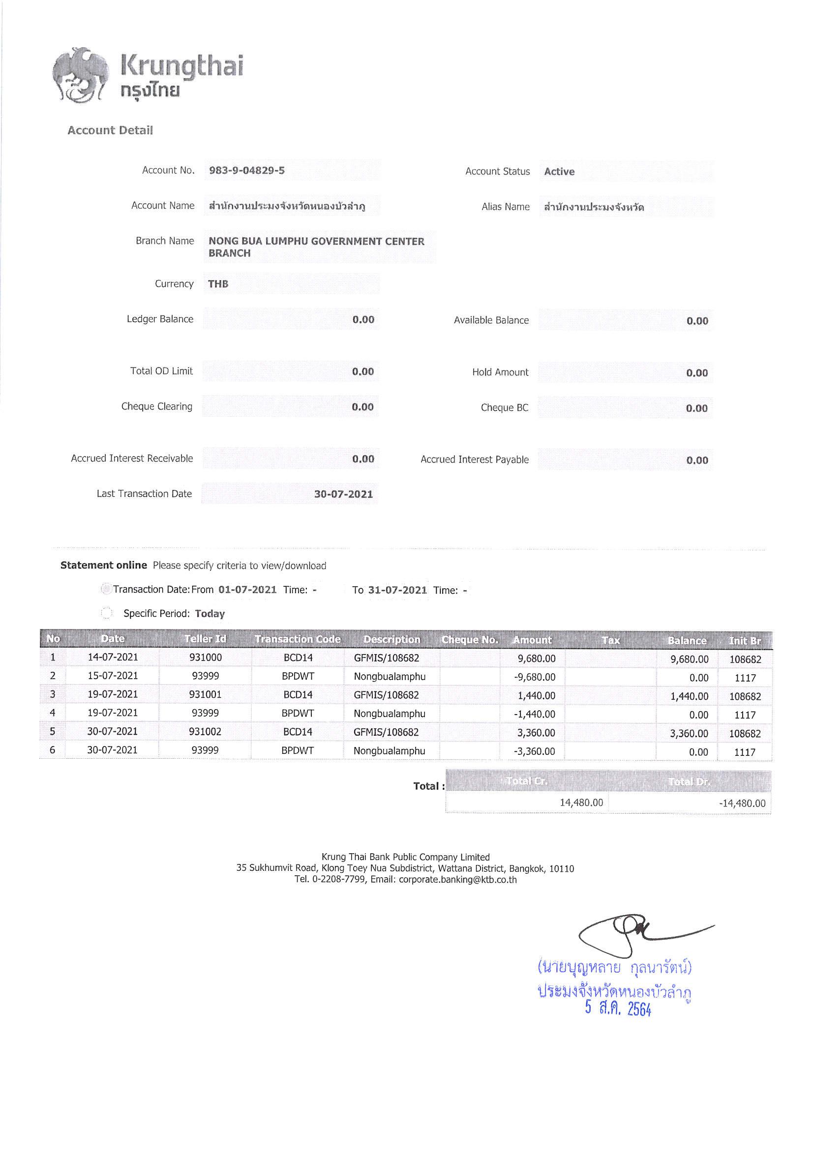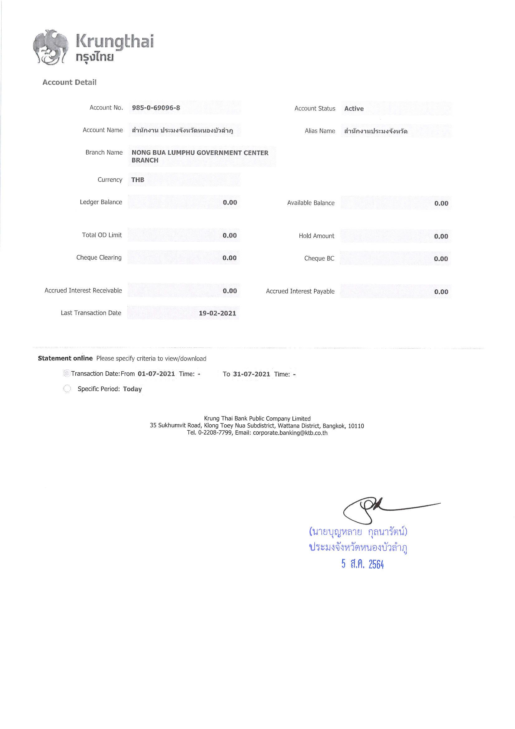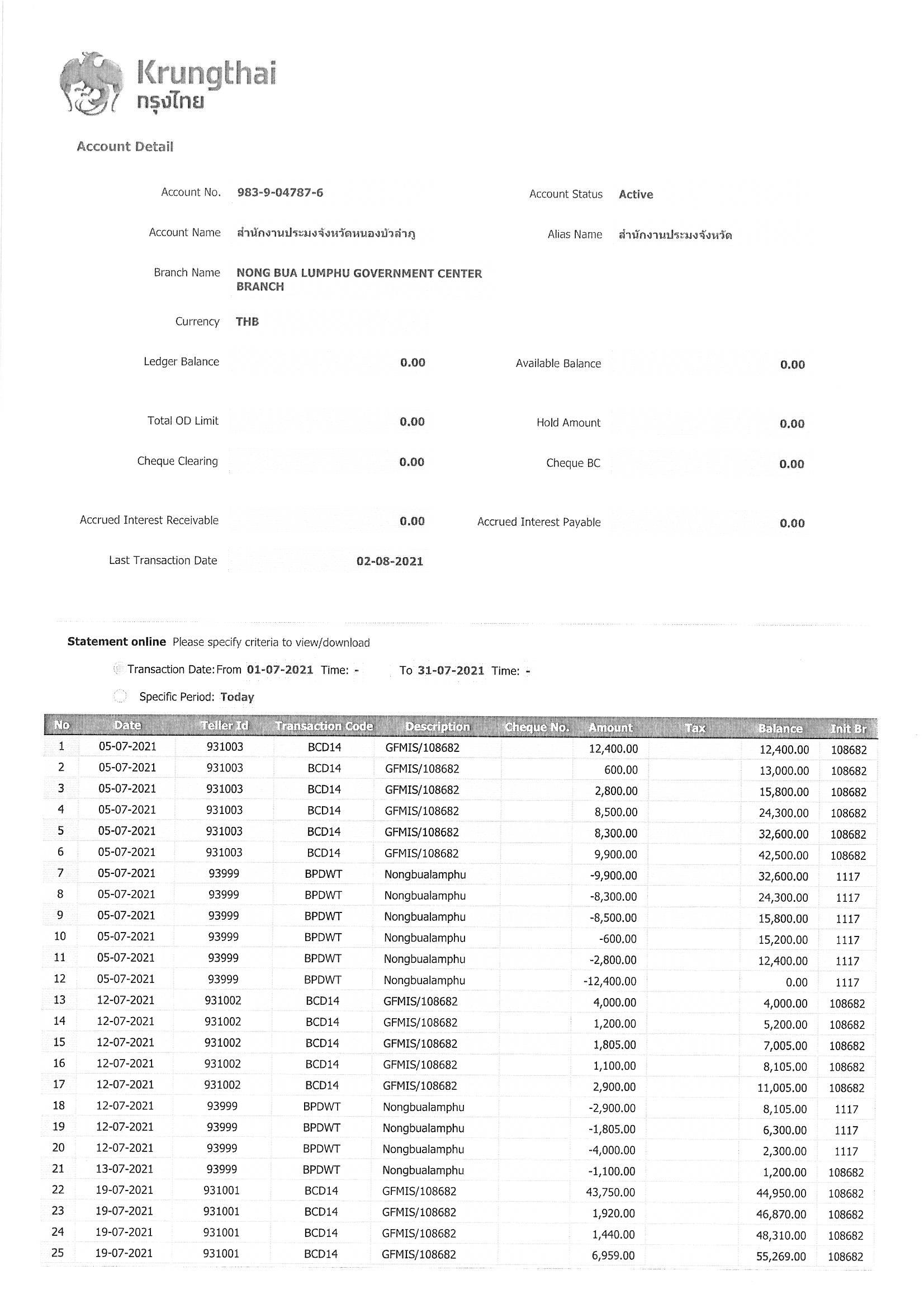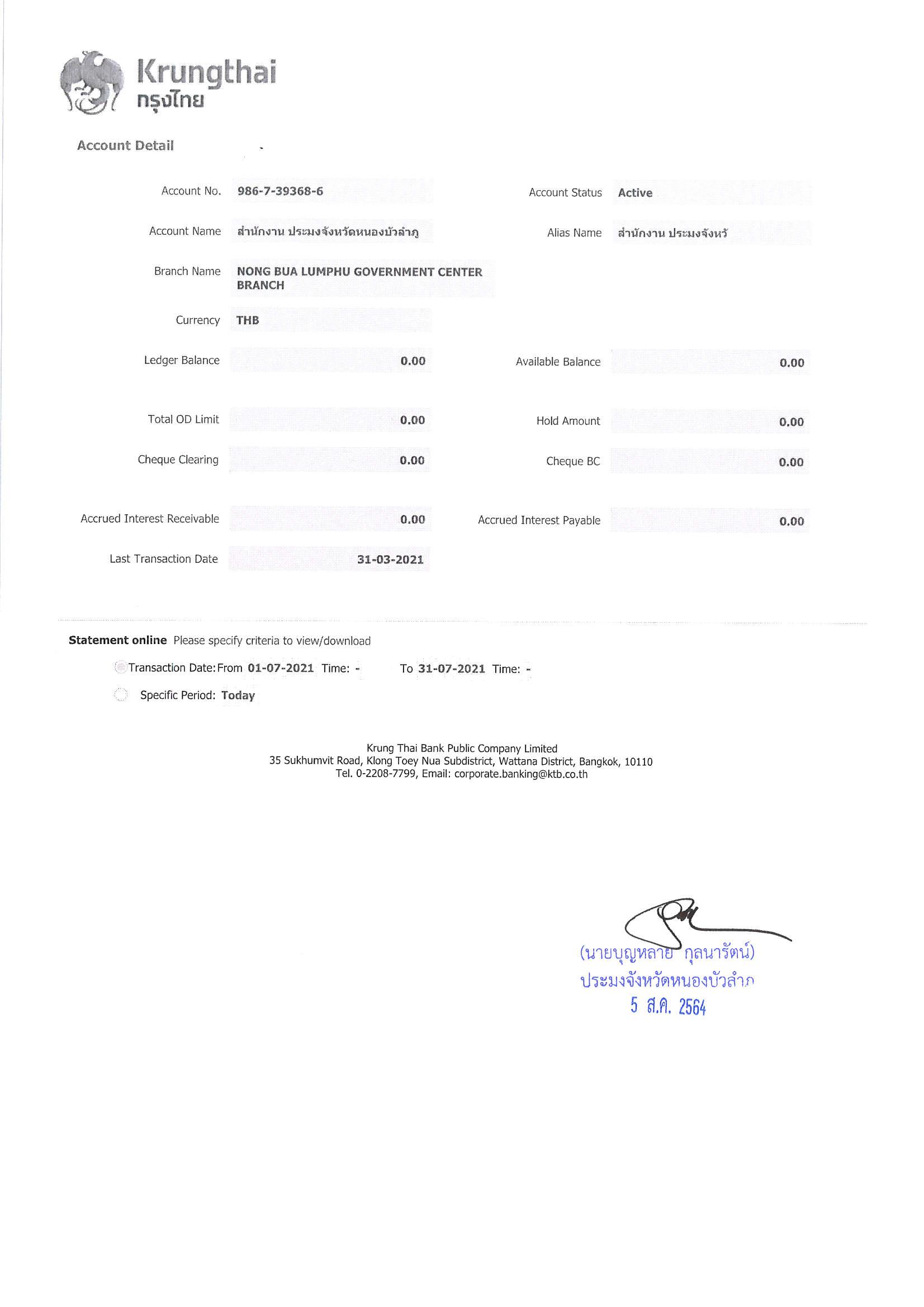 การเปิดเผยแสดงรายละเอียดประกอบรายการบัญชีที่สำคัญประกอบงบทดลองประจำเดือน กรกฎาคม 2564..คลิก
