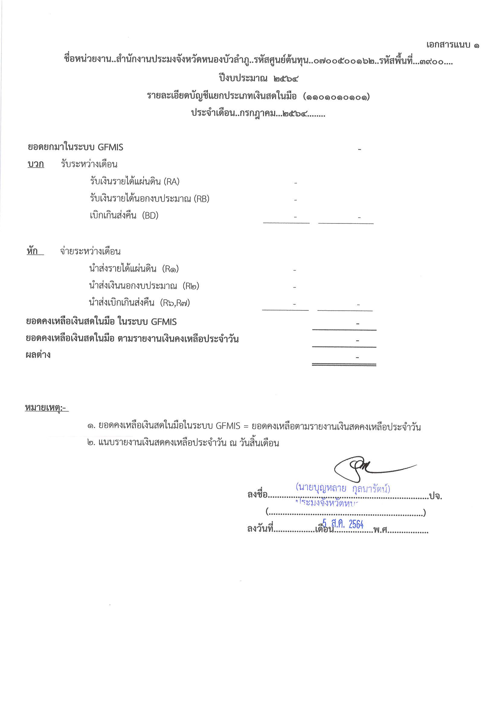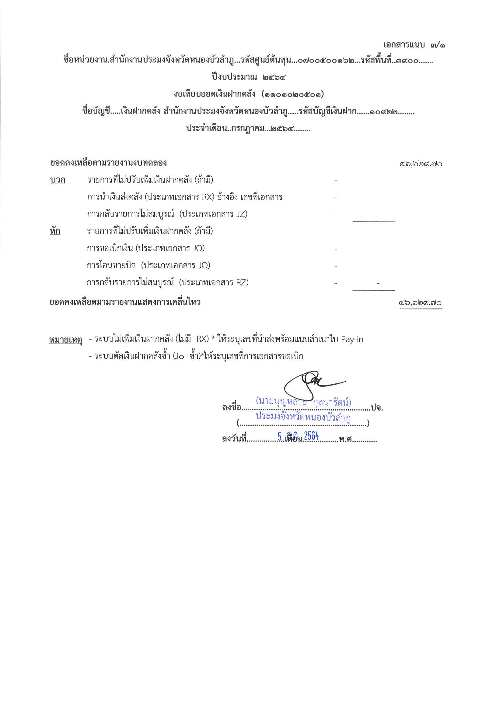 การเปิดเผยแสดงรายละเอียดประกอบรายการบัญชีที่สำคัญประกอบงบทดลองประจำเดือน กรกฎาคม 2564