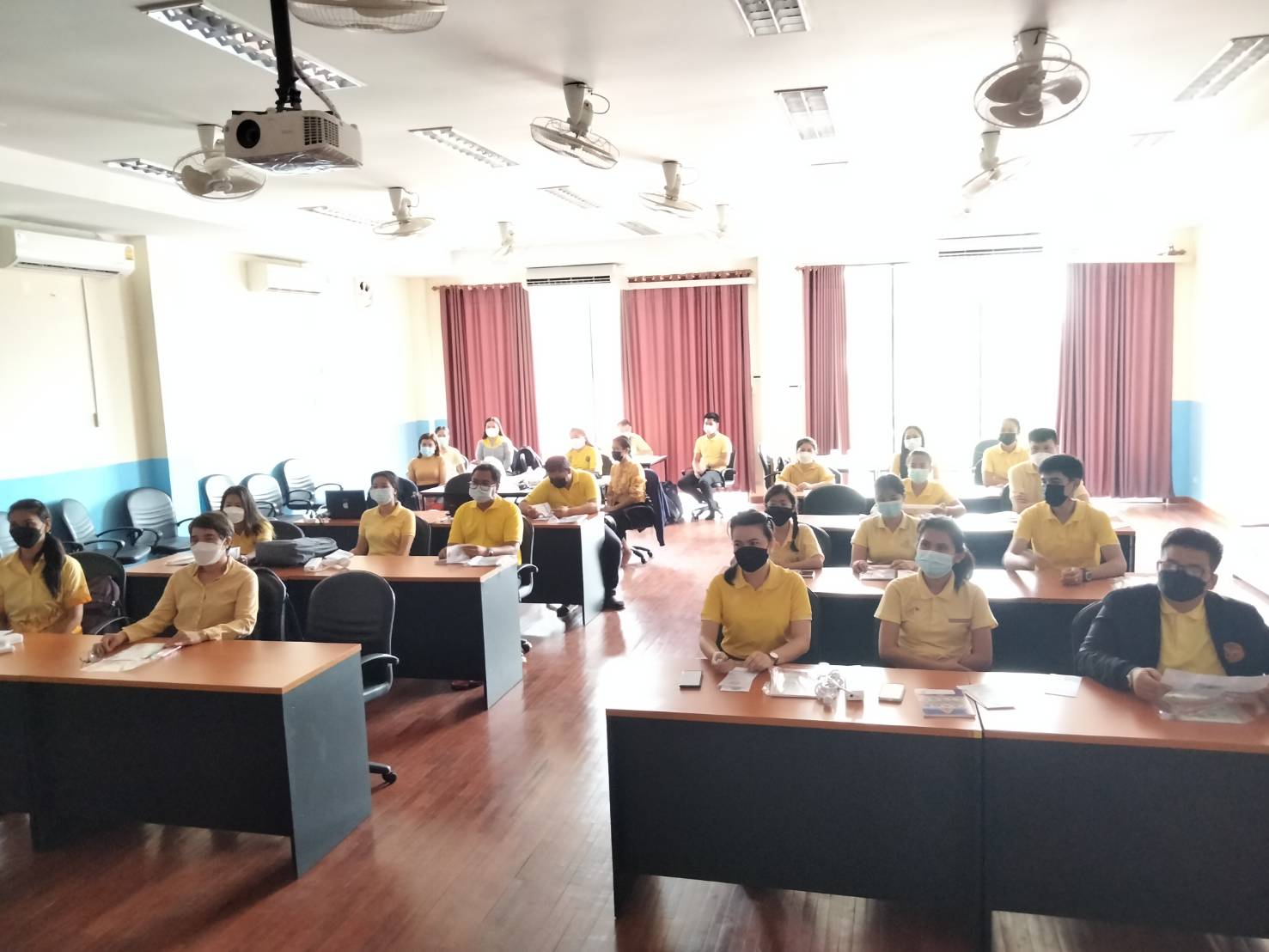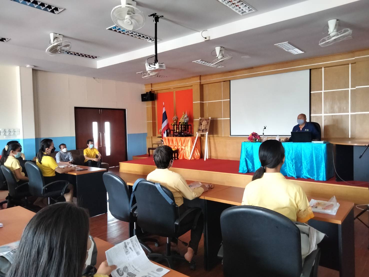 วันที่ 11 สิงหาคม 2564 นายสมจิตร์ พงษ์ภุมมา หัวหน้ากลุ่มบริหารจัดการด้านการประมง พร้อมด้วยนางสาวดาพร หนันทะ เจ้าพนักงานประมงปฏิบัติงาน ลงพื้นที่เพื่อปฏิบัติงานในการถ่ายทอดองค์ความรู้ด้านกฎหมายประมง ตามพระราชกำหนดการประมง พ.ศ. 2558 และที่แก้ไขเพิ่มเติม พ.ศ.2560 พื้นอำเภอนาวัง ณ ห้องประชุมองค์การบริหารส่วนตำบลวังทอง ตำบลวังทอง โดยมีเจ้าหน้าที่หน่วยงานองค์กรปกครองส่วนท้องถิ่นและผู้นำชุมชน เข้าร่วมการประชุม จำนวน 19 คน และพื้นที่อำเภอนากลาง ณ ห้องประชุมโรงเรียนอนุบาลเทศบาลตำบลกุดดินจี่ ตำบลกุดดินจี่ โดยมีเจ้าหน้าที่จากองค์กรปกครองส่วนท้องถิ่นและคณะครู เข้าร่วมการประชุม จำนวน 25 คน
