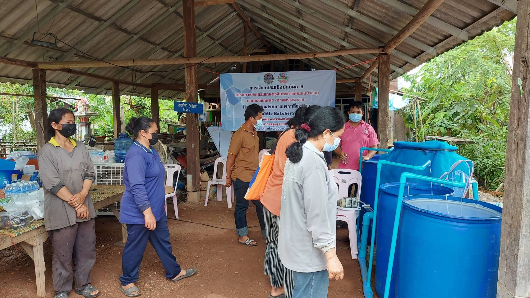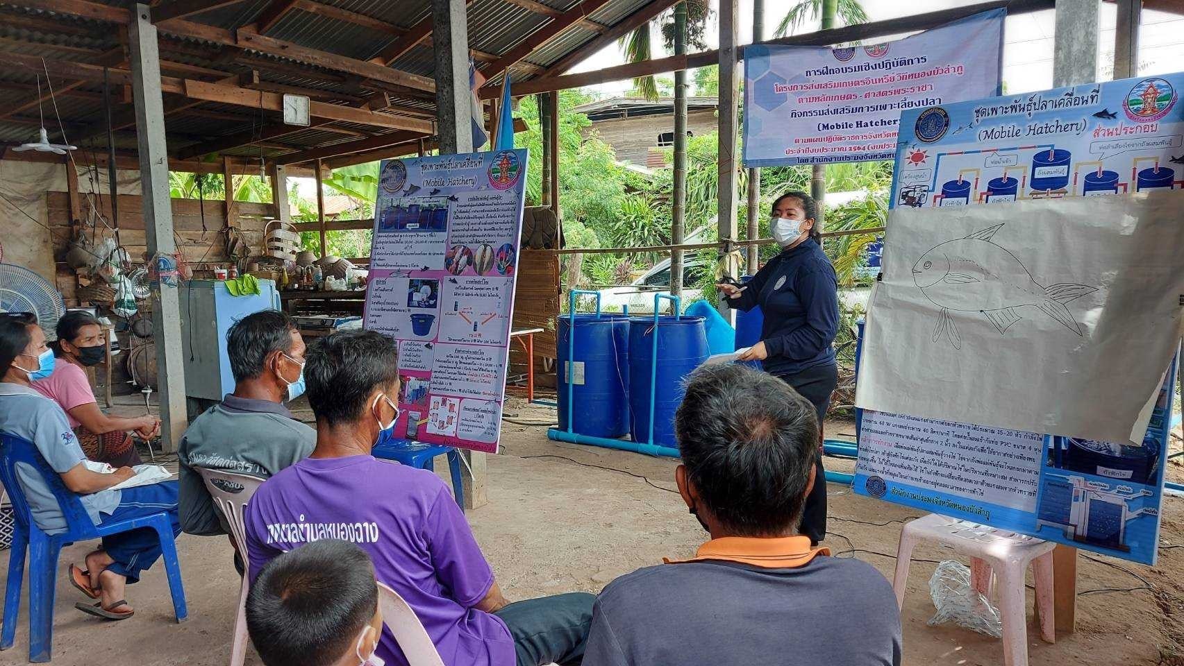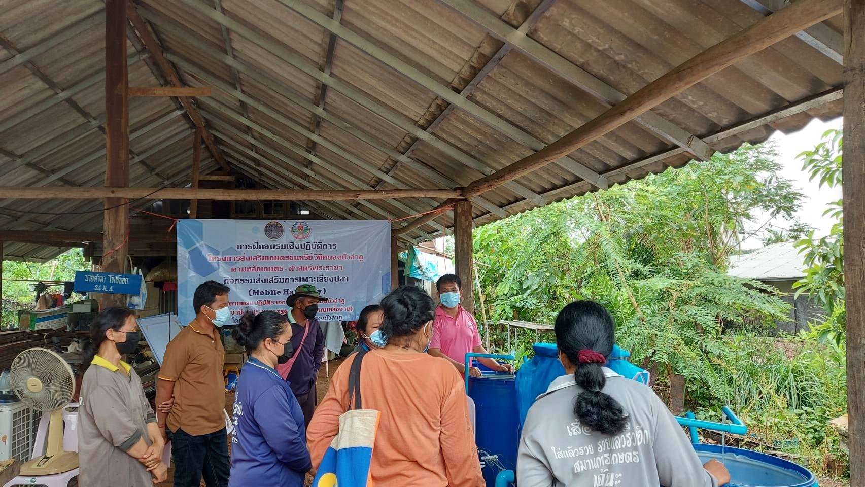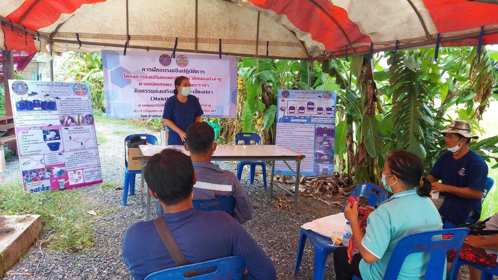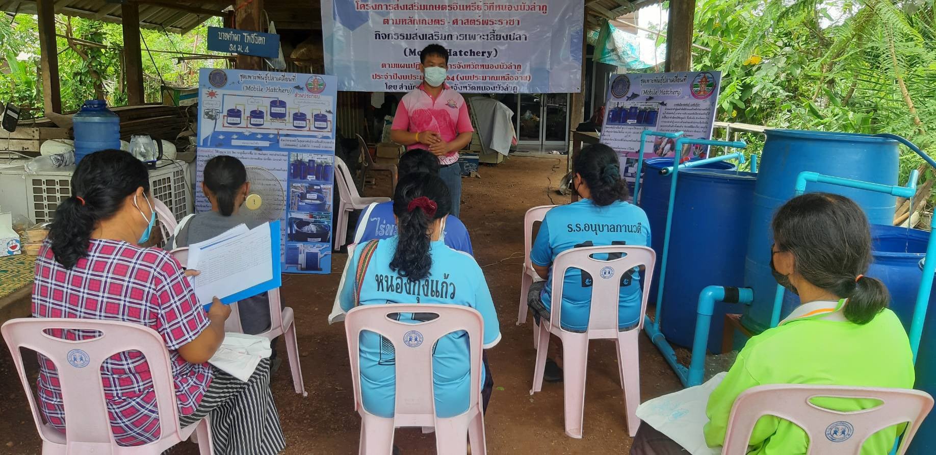 วันที่ 10 -11 สิงหาคม 2564 นางสาวทัศนีย์ สุนนท์ชัย หัวหน้ากลุ่มพัฒนาและส่งเสริมอาชีพการประมง พร้อมด้วยนางสาวมลฤดี ลิ้มสุวรรณ ประมงอำเภอศรีบุญเรือง และเจ้าหน้าที่กลุ่มพัฒนาและส่งเสริมอาชีพการประมง สำนักงานประมงจังหวัดหนองบัวลำภู จัดฝึกอบรมเชิงปฏิบัติการโครงการส่งเสริมเกษตรอินทรีย์ วิถีหนองบัวลำภู ตามหลักเกษตร - ศาสตร์พระราชา กิจกรรมส่งเสริมการเพาะเลี้ยงปลา (Mobile Hatchery) ตามแผนปฏิบัติราชการจังหวัดหนองบัวลำภู ประจำปีงบประมาณ 2564 (งบจังหวัดปี 2564) แก่กลุ่มเกษตรกรที่เข้าร่วมโครงการฯ ในพื้นที่อำเภอศรีบุญเรือง จำนวน 5 กลุ่ม ซึ่งมีเกษตรกรกลุ่มละ 10 ราย