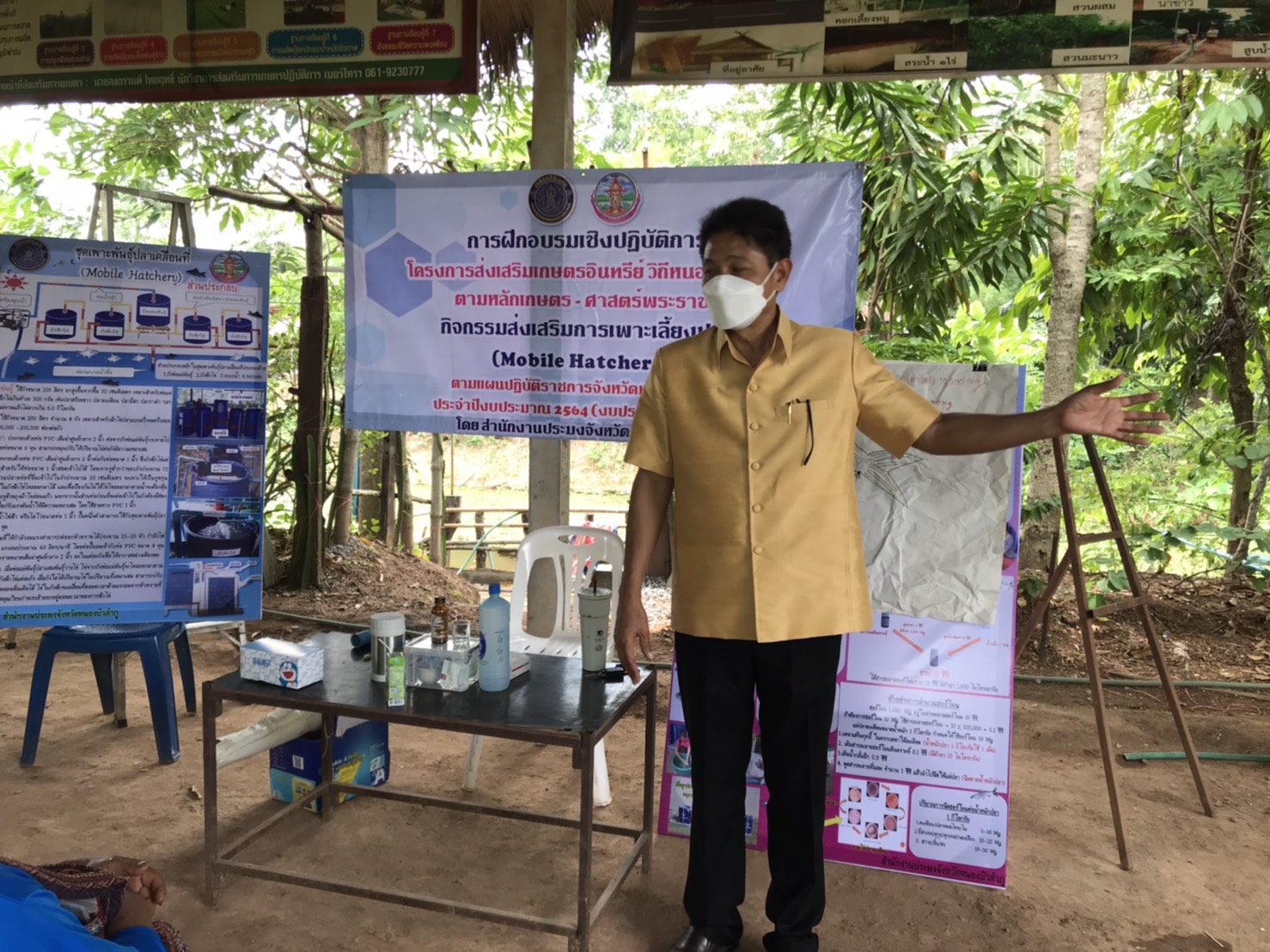 วันที่ 13 -14 สิงหาคม 2564 นายบุญหลาย กุลนารัตน์ ประมงจังหวัดหนองบัวลำภู พร้อมด้วยนางสาวทัศนีย์ สุนนท์ชัย หัวหน้ากลุ่มพัฒนาและส่งเสริมอาชีพการประมง นายสาโรจน์ สนิทไทย ประมงอำเภอสุวรรณคูหา และเจ้าหน้าที่กลุ่มพัฒนาและส่งเสริมอาชีพการประมง  จัดฝึกอบรมเชิงปฏิบัติการโครงการส่งเสริมเกษตรอินทรีย์ วิถีหนองบัวลำภู ตามหลักเกษตร - ศาสตร์พระราชา กิจกรรมส่งเสริมการเพาะเลี้ยงปลา (Mobile Hatchery) ตามแผนปฏิบัติราชการจังหวัดหนองบัวลำภู ประจำปีงบประมาณ 2564 (งบจังหวัดปี 2564) แก่กลุ่มเกษตรกรที่เข้าร่วมโครงการฯ ในพื้นที่อำเภอสุวรรณคูหา จำนวน 5 กลุ่ม ซึ่งมีเกษตรกรกลุ่มละ 10 ราย