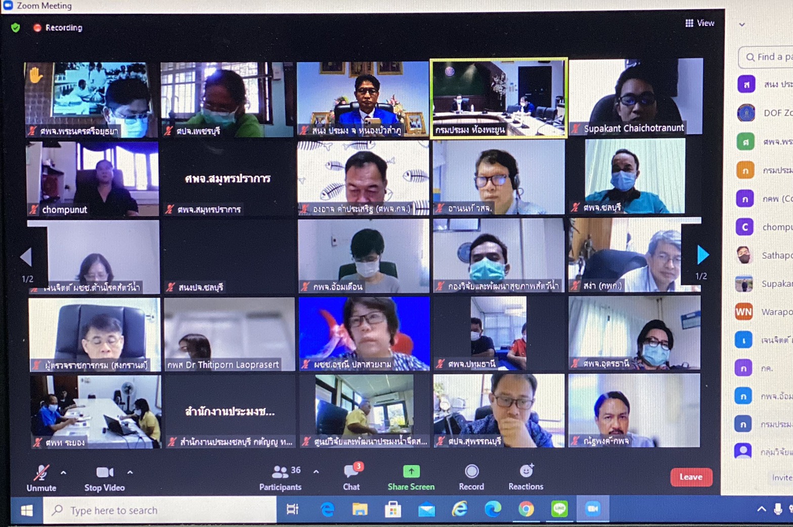 วันที่ 18 สิงหาคม 2564 เวลา 09.30 - 12.00 น. นายบุญหลาย กุลนารัตน์ ประมงจังหวัดหนองบัวลำภู ร่วมประชุมการพิจารณาแผนปฏิบัติงานโครงการ ระยะ 5 ปีที่ 7 (1 ตุลาคม พ.ศ. 2564 - 30 กันยายน พ.ศ. 2569) โดยในปีงบประมาณ 2565 ปฏิบัติงานในเขตพระราชฐาน ด้านการประมง ครั้งที่ 4/2564 ผ่านระบบประชุมออนไลน์ (Zoom Cloud Meetings) ณ สำนักงานประมงจังหวัดหนองบัวลำภู โดยมีนายเฉลิมชัย สุวรรณรักษ์ รองอธิบดีกรมประมง เป็นประธานการประชุม