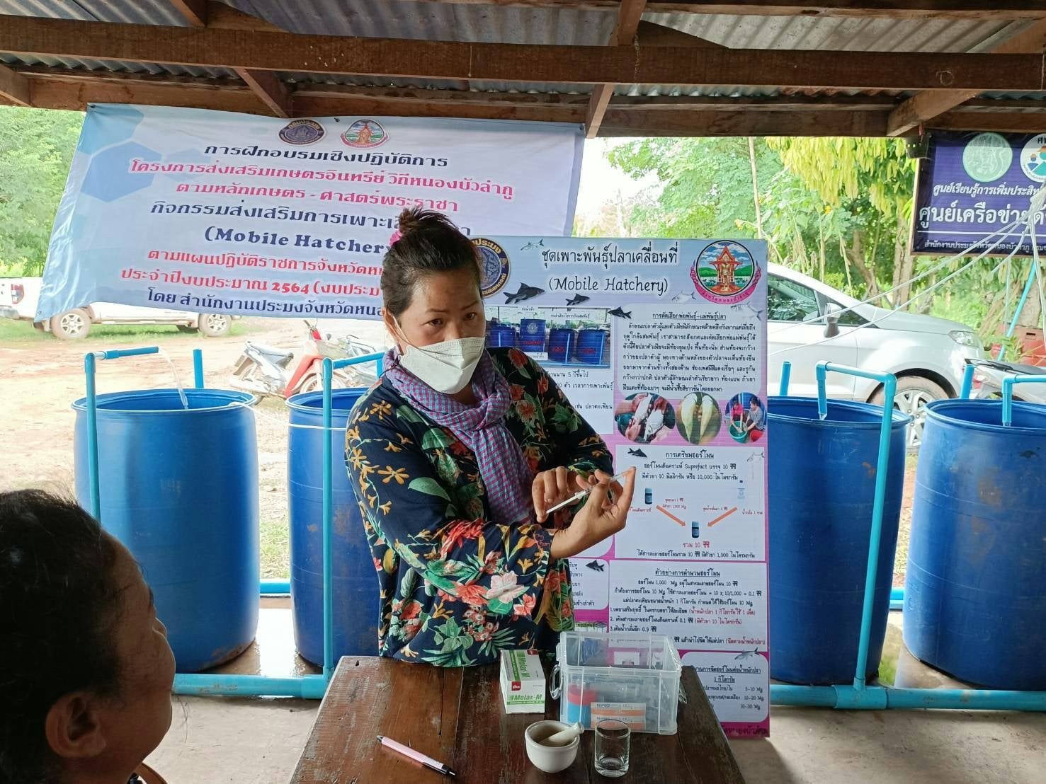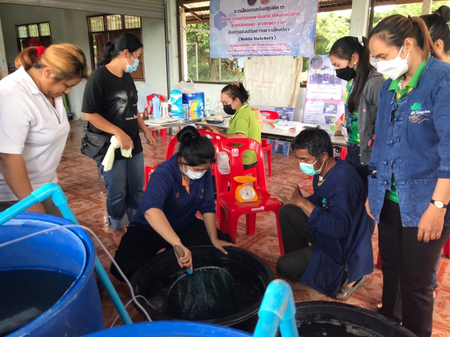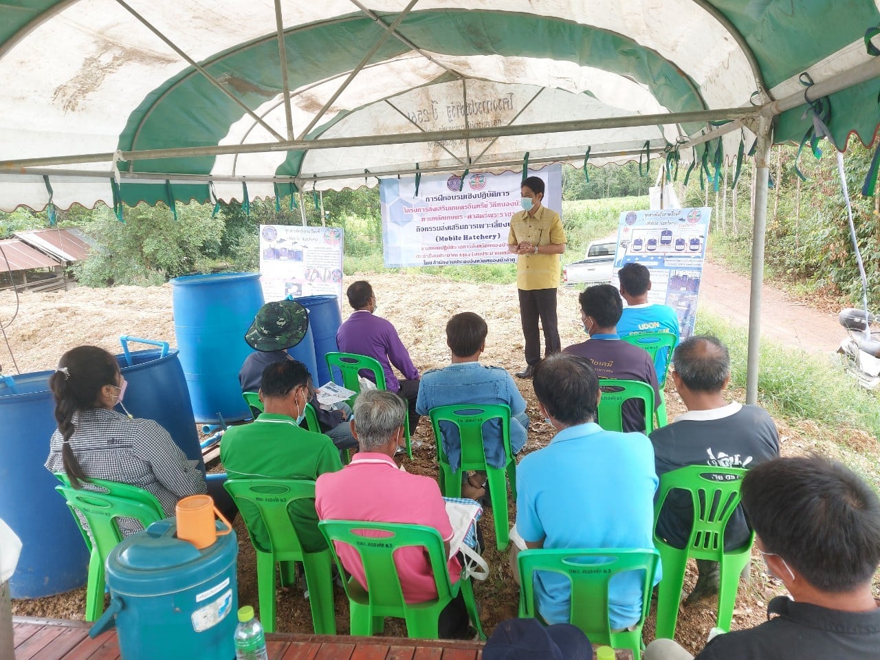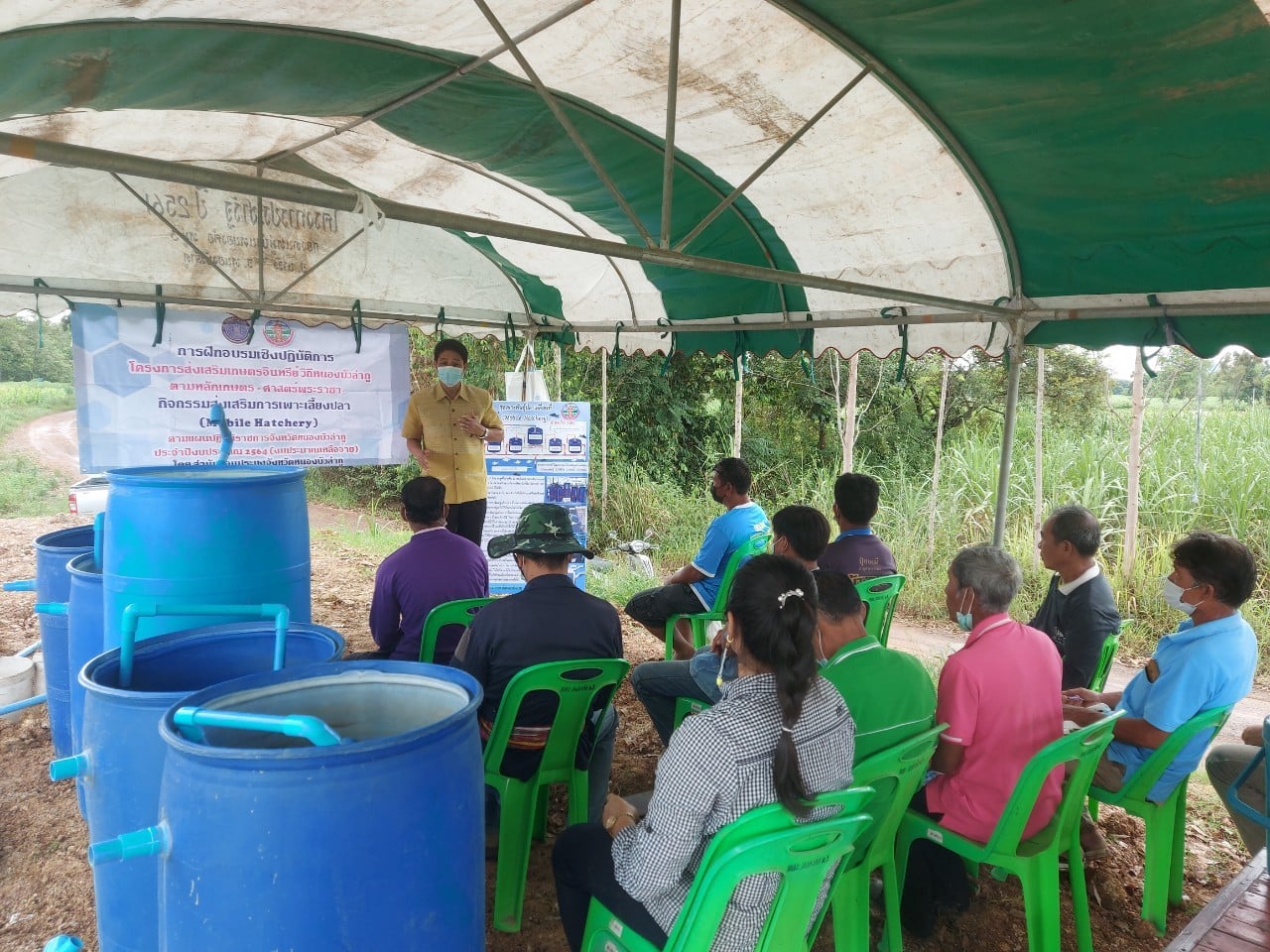 วันที่ 27 - 28 สิงหาคม 2564 กลุ่มพัฒนาและส่งเสริมอาชีพการประมง จัดฝึกอบรมเชิงปฏิบัติการโครงการส่งเสริมเกษตรอินทรีย์ วิถีหนองบัวลำภู ตามหลักเกษตร - ศาสตร์พระราชา กิจกรรมส่งเสริมการเพาะเลี้ยงปลา (Mobile Hatchery)