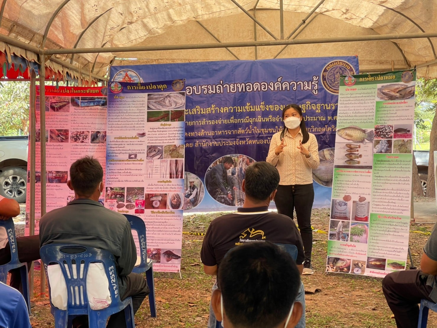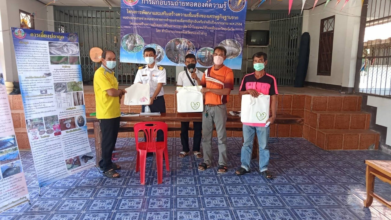วันที่ 25 ตุลาคม 2564 เวลา 08.30 น. นายบุญหลาย กุลนารัตน์ ประมงจังหวัดหนองบัวลำภู พร้อมด้วยนางสาวทัศนีย์ สุนนท์ชัย หัวหน้ากลุ่มพัฒนาและส่งเสริมอาชีพการประมง และเจ้าหน้าที่สำนักงานประมงจังหวัดหนองบัวลำภู จัดฝึกอบรมถ่ายทอดองค์ความรู้โครงการพัฒนาและเสริมสร้างความเข้มแข็งของเศรษฐกิจฐานราก งบประมาณรายจ่ายงบกลางรายการสำรองจ่ายเพื่อกรณีฉุกเฉินหรือจำเป็นปีงบประมาณ พ.ศ.2564 โครงการสร้างความมั่นคงทางด้านอาหารจากสัตว์น้ำในชุมชนให้รอดพ้นจากวิกฤตโควิด กิจกรรมการเลี้ยงปลาดุกในกระชังบก พร้อมทั้งสาธิตวิธีการใช้งาน ให้แก่กลุ่มเกษตรกรที่เข้าร่วมโครงการฯ ในพื้นที่อำเภอเมืองหนองบัวลำภู จำนวน 200 ราย ซึ่งมีแบ่งเกษตรกรออกเป็น 5 กลุ่มๆละ 40 ราย ทั้งนี้ได้มีการปฏิบัติตามมาตรการป้องกันการแพร่ระบาดของโรคไวรัสโควิด-19 ของทางจังหวัดหนองบัวลำภู อย่างเคร่งครัด