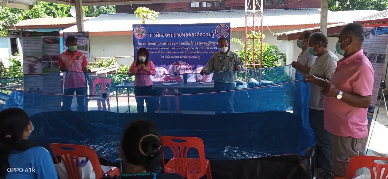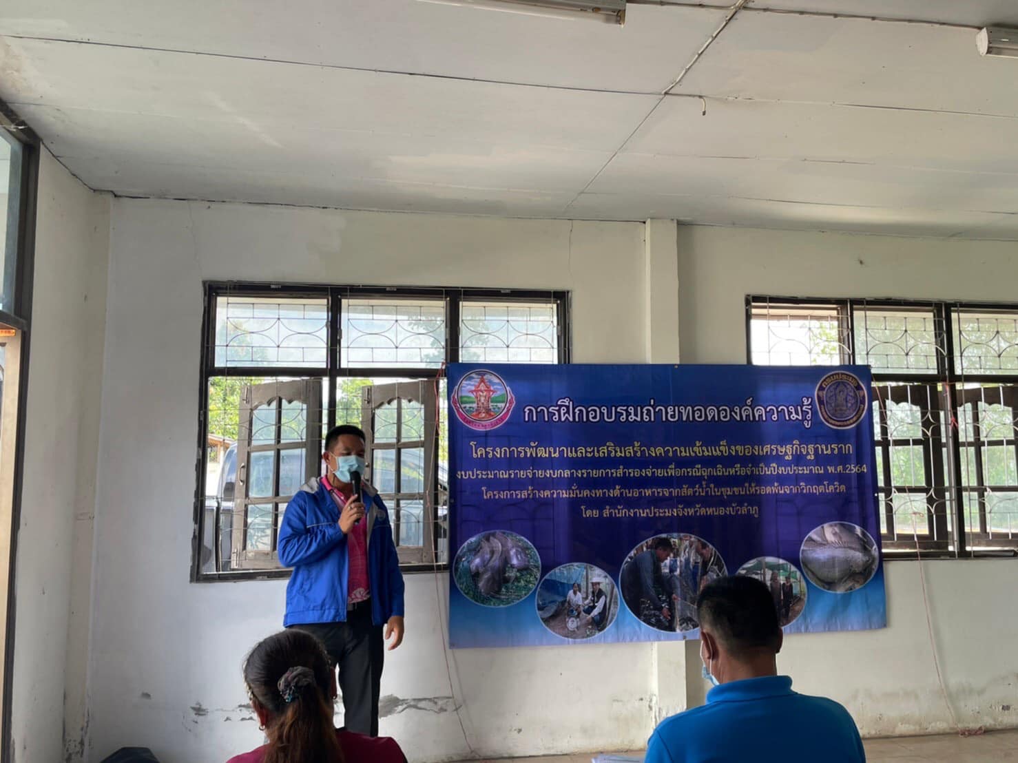 วันที่ 26 - 27 ตุลาคม 2564 เวลา 08.30 น. นายบุญหลาย กุลนารัตน์ ประมงจังหวัดหนองบัวลำภู พร้อมด้วยนางสาวทัศนีย์ สุนนท์ชัย หัวหน้ากลุ่มพัฒนาและส่งเสริมอาชีพการประมง ร่วมกับนายสาโรจน์ สนิทไทย ประมงอำเภอสุวรรณคูหา และเจ้าหน้าที่สำนักงานประมงจังหวัดหนองบัวลำภู จัดฝึกอบรมถ่ายทอดองค์ความรู้โครงการพัฒนาและเสริมสร้างความเข้มแข็งของเศรษฐกิจฐานราก งบประมาณรายจ่ายงบกลางรายการสำรองจ่ายเพื่อกรณีฉุกเฉินหรือจำเป็นปีงบประมาณ พ.ศ.2564 โครงการสร้างความมั่นคงทางด้านอาหารจากสัตว์น้ำในชุมชนให้รอดพ้นจากวิกฤตโควิด กิจกรรมการเลี้ยงปลาดุกในกระชังบก พร้อมทั้งสาธิตวิธีการใช้งาน ให้แก่กลุ่มเกษตรกรที่เข้าร่วมโครงการฯ ในพื้นที่อำเภอสุวรรณคูหา จำนวน 200 ราย ซึ่งมีแบ่งเกษตรกรออกเป็น 5 กลุ่มๆละ 40 ราย ทั้งนี้ได้มีการปฏิบัติตามมาตรการป้องกันการแพร่ระบาดของโรคไวรัสโควิด-19 ของทางจังหวัดหนองบัวลำภู อย่างเคร่งครัด
