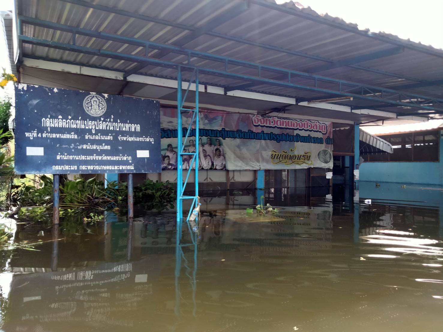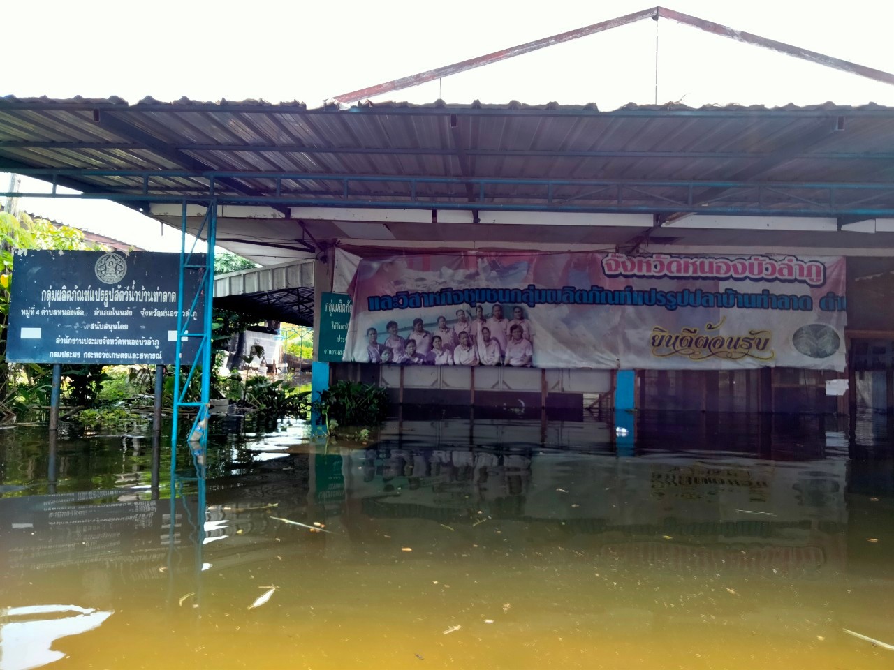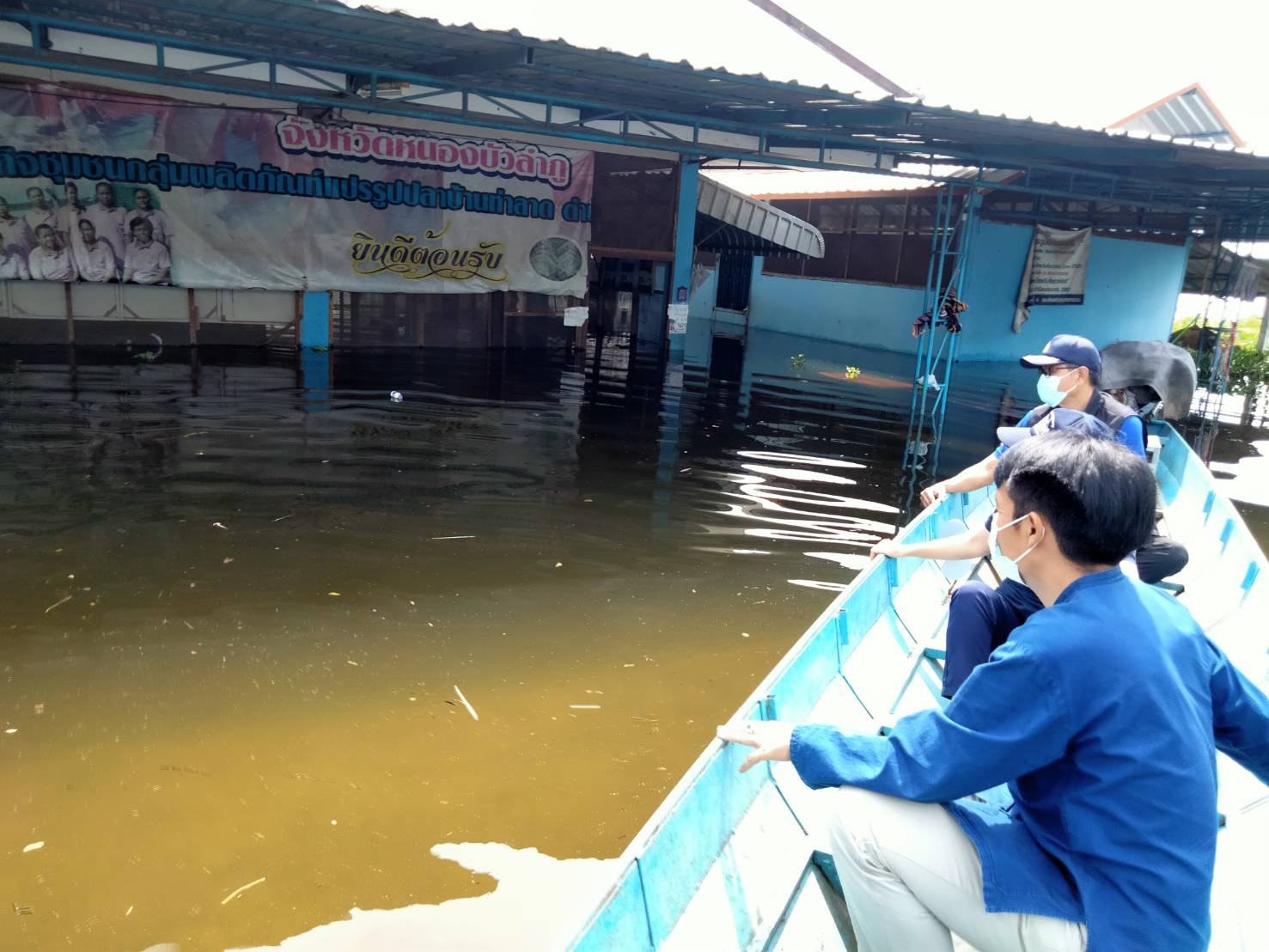 วันที่ 27 ตุลาคม 2564 นายบุญหลาย กุลนารัตน์ ประมงจังหวัดหนองบัวลำภู หัวหน้ากลุ่มบริหารและยุทธศาสตร์ ประมงอำเภอโนนสัง และเจ้าหน้าที่จากสำนักงานประมงจังหวัด ตรวจเยี่ยมให้กำลังใจกลุ่มแปรรูปสัตว์น้ำบ้านท่าลาด ตำบลหนองเรือ อำเภอโนนสัง จังหวัดหนองบัวลำภู โดยมีที่ทำการกลุ่มตั้งอยู่ริมอ่างเก็บน้ำเขื่อนอุบลรัตน์ ประสบภัยน้ำท่วมอาคารสูงประมาณ 1 เมตร และได้ขนย้ายอุปกรณ์มาผลิตแปรรูปสัตว์น้ำชั่วคราวอยู่บริเวณถนนภายในหมู่บ้านเพื่อรอระดับน้ำลด และตรวจเยี่ยมให้กำลังใจกลุ่มแปรรูปสัตว์น้ำบ้านห้วยบง ตำบลโนนเมือง อำเภอโนนสัง จำนวน 3 กลุ่ม ซึ่งยังไม่ได้รับผลกระทบจากน้ำท่วมดังกล่าว