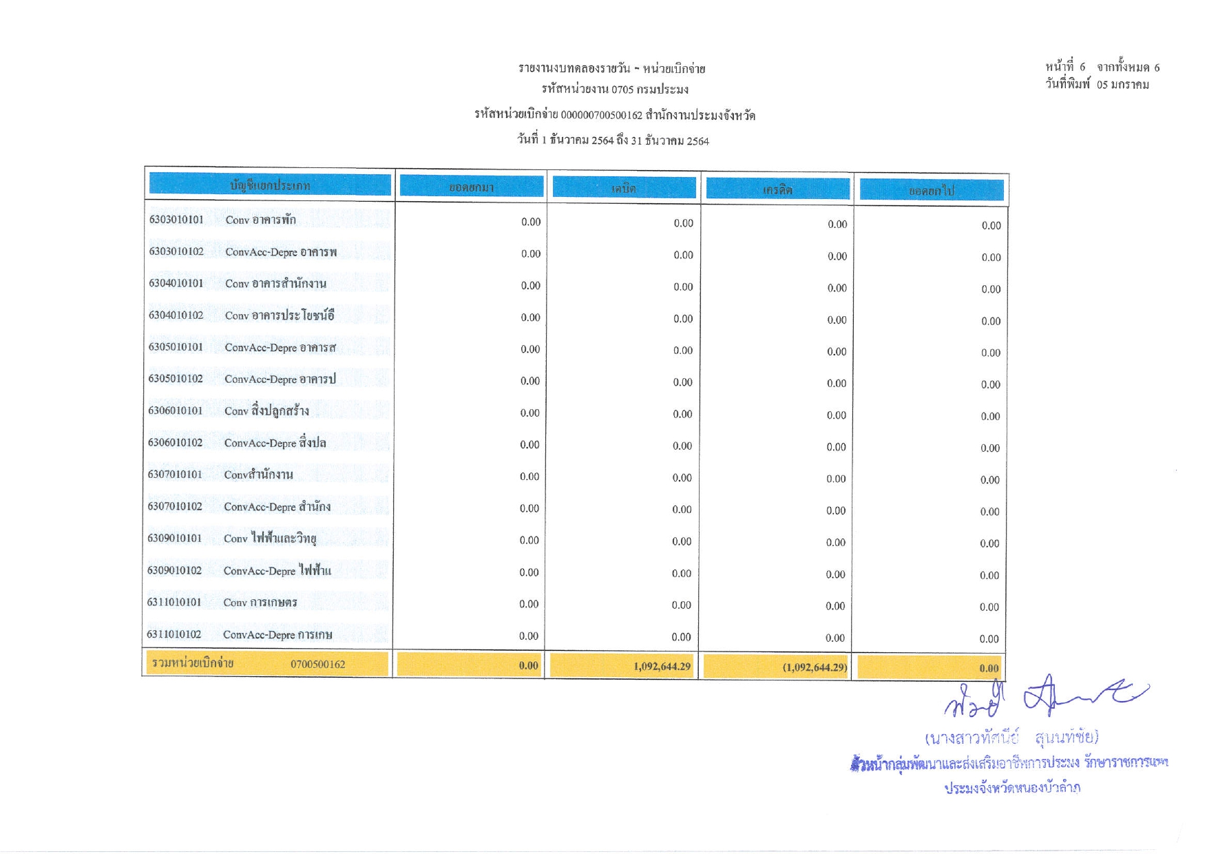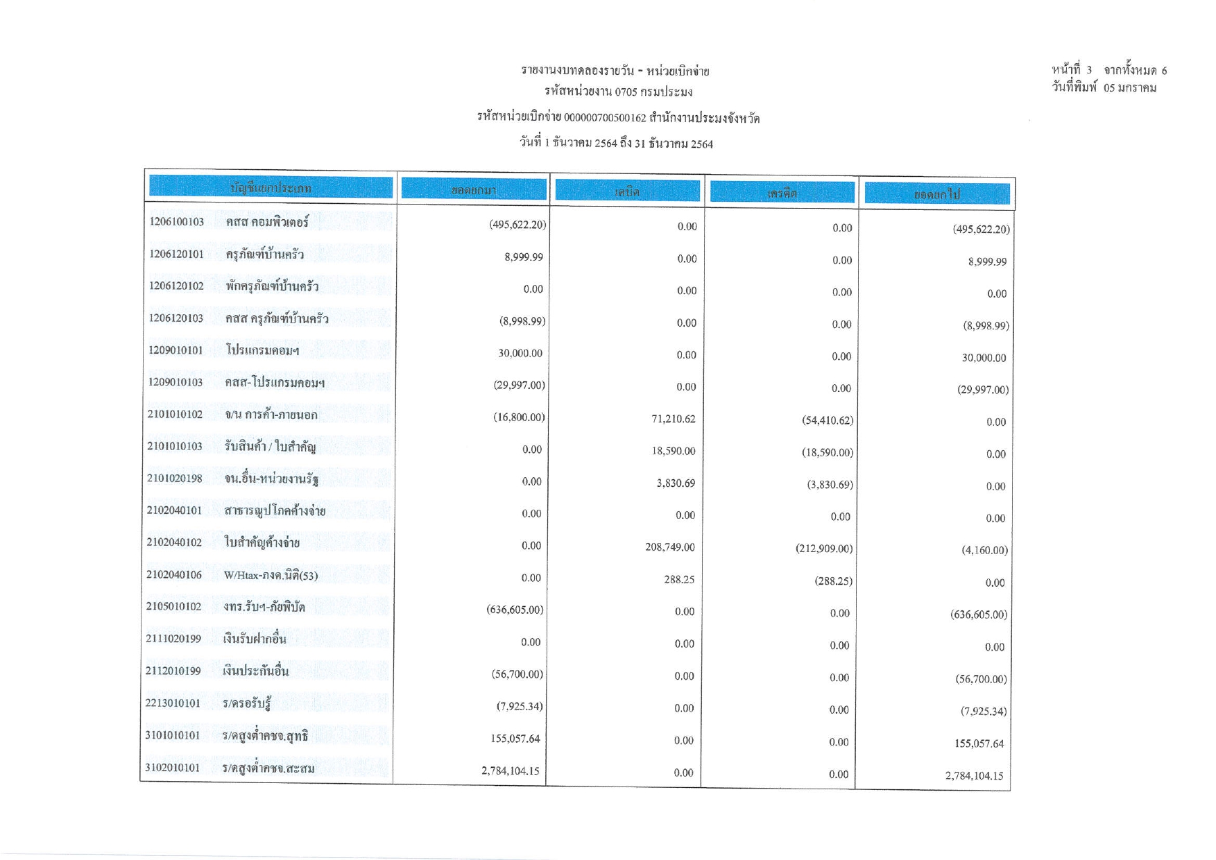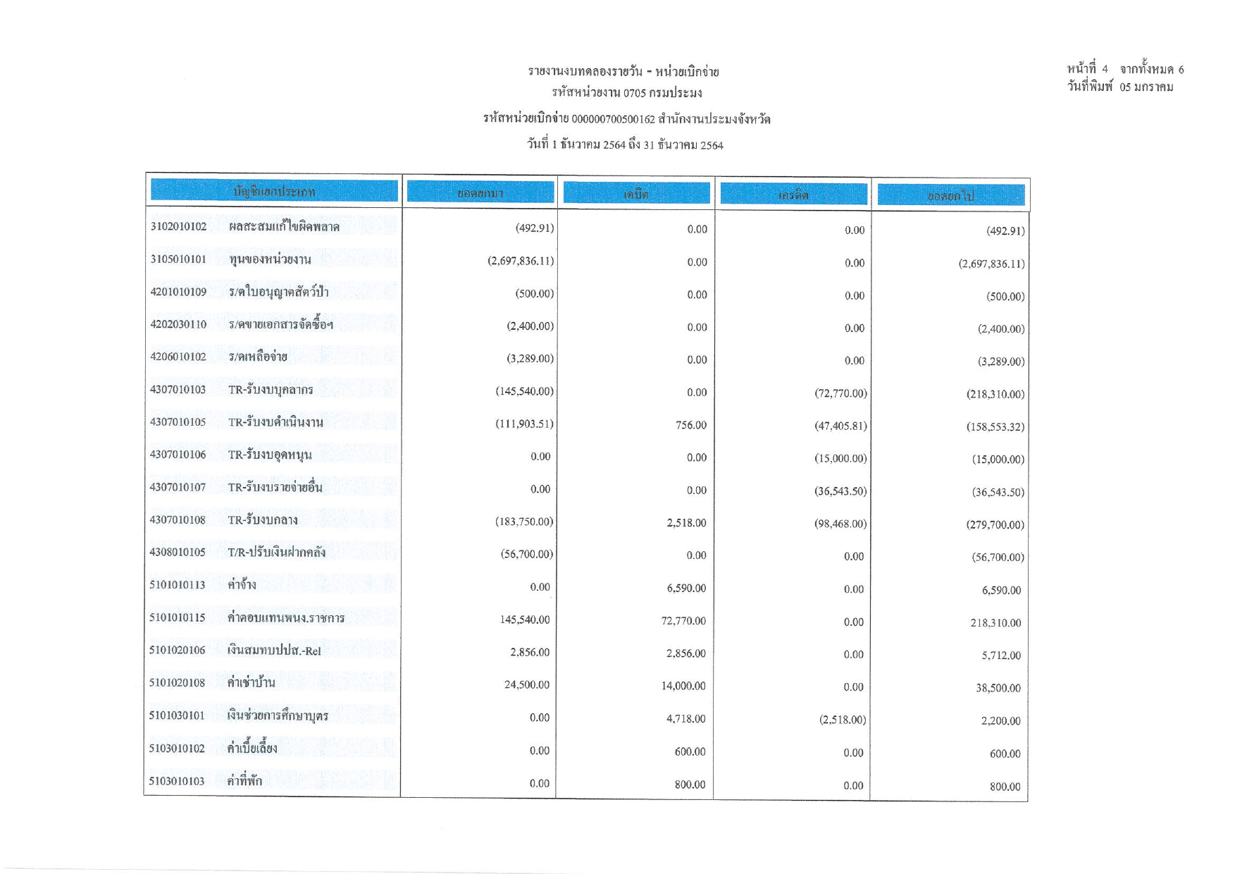 งบทดลอง ประจำเดือน ธันวาคม 2564