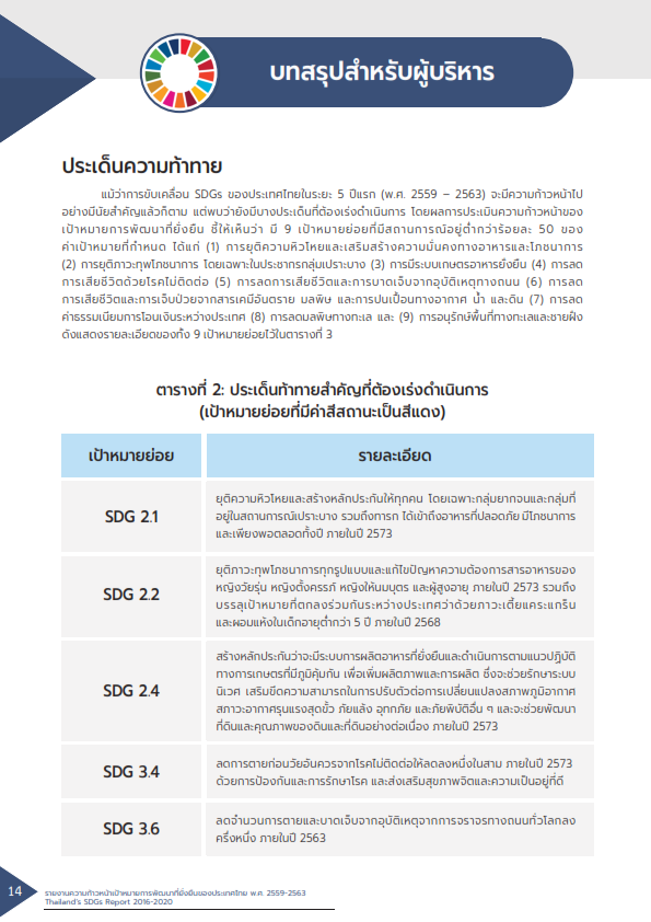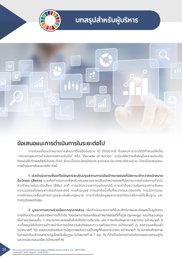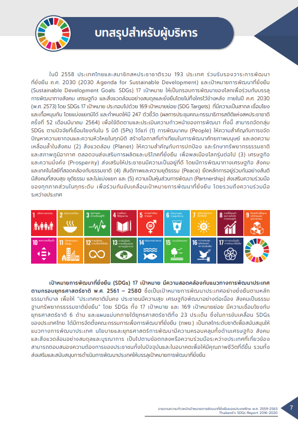 รายงานคววามก้ามหน้าเป้าหมายการพัฒนาที่ยั่งยืนของประเทศไทย พ.ศ. ๒๕๕๙-๒๕๖๓