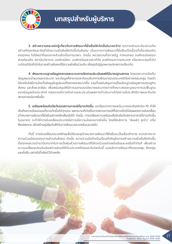 รายงานคววามก้ามหน้าเป้าหมายการพัฒนาที่ยั่งยืนของประเทศไทย พ.ศ. ๒๕๕๙-๒๕๖๓..คลิก