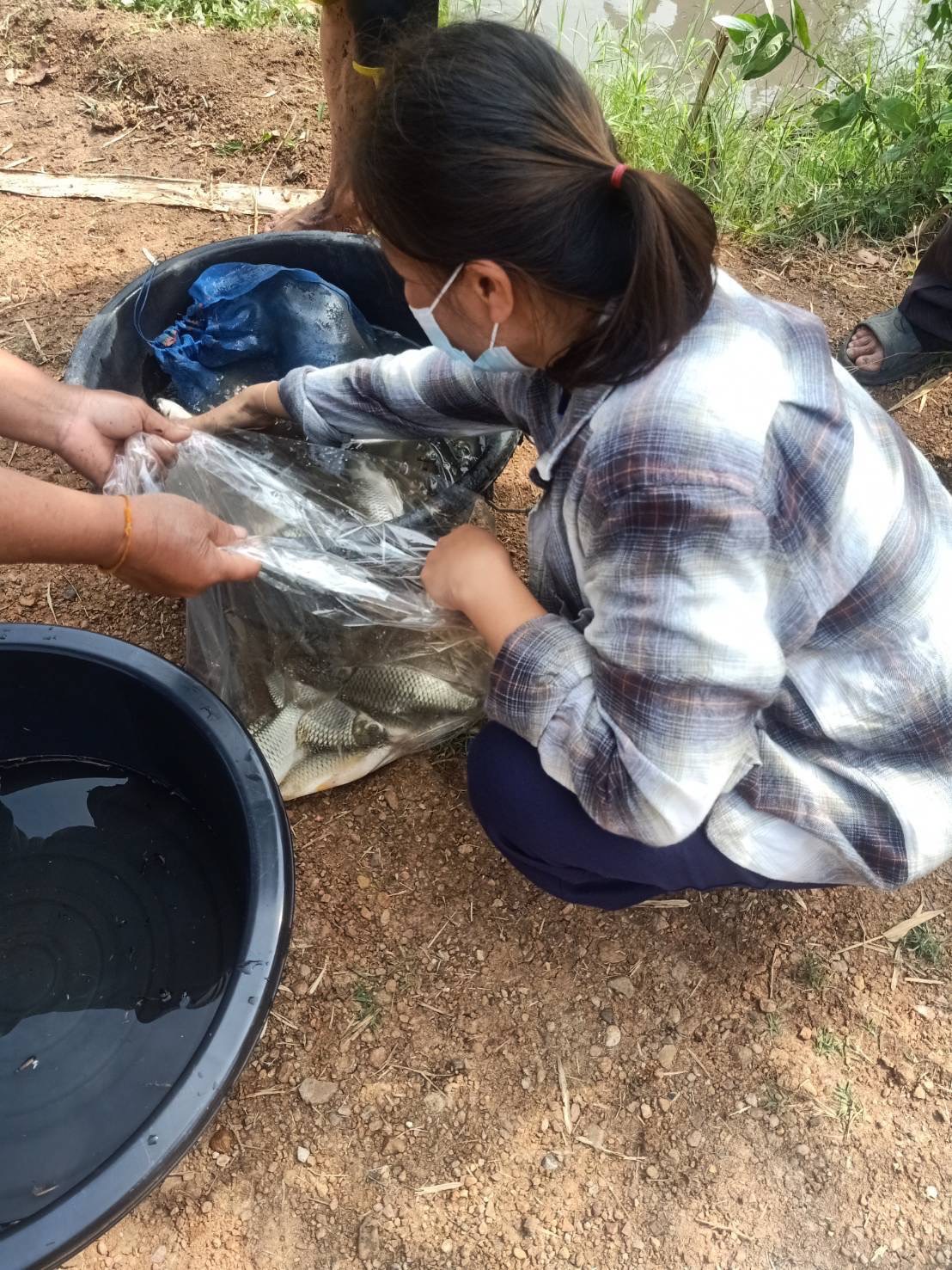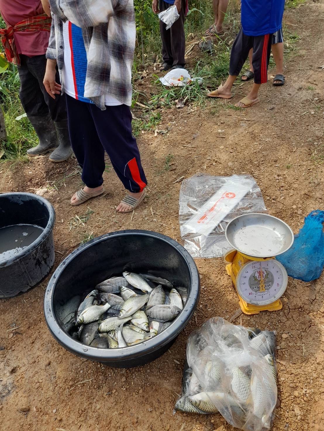 วันที่ 17 มีนาคม 2565 นายเมธา ตาลเหล็ก ประมงอำเภอนากลาง ปฏิบัติงานติดตามการจับผลผลิตและการจำหน่ายผลผลิตสินค้าของแปลงใหญ่ปลาตะเพียนขาว (แปลงปี 2564)