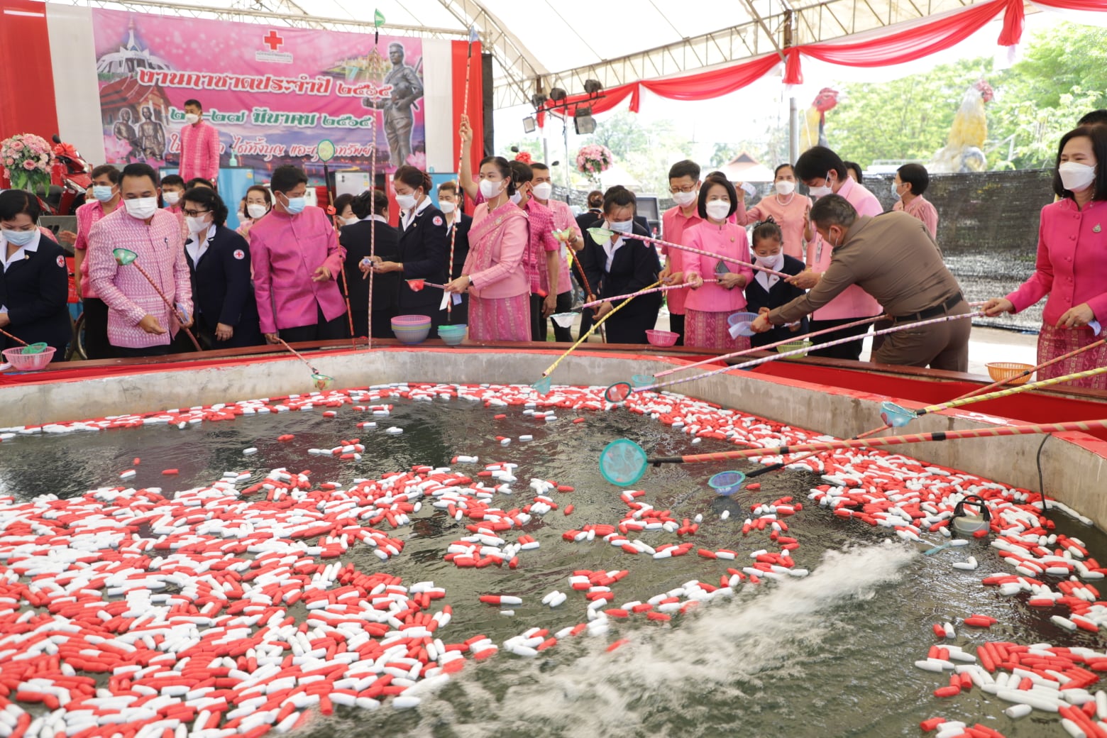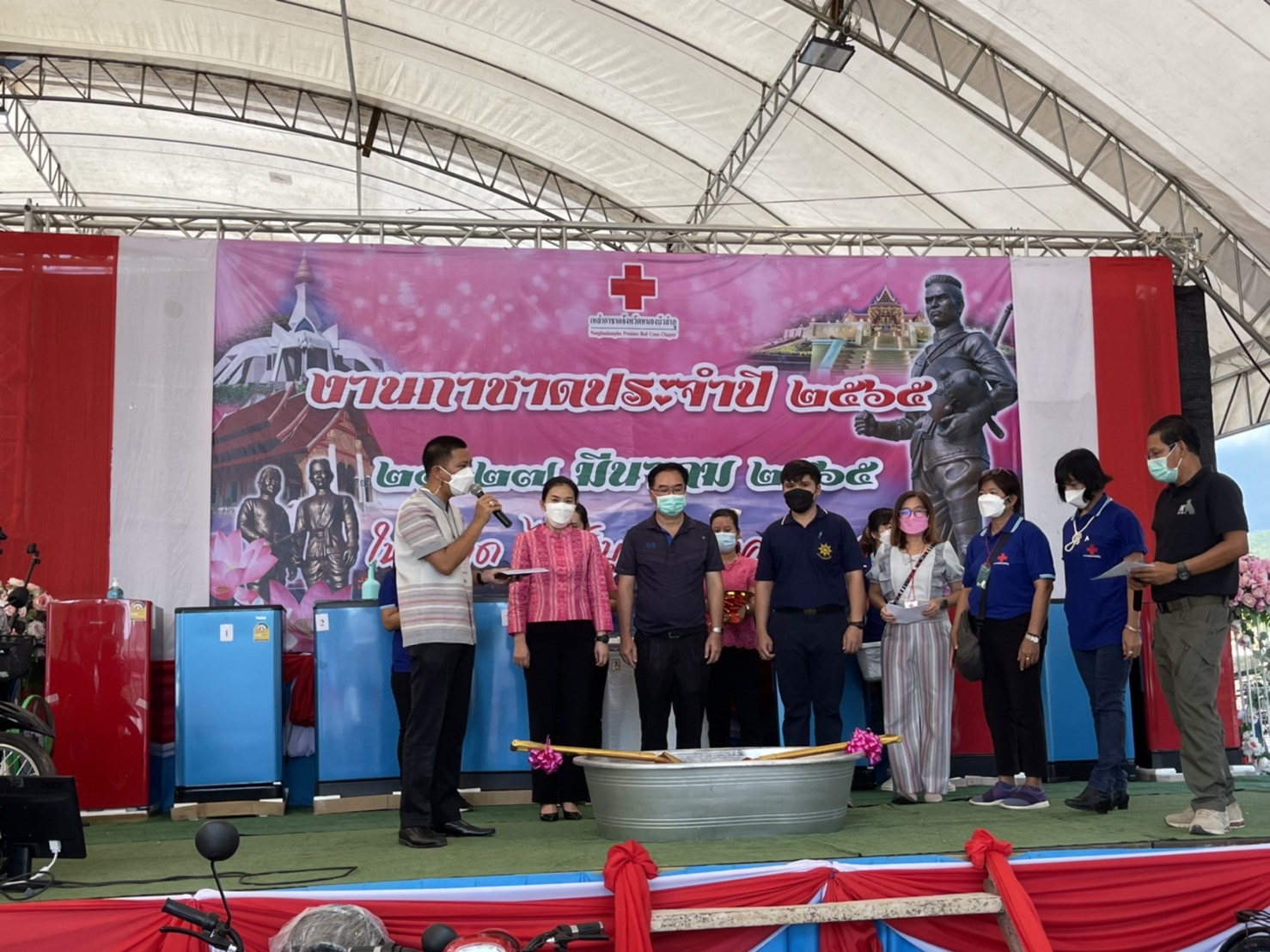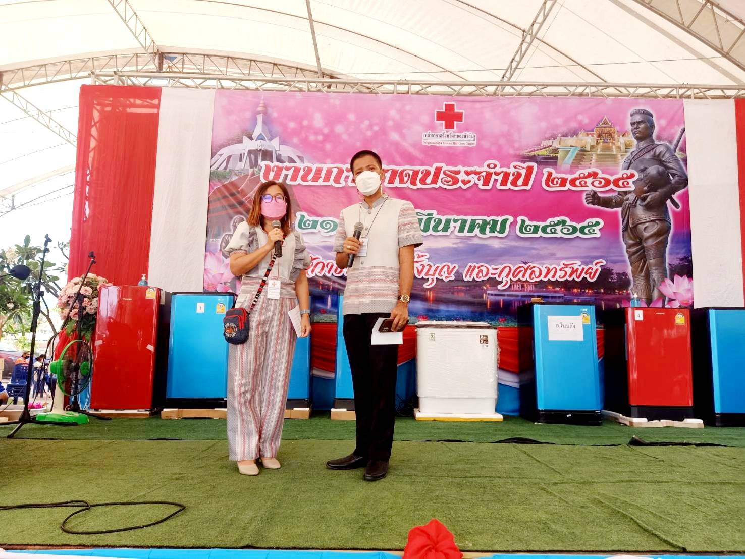 วันที่ 22 มีนาคม 2565 เวลา 16.00 - 22.00 น. นางถนอมขวัญ นอศรี หัวหน้ากลุ่มบริหารและยุทธศาสตร์ พร้อมด้วย เจ้าหน้าที่จากสำนักงานประมงจังหวัด ร่วมเป็นเจ้าหน้าที่ประจำมัจฉากาชาดในงาน “สักการะสมเด็จพระนเรศวรมหาราช”จังหวัดหนองบัวลำภู ประจำปี 2565 โดยจัดขึ้นระหว่างวันที่ 21 - 27 มีนาคม พ.ศ. 2565 โดยผู้ที่เข้ามาเที่ยวงาน ต้องปฏิบัติตามมาตรการในการป้องกันการแพร่ระบาดของโรคโควิด-19 แสดงการฉีดวัคซีนครบ และเว้นระยะห่าง พร้อมสวมหน้ากากตลอดเวลาในการเที่ยวงาน และให้ตั้งจุดบริการเจลแอลกอฮอล์ล้างมือ
