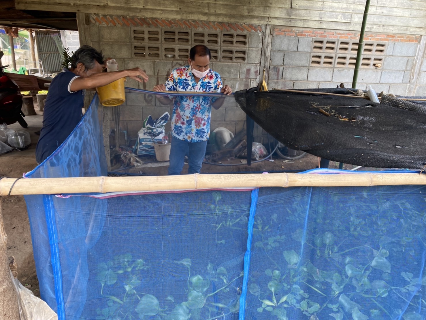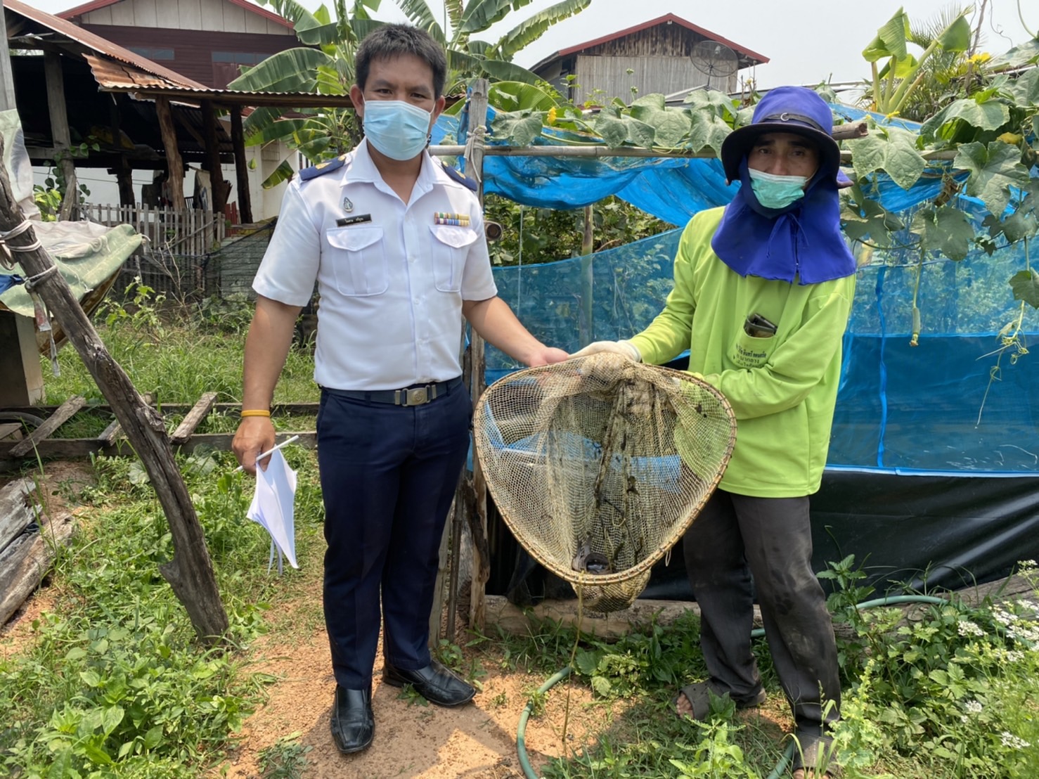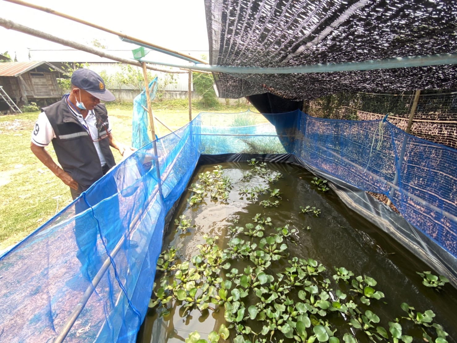 วันที่ 11 เมษายน 2565 นายไพศาล ศรีคูณ นักวิชาการประมง ปฏิบัติงานติดตามการดำเนินกิจกรรมการเลี้ยงปลาดุกในกระชังบก ของเกษตรกรที่เข้าร่วมโครงการพัฒนาและเสริมสร้างความเข้มแข็งของเศรษฐกิจฐานราก ประจำปีงบประมาณ 2564