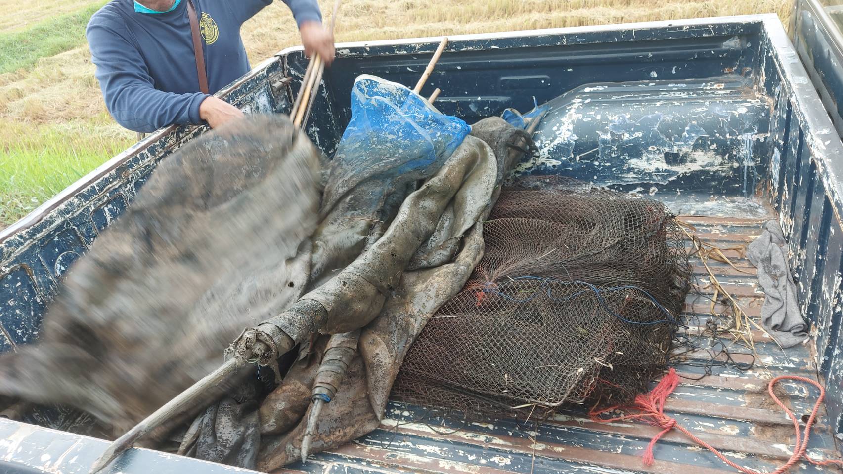 2. รื้อถอนทำลายเครื่องมือลอบพับได้หรือไอ้โง่ จำนวน 2 ชุด