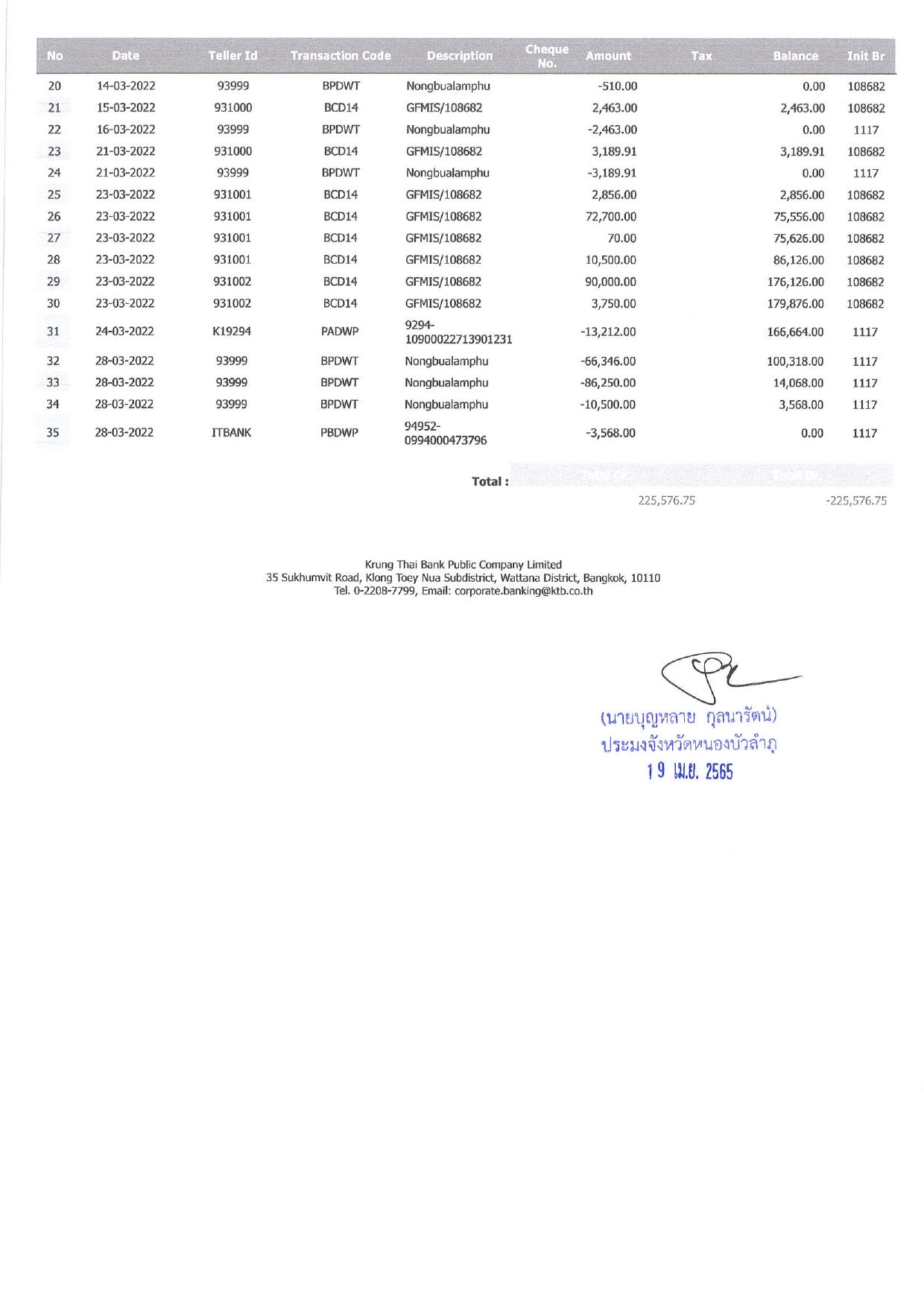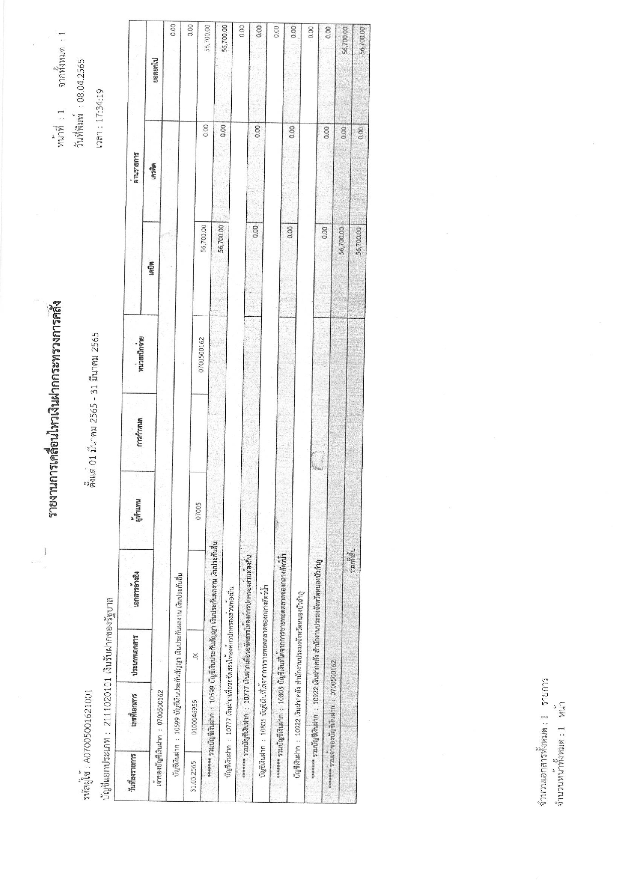 การเปิดเผยแสดงรายละเอียดประกอบรายการบัญชีที่สำคัญประกอบงบทดลอง ประจำเดือน มีนาคม 2565