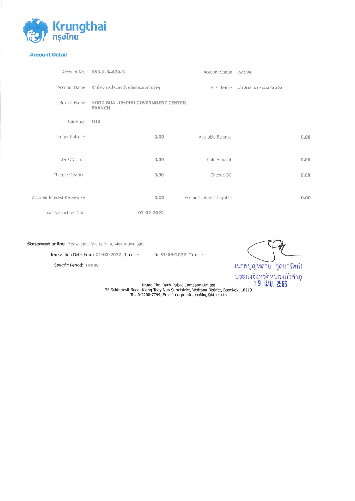รายละเอียด เลขที่ 100 หมู่ที่ 10 บ้านหว้าทอง ตำบลหนองภัยศูนย์ อำเภอเมืองหนองบัวลำภู จังหวัดหนองบัวลำภู 39000 เลขประจำตัวผู้เสียภาษี 0-9940-00473-79-6    email  nongbuafpo@gmail.com  โทรศัพท์ 042378471  FAX 042378471  แฟนเพจ แฟนเพจ