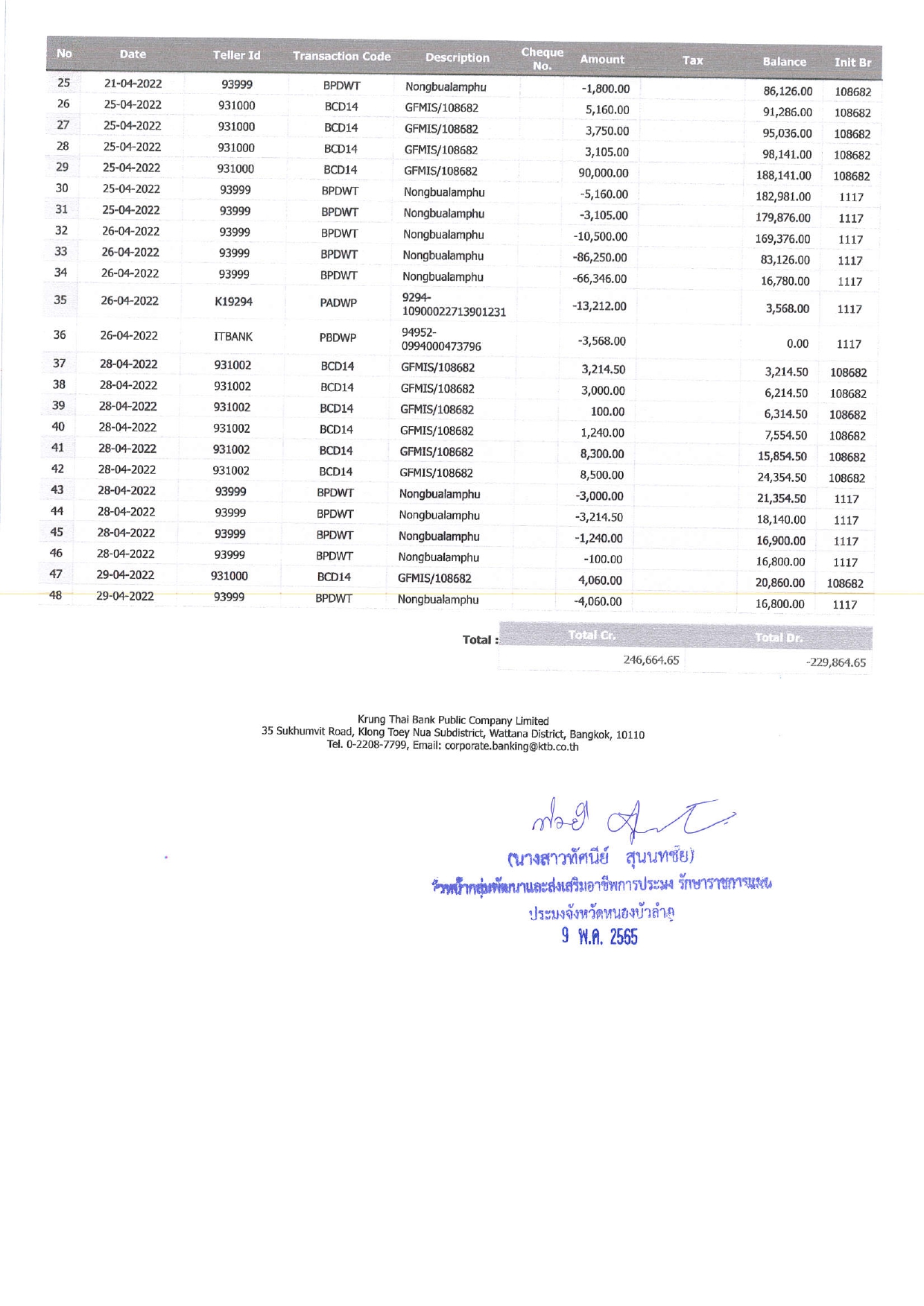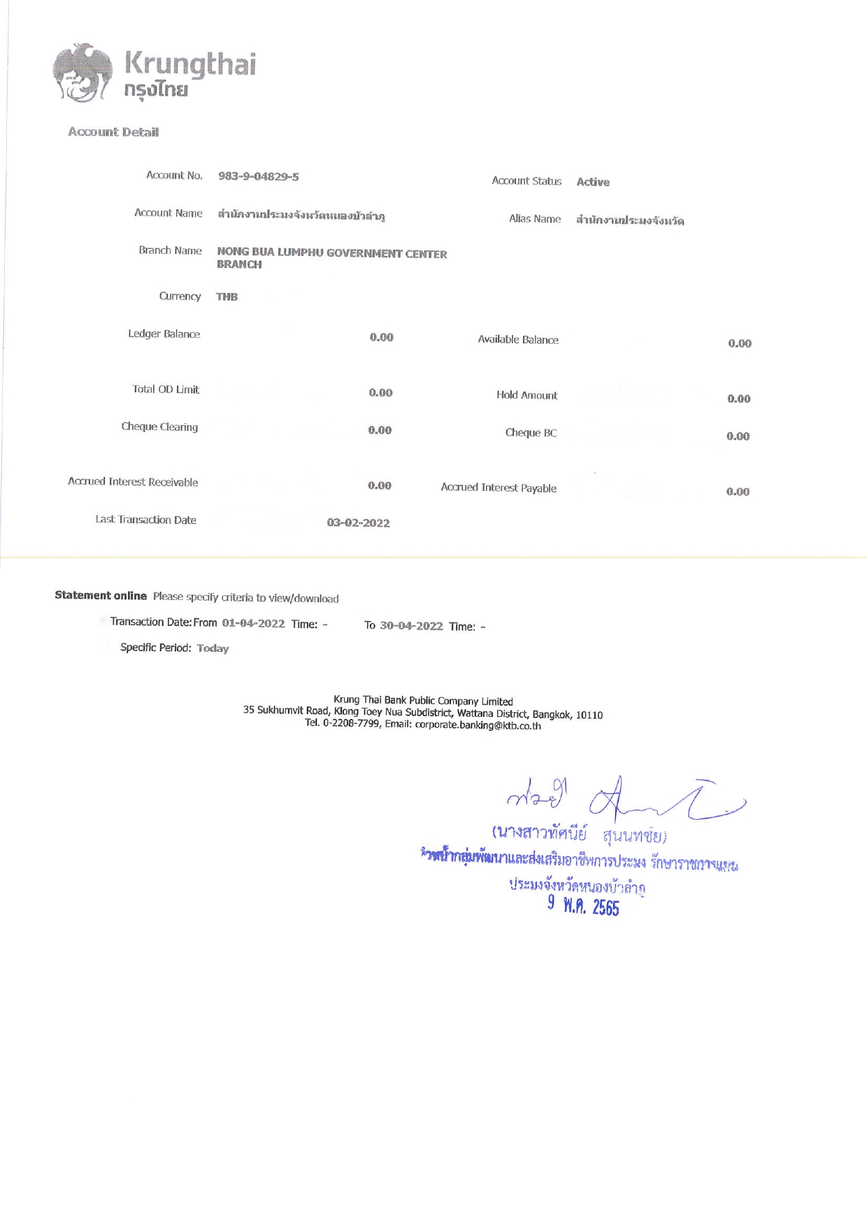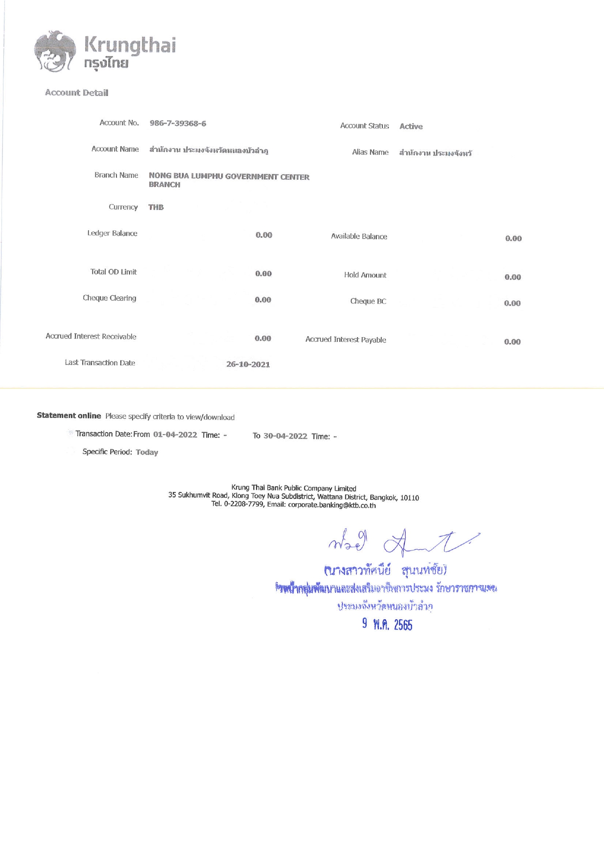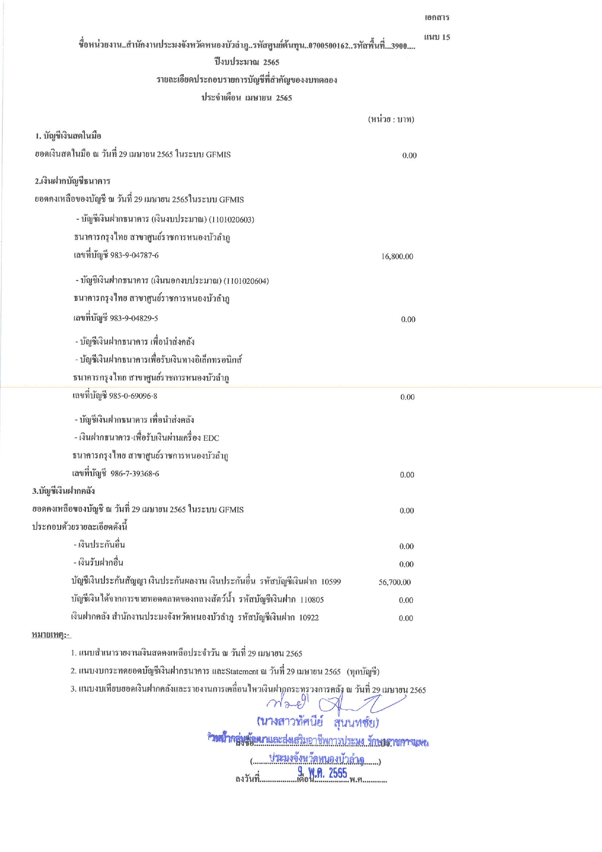 การเปิดเผยแสดงรายละเอียดประกอบรายการบัญชีที่สำคัญประกอบงบทดลอง ประจำเดือน เมษายน 2565
