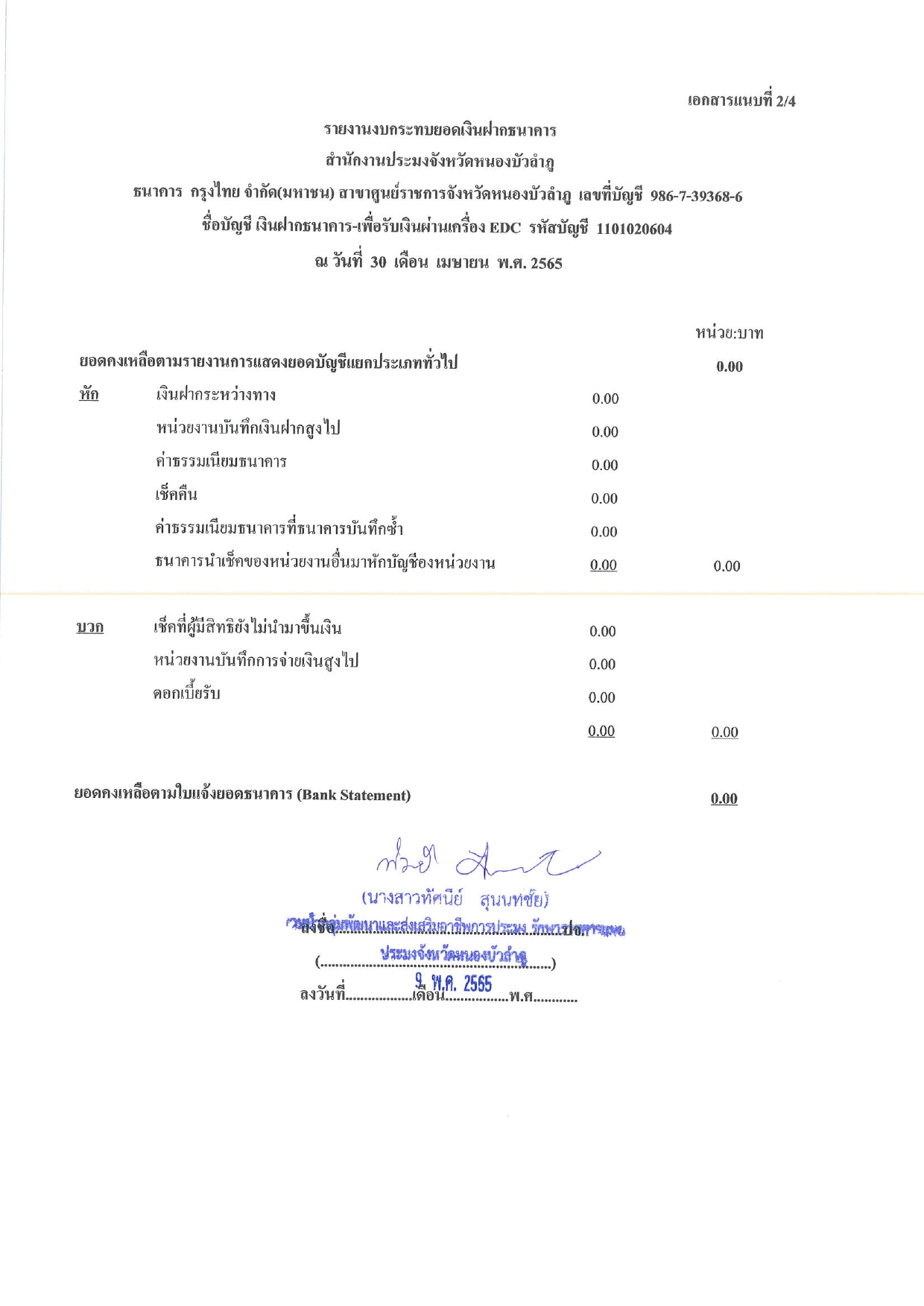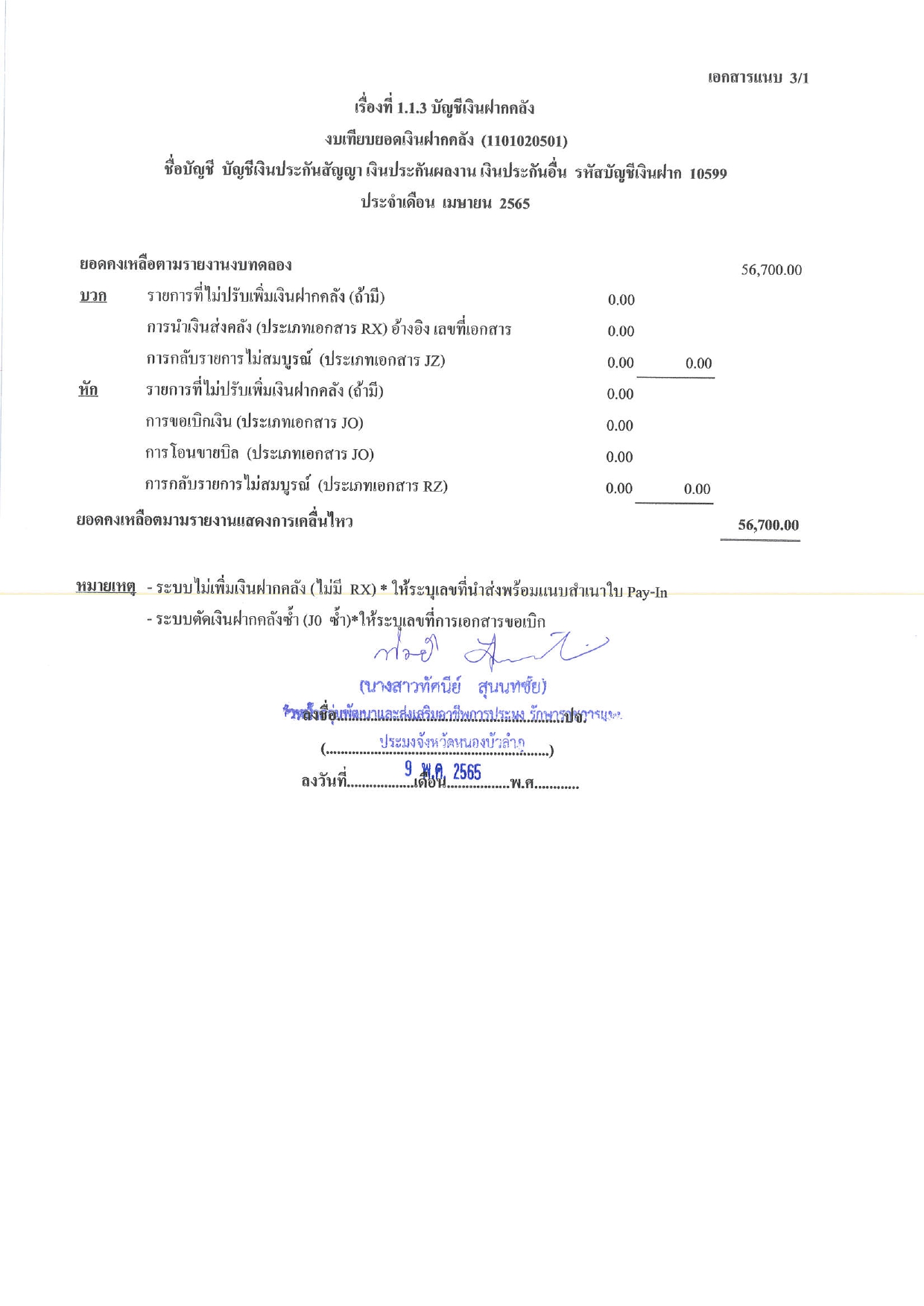 การเปิดเผยแสดงรายละเอียดประกอบรายการบัญชีที่สำคัญประกอบงบทดลอง ประจำเดือน เมษายน 2565..คลิก