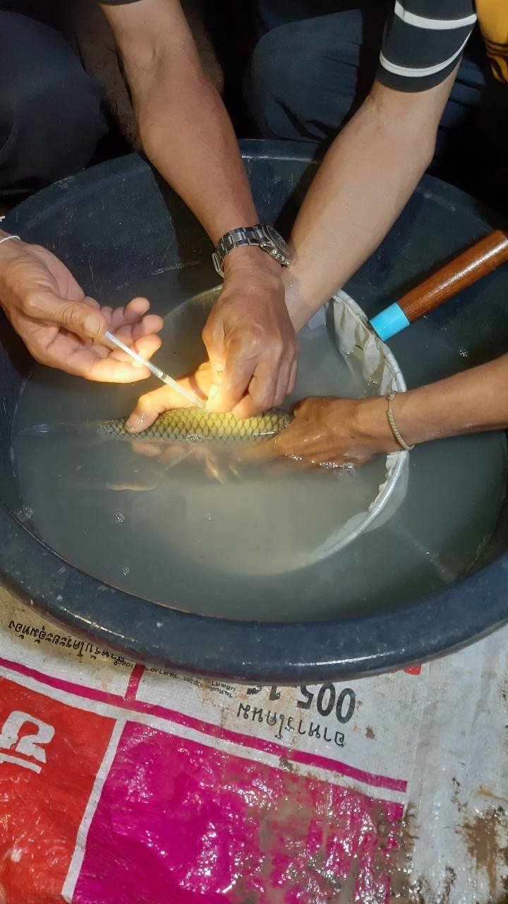 วันที่ 20-21 พฤษภาคม 2565 นายวิทยา ประเสริฐสังข์ ประมงอำเภอโนนสังและนายธีรศักดิ์ ศรีร่องหอย นักวิชาการประมงปฏิบัติการ ปฏิบัติการขยายผลดำเนินงานการเพาะพันธุ์ปลาตะเพียนด้วยชุดเพาะพันธุ์ปลาเคลื่อนที่