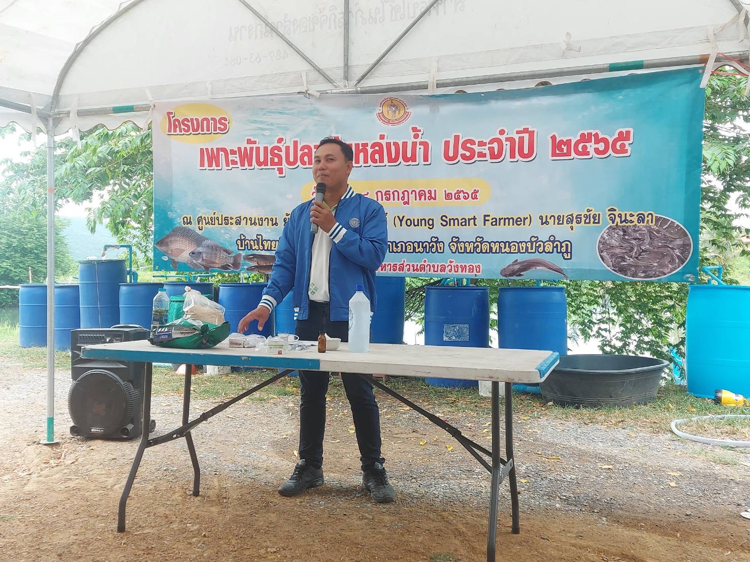นายเมธา ตาลเหล็ก ประมงอำเภอนากลาง  ร่วมกับองค์การบริหารส่วนตำบลวังทอง ทบทวนและขยายผลการดำเนินงานเพาะพันธุ์ปลาตะเพียนด้วยชุดเพาะพันธุ์ปลาเคลื่อนที่ ตามโครงการส่งเสริมเกษตรอินทรีย์ วิถีหนองบัวลำภู ตามหลักเกษตร - ศาสตร์พระราชา แผนปฏิบัติราชการจังหวัดหนองบัวลำภู ประจำปีงบประมาณ 2564 กิจกรรมส่งเสริมการเพาะเลี้ยงปลา (Mobile Hatchery) ของกลุ่มเพาะพันธุ์ปลา  ยังสมาร์ทฟาร์มเมอร์อำเภอนาวัง ณ บ้านไทยนิยม หมู่  5 ตำบลวังทอง อำเภอนาวัง จังหวัดหนองบัวลำภู
