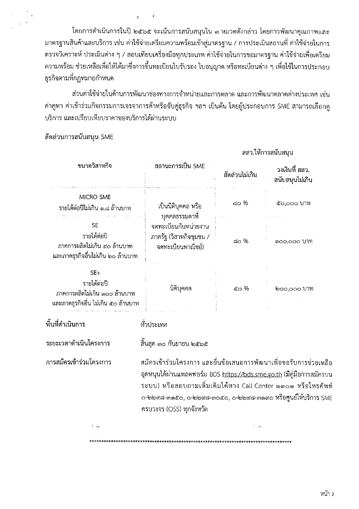 ข่าวประชาสัมพันธ์ มาตราการการให้ความช่วยเหลือ อุดหนุน วิสาหกิจ ขนาดกลางและขนาดย่อม "SME ปัง ตังได้คืน" ภายใต้โครงการส่งเสริมผู้ประกอบการผ่านระบบ BDS ปีงบประมาณ พ.ศ.2565