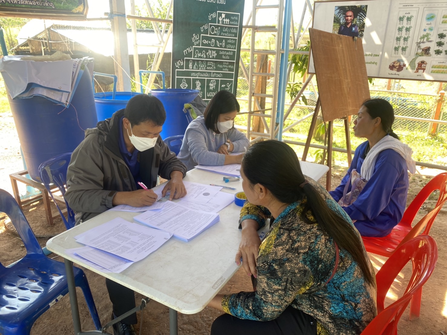 นางสาวทัศนีย์ สุนนท์ชัย หัวหน้ากลุ่มพัฒนาและส่งเสริมอาชีพการประมง รักษาราชการแทนประมงจังหวัดหนองบัวลำภู ลงพื้นที่ปฏิบัติงานร่วมกับ นางสาวมลฤดี ลิ้มสุวรรณ ประมงอำเภอศรีบุญเรือง พร้อมด้วยเจ้าหน้าที่กลุ่มพัฒนาและส่งเสริมอาชีพการประมง ซึ่งได้จัดประชุมชี้แจงแผนการดำเนินงาน การจัดทำแผนพัฒนารายแปลง การสำรวจสภาวะเศรษฐกิจและสังคมเกษตรกร (ก่อนเข้าร่วมโครงการ) ของกลุ่มแปลงใหญ่ปลาตะเพียนตำบลหนองแก อำเภอศรีบุญเรือง จังหวัดหนองบัวลำภู (แปลงใหม่ ปี 2566) ภายใต้โครงการระบบส่งเสริมเกษตรแบบแปลงใหญ่ ประจำปีงบประมาณ 2566 ณ ที่ทำการกลุ่มฯ (ศพก.เครือข่ายด้านประมง นายอนุวัฒน์ รัตนวงค์) ม.3 บ.ทุ่งกกทัน ต.หนองแก อ.ศรีบุญเรือง จ.หนองบัวลำภู