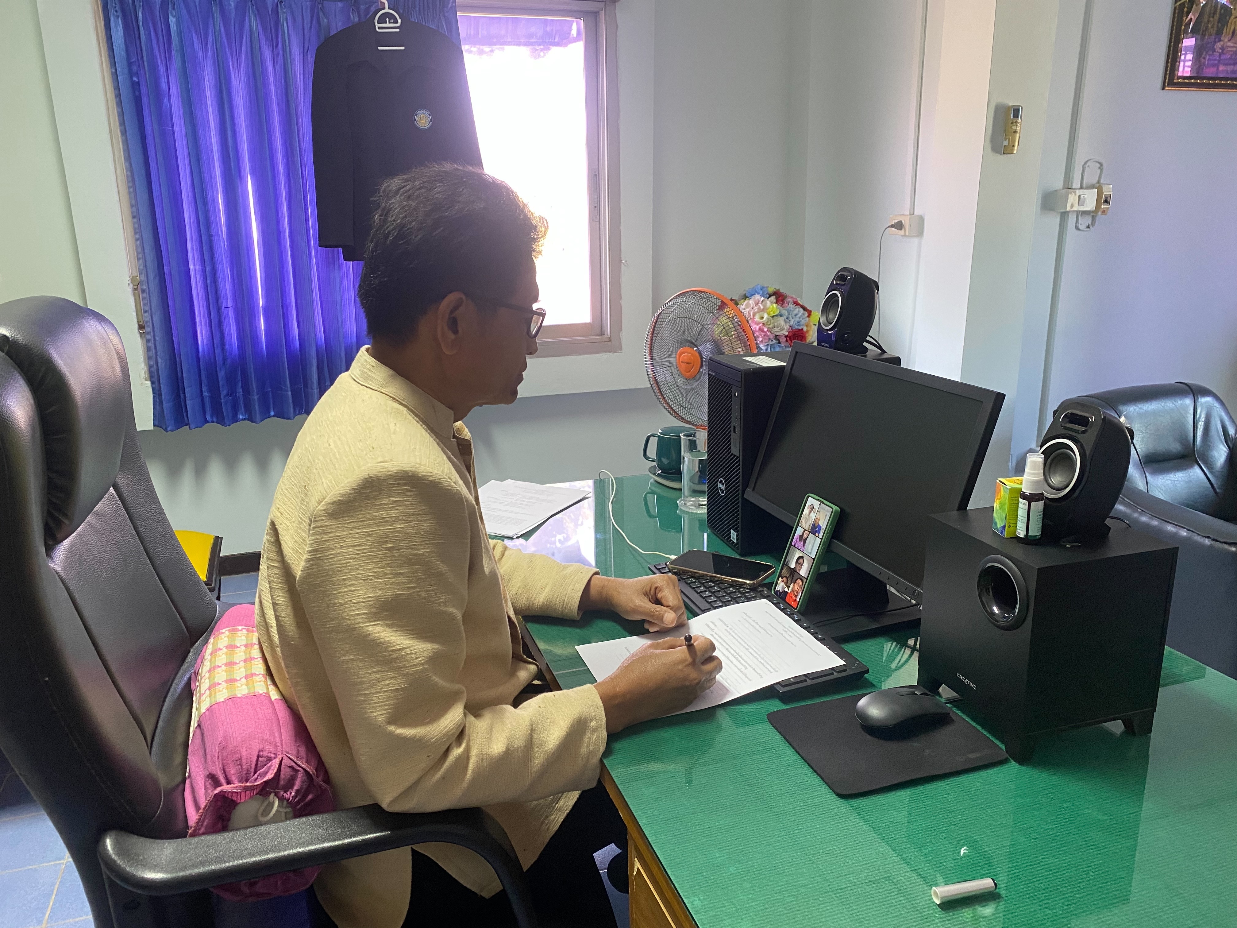 นายบุญหลาย กุลนารัตน์ ประมงจังหวัดหนองบัวลำภู พร้อมด้วยนางสาวทัศนีย์ สุนนท์ชัย หัวหน้ากลุ่มพัฒนาและส่งเสริมอาชีพการประมง นายสมจิตร์ พงษ์ภุมมา หัวหน้ากลุ่มบริหารจัดการด้านประมง และนางสาวดาพร หนันทะ เจ้าพนักงานประมงชำนาญงาน ร่วมประชุมคณะกรรมการขับเคลื่อนนโยบายกรมประมงจังหวัดหนองบัวลำภู (Fisheries Co-ordinator: FC) ครั้งที่ 1/2566 ผ่านระบบประชุมออนไลน์ Massenger Rooms FC_หนองบัวลำภู เพื่อให้หน่วยงานต้นสังกัดกรมประมงที่ร่วมบูรณาการการทำงานในพื้นที่จังหวัดหนองบัวลำภู วางแผนปฏิบัติงานตามแผนงานโครงการตามนดญบายของกรมประมง
