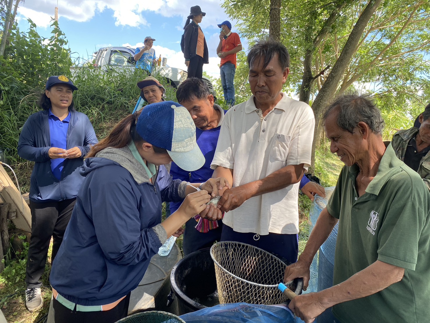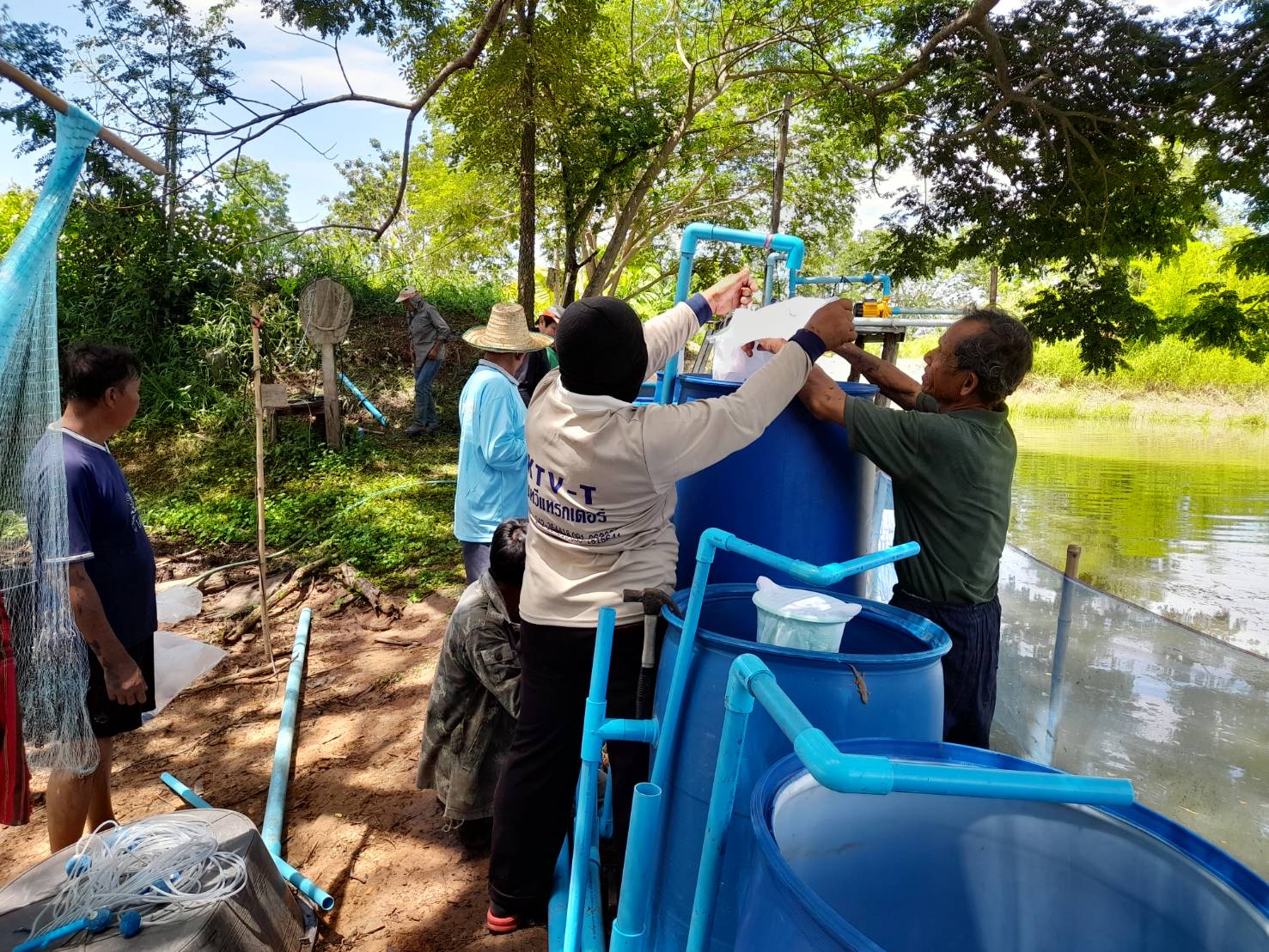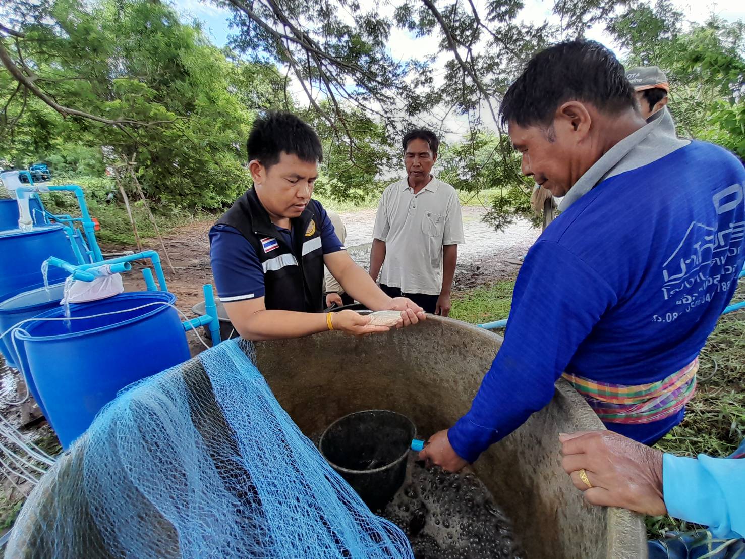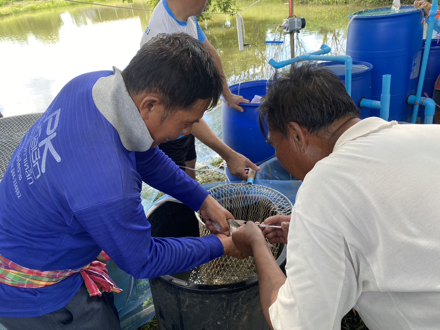 นางสาวมลฤดี  ลิ้มสุวรรณ ประมงอำเภอศรีบุญเรือง และ นายไพศาล ศรีคูณ นักวิชาการประมง สำนักงานประมงจังหวัดหนองบัวลำภู ร่วมกับสมาชิกกลุ่มเพาะพันธุ์ปลาบ้านหนองม่วงชมพูทอง (ปี 2565) สมาชิกกลุ่มเพาะพันธุ์ปลาแปลงใหญ่พืชผักหนองม่วงชมพูทอง (ปี2566) ดำเนินการเพาะพันธุ์ปลาสร้อยขาวด้วยชุดเพาะพันธุ์ปลาเคลื่อนที่ ณ ที่ทำการกลุ่มเพาะพันธุ์ปลาบ้านหนองม่วงชมพูทอง หมู่ที่ 4 ตำบลเมืองใหม่ อำเภอศรีบุญเรือง จังหวัดหนองบัวลำภู