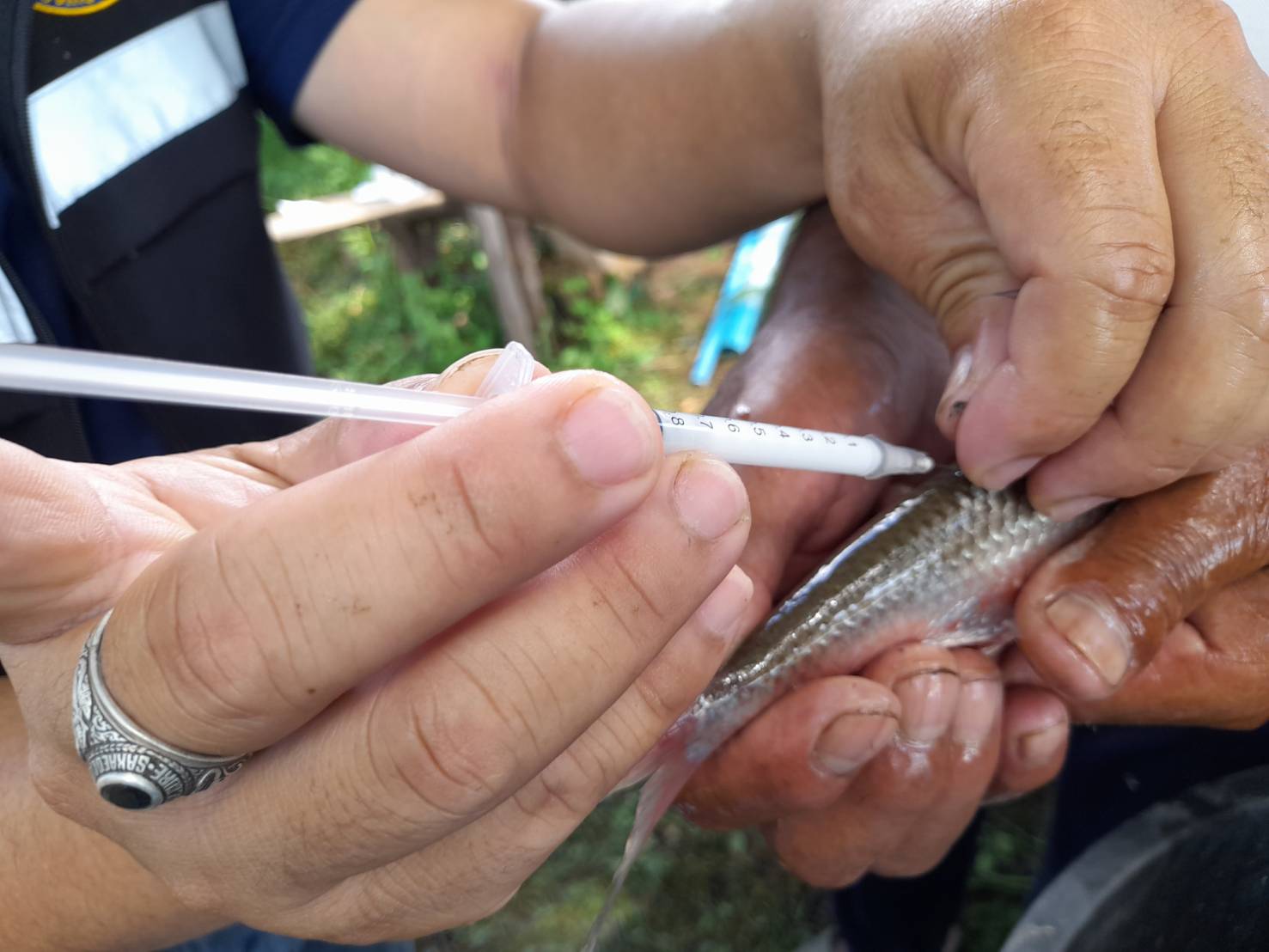 วันที่ 22 มิถุนายน พ.ศ.2566  นางสาวมลฤดี  ลิ้มสุวรรณ ประมงอำเภอศรีบุญเรือง และ นายไพศาล ศรีคูณ นักวิชาการประมง สำนักงานประมงจังหวัดหนองบัวลำภู ร่วมกับสมาชิกกลุ่มเพาะพันธุ์ปลาบ้านหนองม่วงชมพูทอง (ปี 2565) สมาชิกกลุ่มเพาะพันธุ์ปลาแปลงใหญ่พืชผักหนองม่วงชมพูทอง (ปี2566) ดำเนินการเพาะพันธุ์ปลาสร้อยขาวด้วยชุดเพาะพันธุ์ปลาเคลื่อนที่