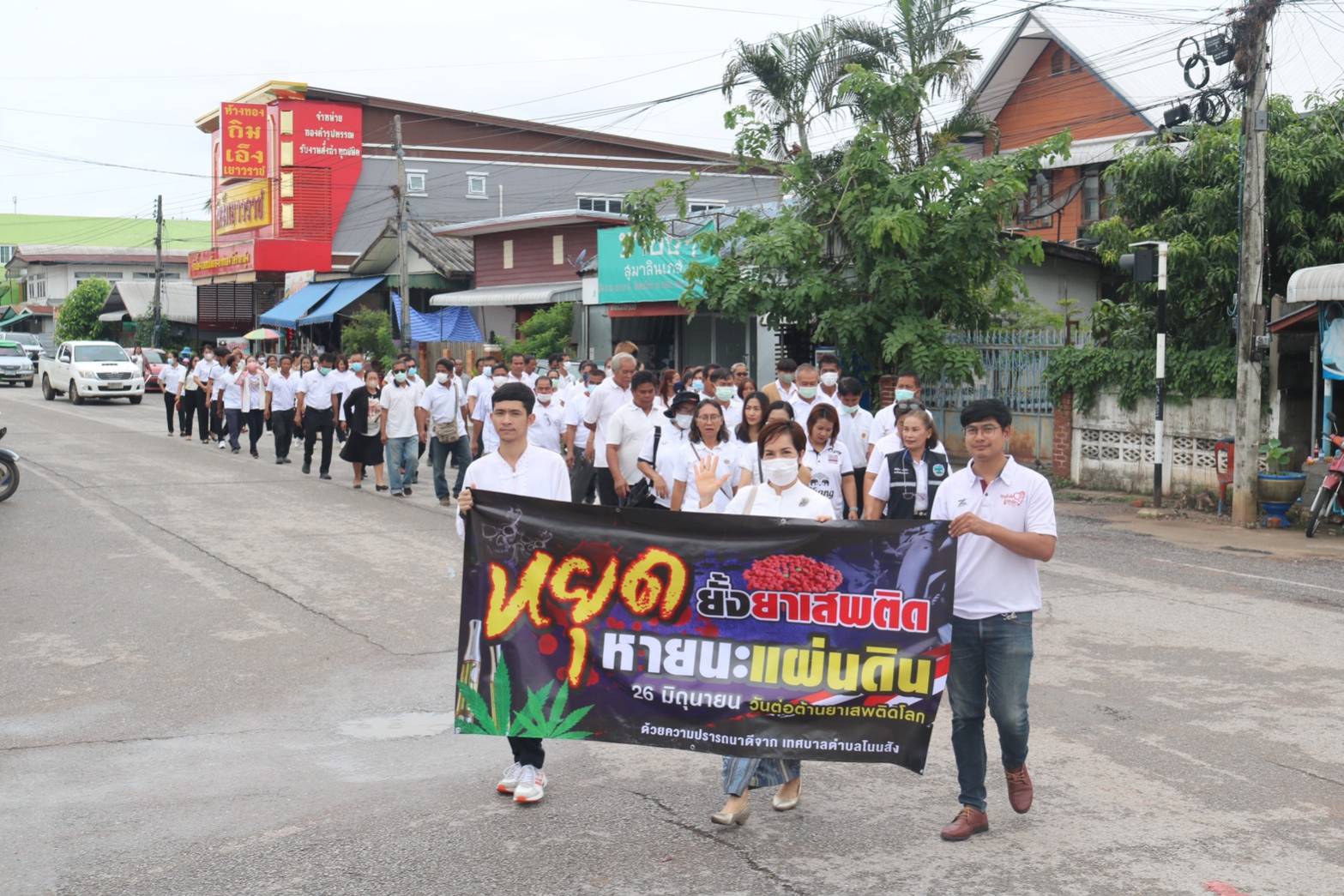 นายวิทยา ประเสริฐสังข์ ประมงอำเภอโนนสังร่วมกิจกรรมเนื่องในวันต่อต้านยาเสพติดโลกโดยมีกิจกรรมทำบายศรีสู่ขวัญผู้ติดยาเสพติดที่ผ่านการบำบัดฟื้นฟูแล้วและร่วมเดินรณรงค์ต่อต้านยาเสพติดรอบเขตเทศบาลตำบลโนนสัง