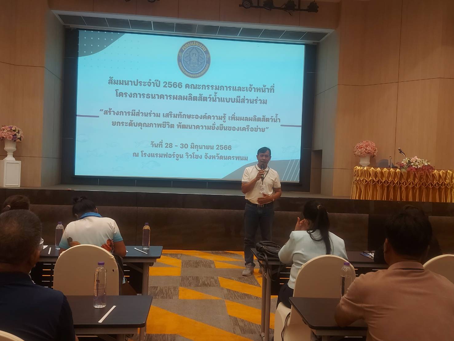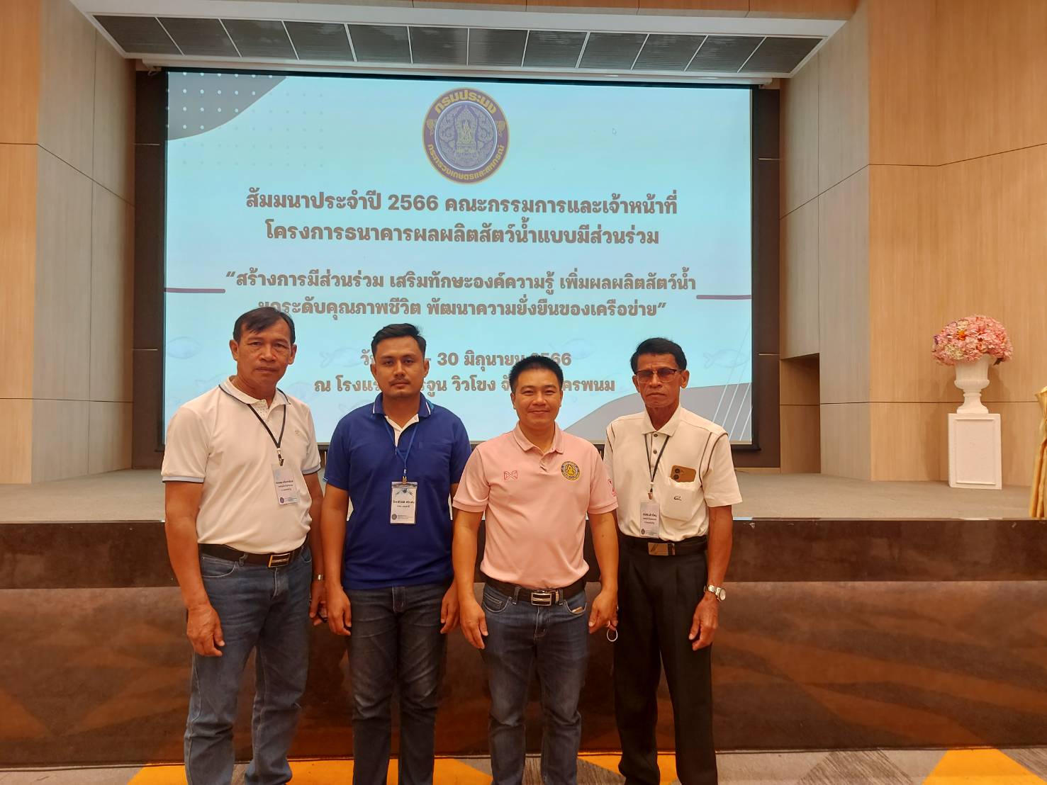 นายสมภาร วังคีรี ประมงอำเภอเมืองหนองบัวลำภู ร่วมประชุมสัมมนา ประจำปี 2566 คณะกรรมการธนาคารผลผลิตสัตว์น้ำแบบมีส่วนร่วม และเจ้าหน้าที่โครงการฯ เพื่อต่อยอดและขยายผลการพัฒนาแหล่งน้ำให้เป็นธนาคารสัตว์น้ำของชุมชนได้อย่างมีประสิทธิภาพและเกิดความยั่งยืน ภายใต้แนวคิด “สร้างการมีส่วนร่วม เสริมทักษะองค์ความรู้ เพิ่มผลผลิตสัตว์น้ำ ยกระดับคุณภาพชีวิต พัฒนาความยั่งยืนของเครือข่าย” ซึ่งจัดขึ้นระหว่างวันที่ 27 – 30 มิถุนายน 2566 ณ โรงแรมฟอร์จูน วิวโขง นครพนม อำเภอเมือง จังหวัดนครพนม โดยมีนายเฉลิมชัย สุวรรณรักษ์ อธิบดีกรมประมง เป็นประธานเปิดการประชุมสัมมนา