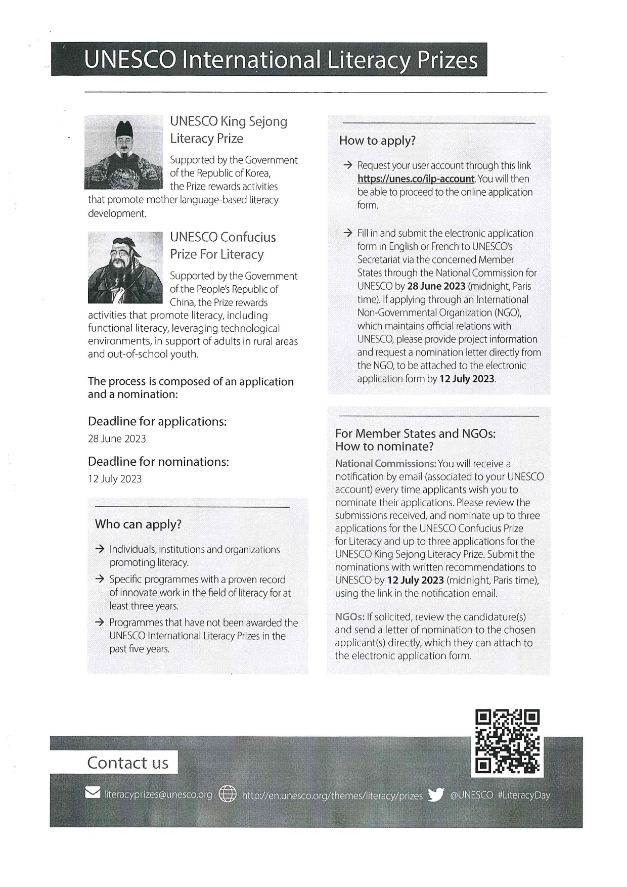 เรื่อง รางวัล UNESCO International Literacy Prizes ประจำปี 2566