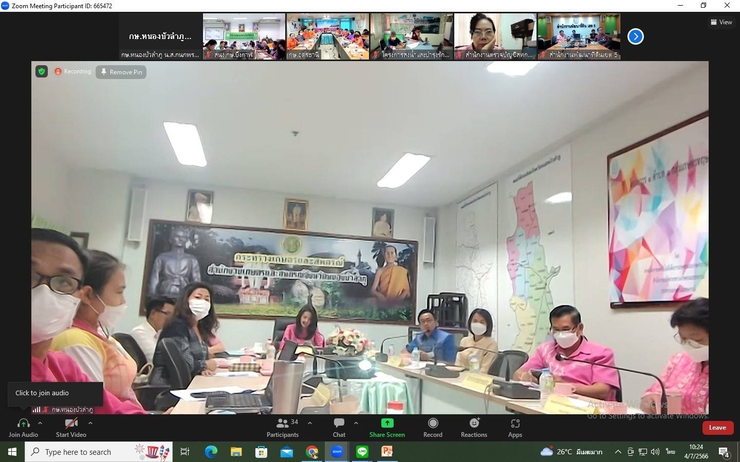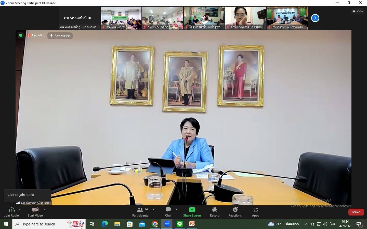 นายบุญหลาย กุลนารัตน์ ประมงจังหวัดหนองบัวลำภู มอบหมายให้นางสาวทัศนีย์  สุนนท์ชัย เข้าร่วมการประชุมการตรวจราชการของผู้ตรวจราชการกระทรวงเกษตรและสหกรณ์ (นางสาวภัทราภรณ์  โสเจยยะ) ประจำปีงบประมาณ พ.ศ. ๒๕๖๖ เขตตรวจราชการที่ ๑๐ (จังหวัดบึงกาฬ เลย หนองคาย หนองบัวลำภู และอุดรธานี) ณ สำนักงานเกษตรและสหกรณ์จังหวัดหนองบัวลำภู ผ่านระบบ VDO Conference โปรแกรม ZOOM Meeting